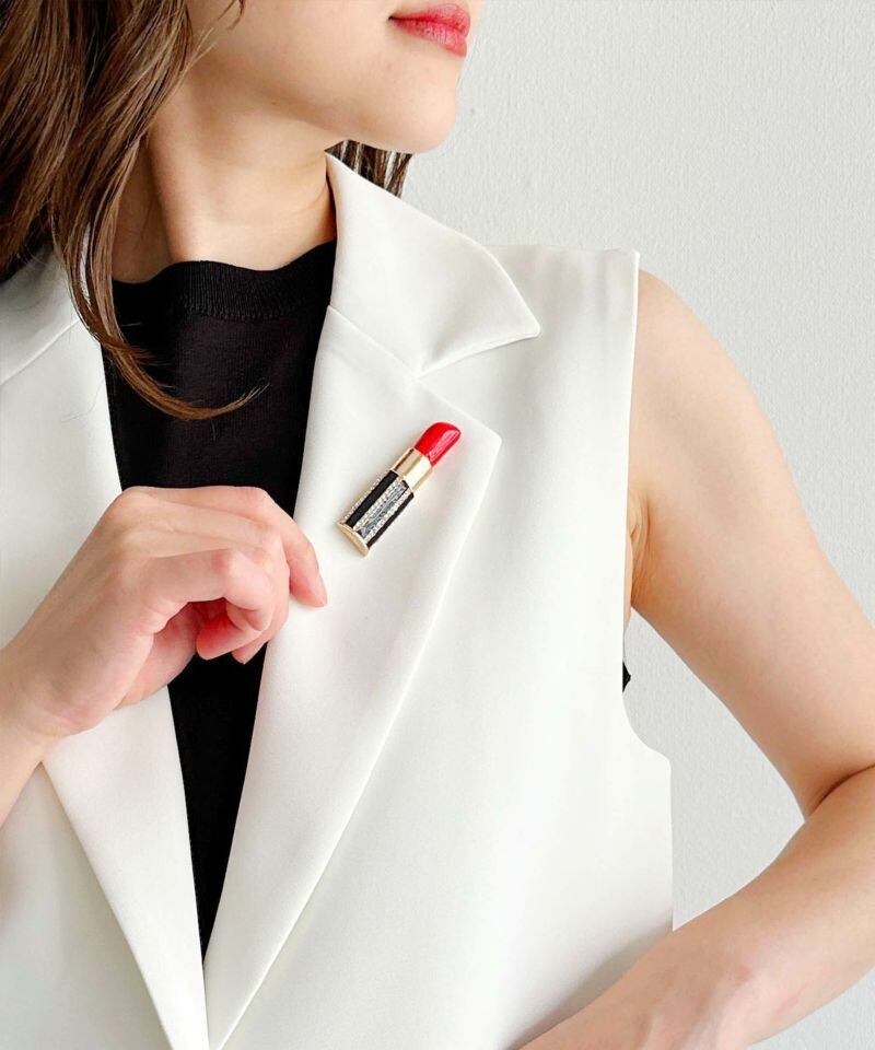 さりげなく装いに華やかさをプラス出来るブローチ単品使いでも、複数個付けるのもおすすめです。トップスの襟元やジャケットのラペル、バッグや帽子・スカーフなどの小物にも。