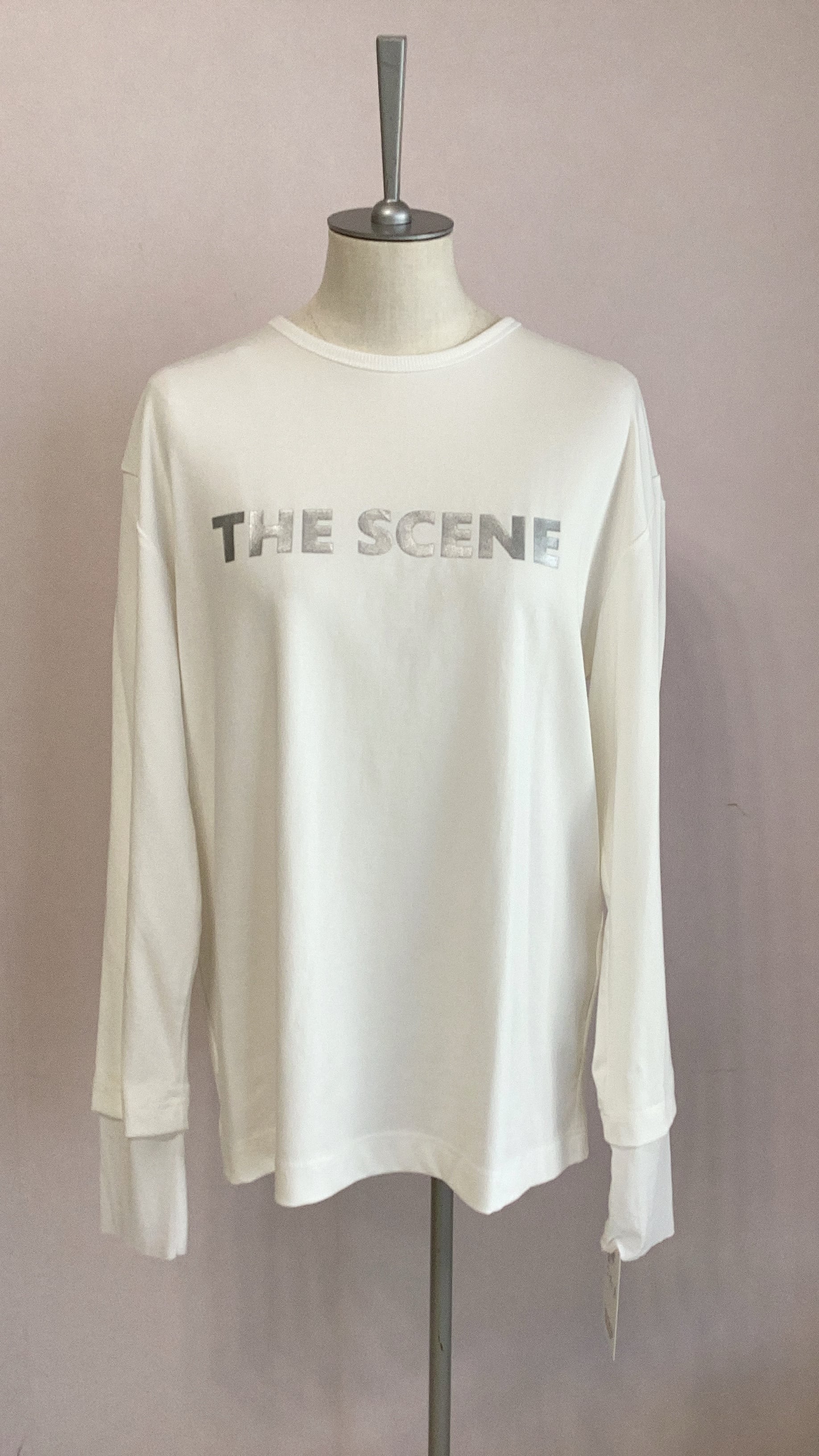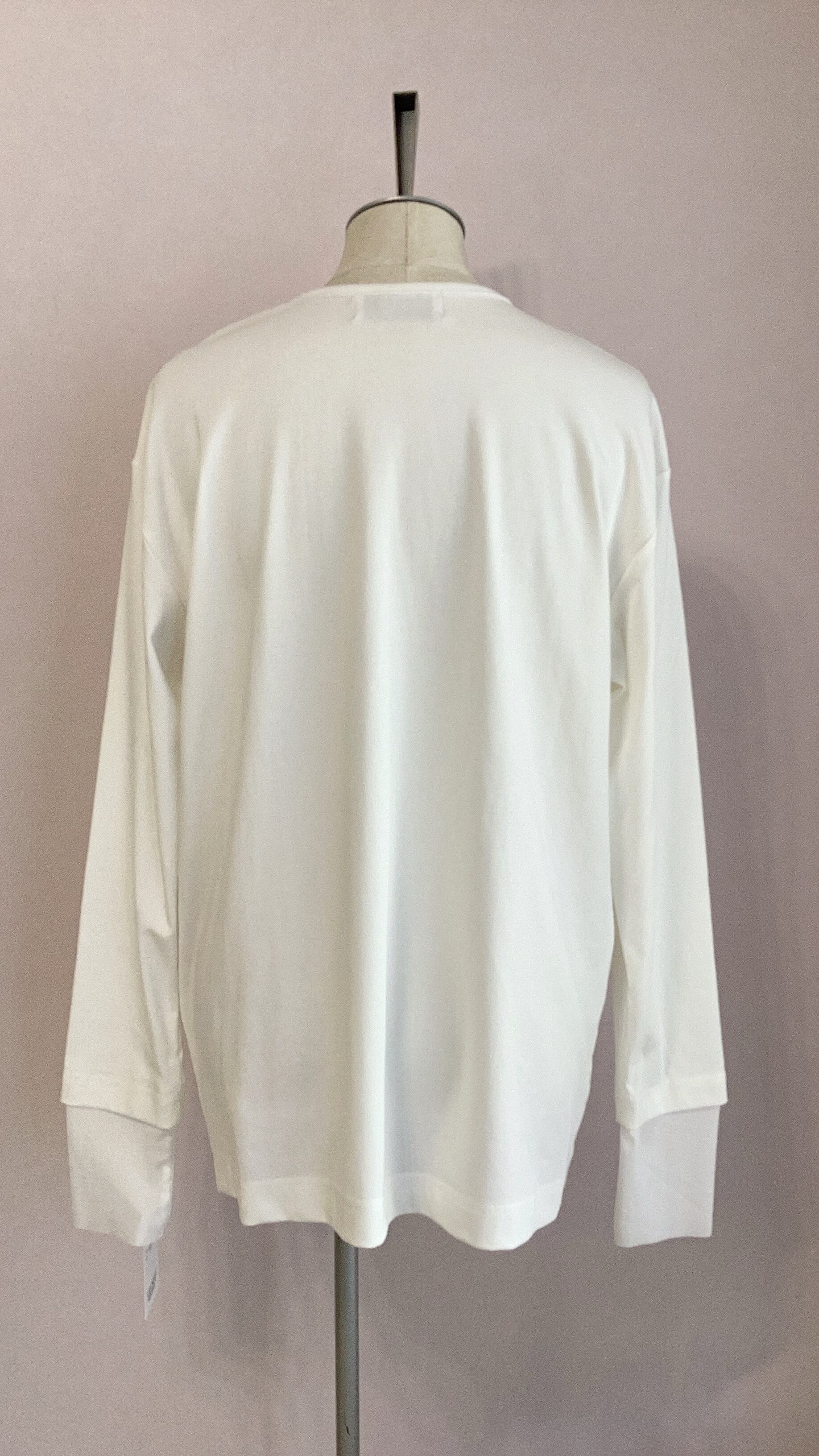 袖にシアーの入った薄手の長袖Tシャツ。ホワイトの生地にロゴが3カラーになります。
