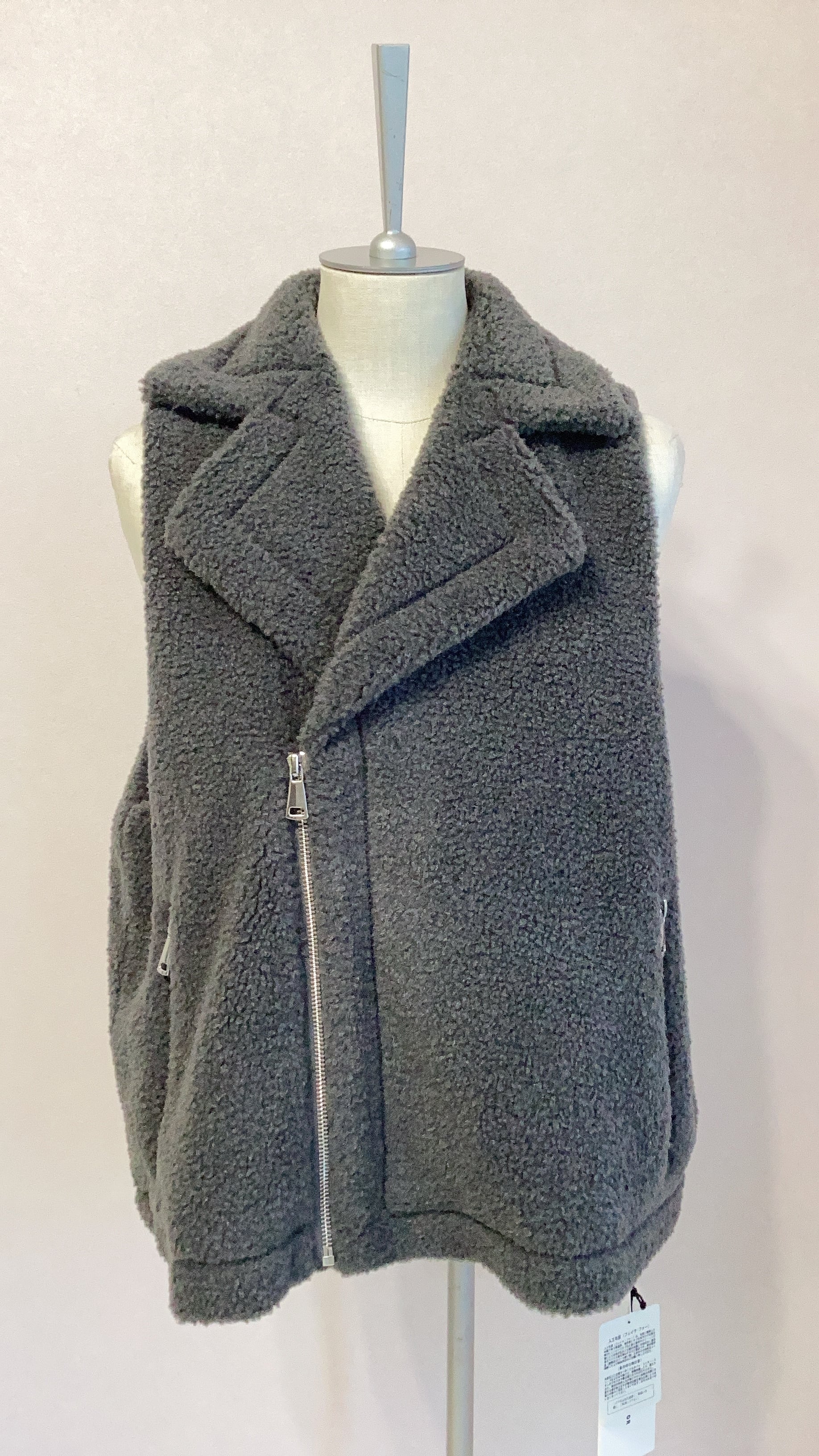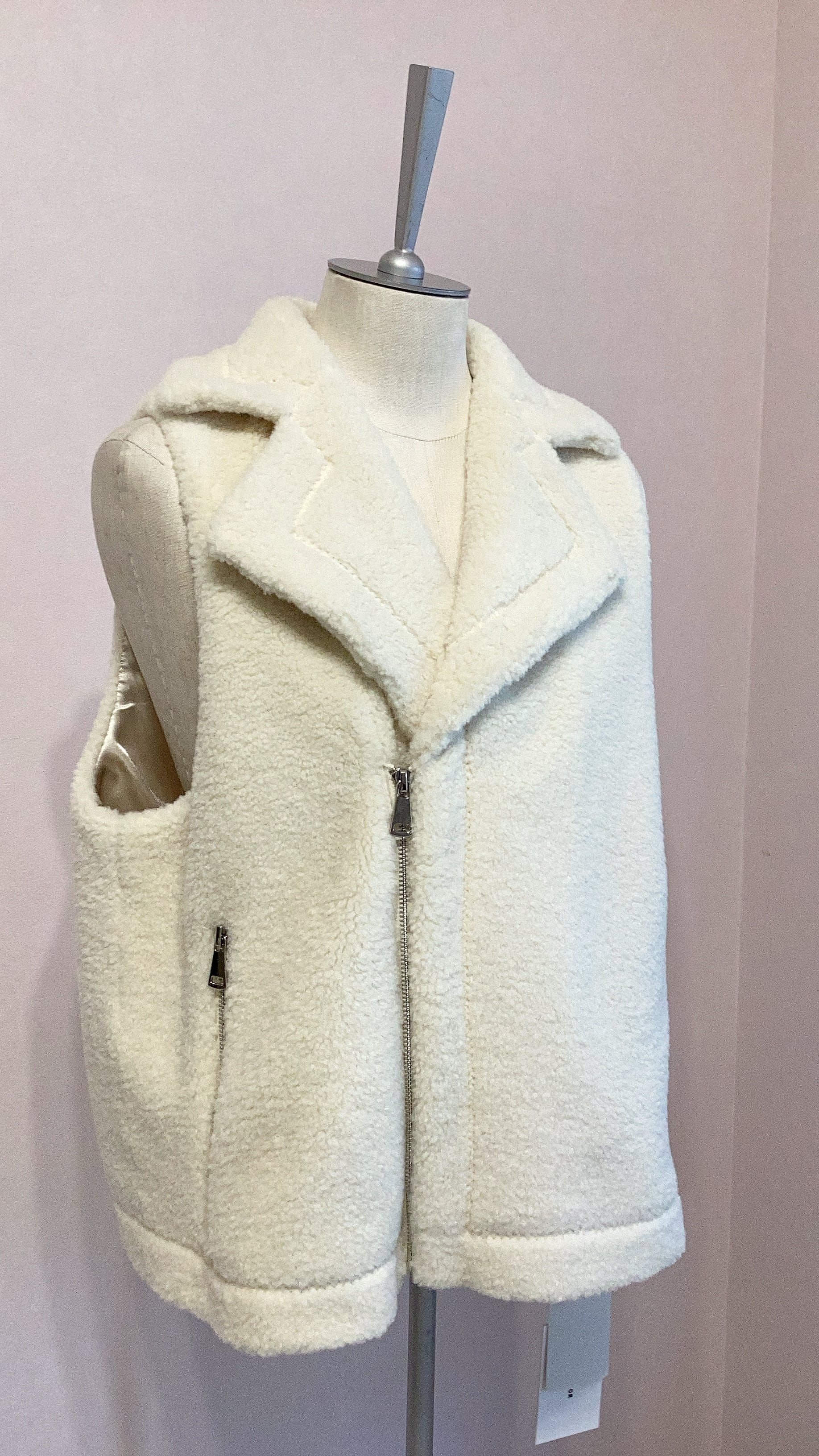 柔らかく軽いボア素材を使用した大人気ボアベスト。ボアの可愛らしさの中にライダースのクールさをプラスした大人カジュアルなデザインが魅力。アームホールが広めでインナーを選びません。