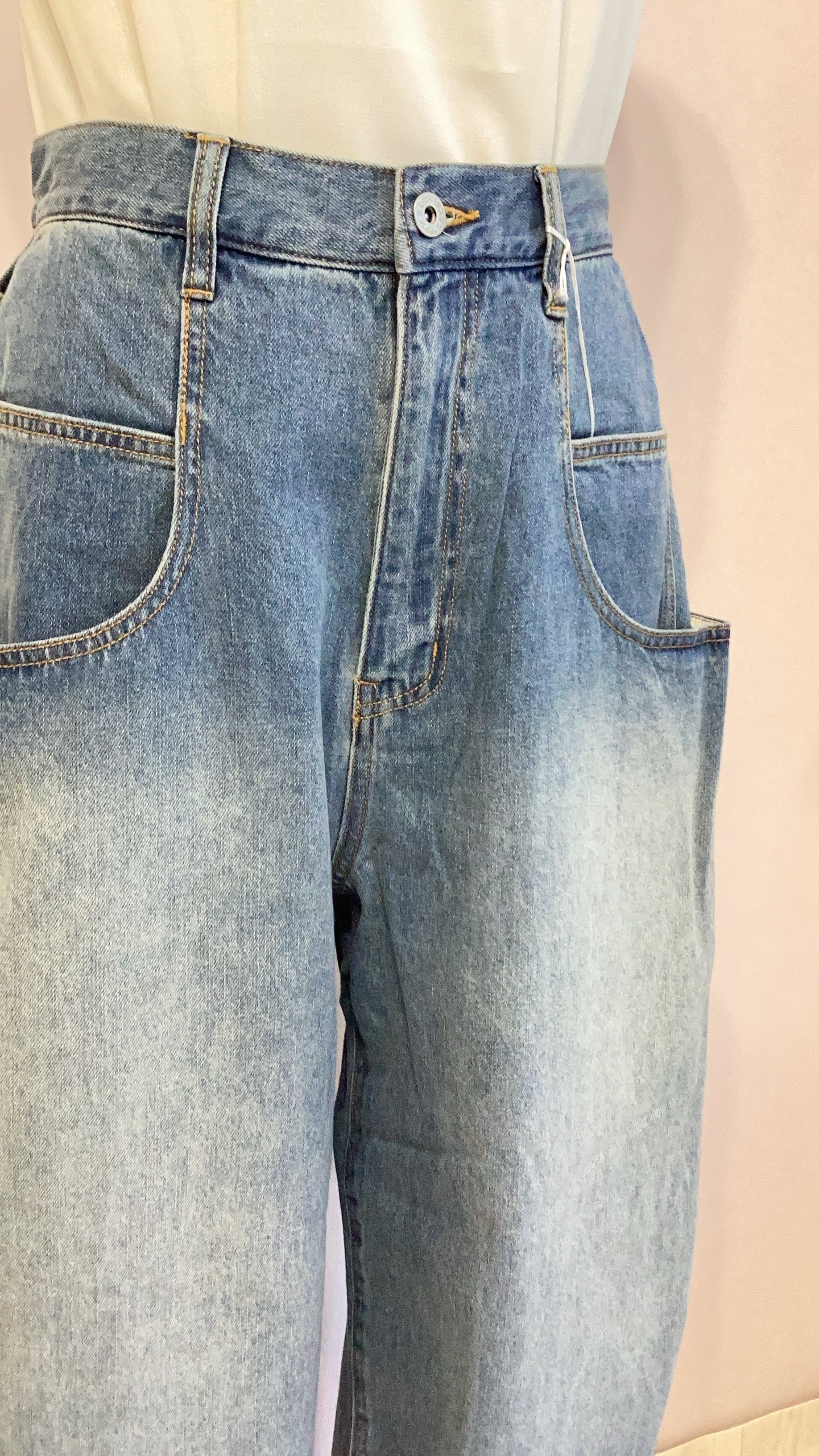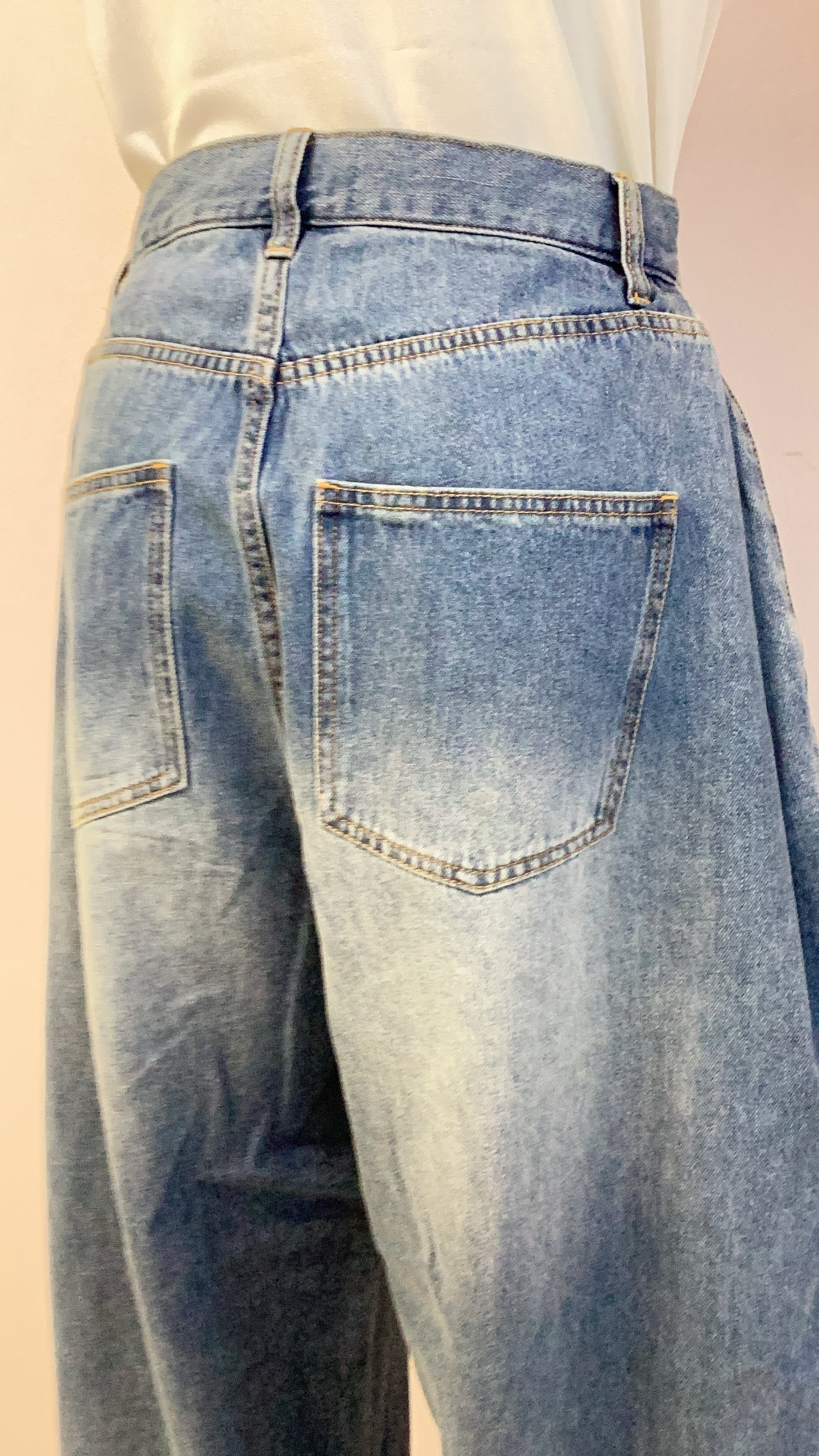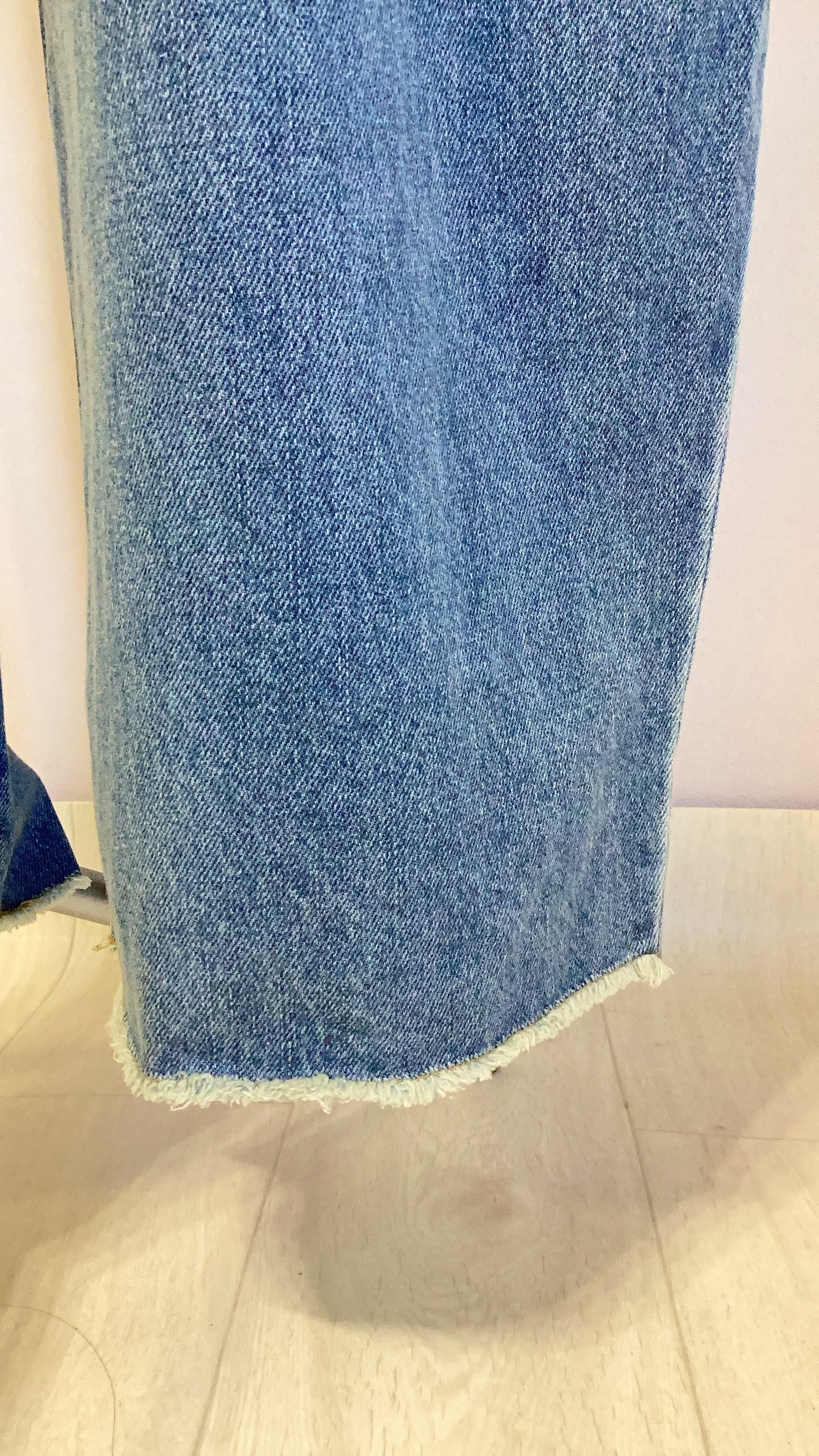 しっかり厚みのあるデニムのサイドタックワイドパンツ。ウォッシュ加工で裾のフリンジもポイント。ゆったりシルエットです。ジャケットとセットアップ可能。