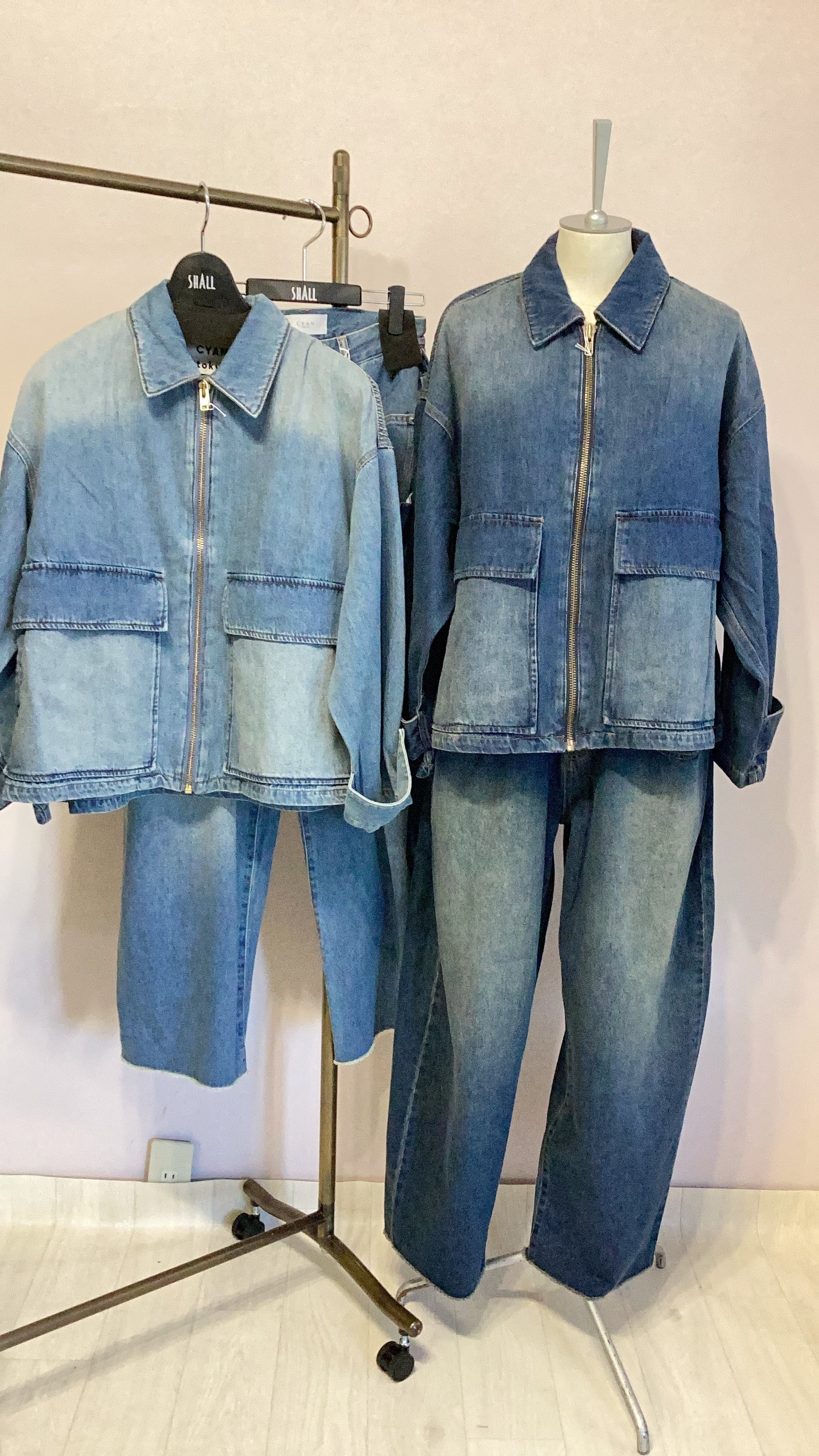 CYAN TOKYO ドレープPKサイドタックワイドデニムパンツ No.504359 ネイビー ブルー 36サイズ 38サイズ シアン セットアップ可能商品