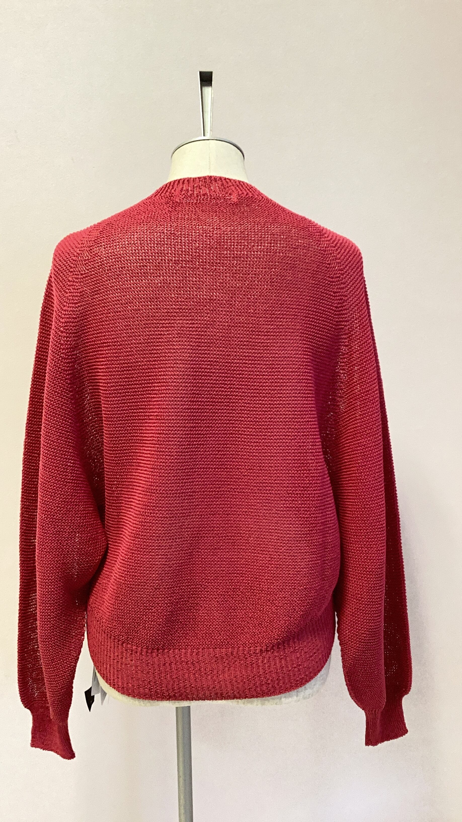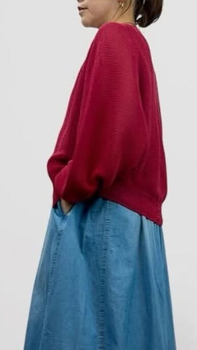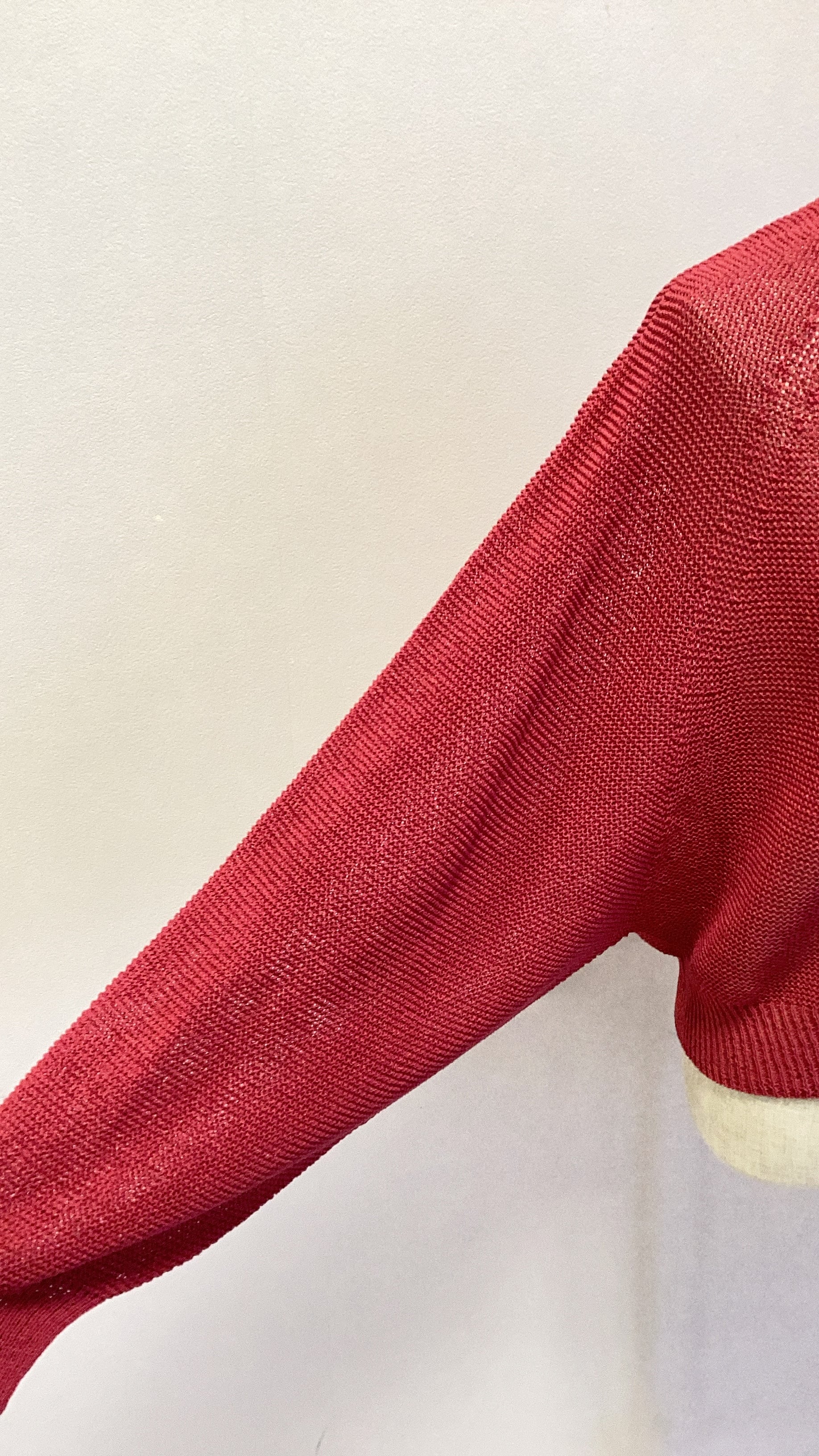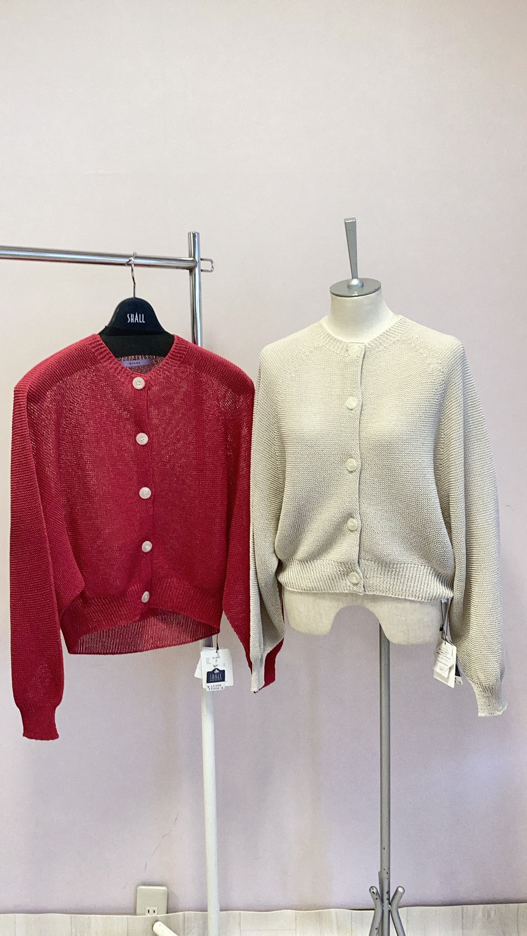 2025秋冬 QTUME SHION 和紙混ドライタッチ ホールガーメントカーディガン No.552-25518 アイボリー レッド クチューム 9号 Yamagata Knit 山形ニット
