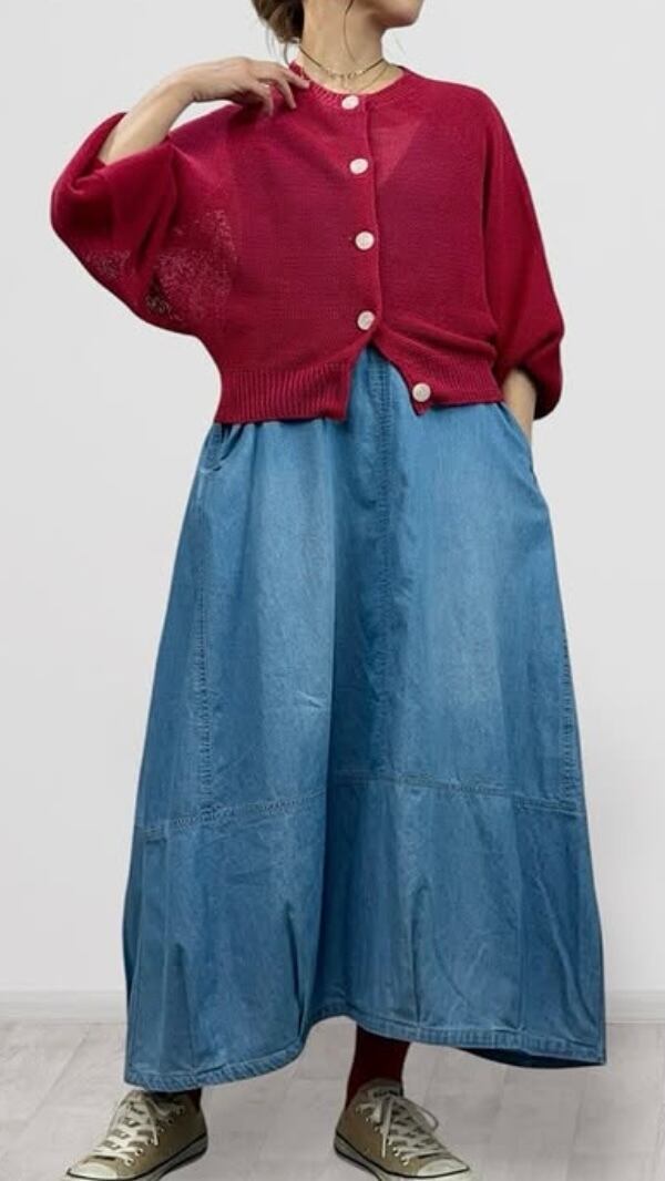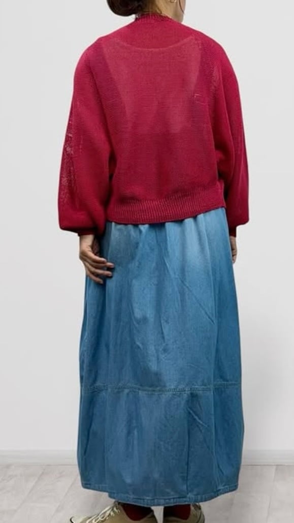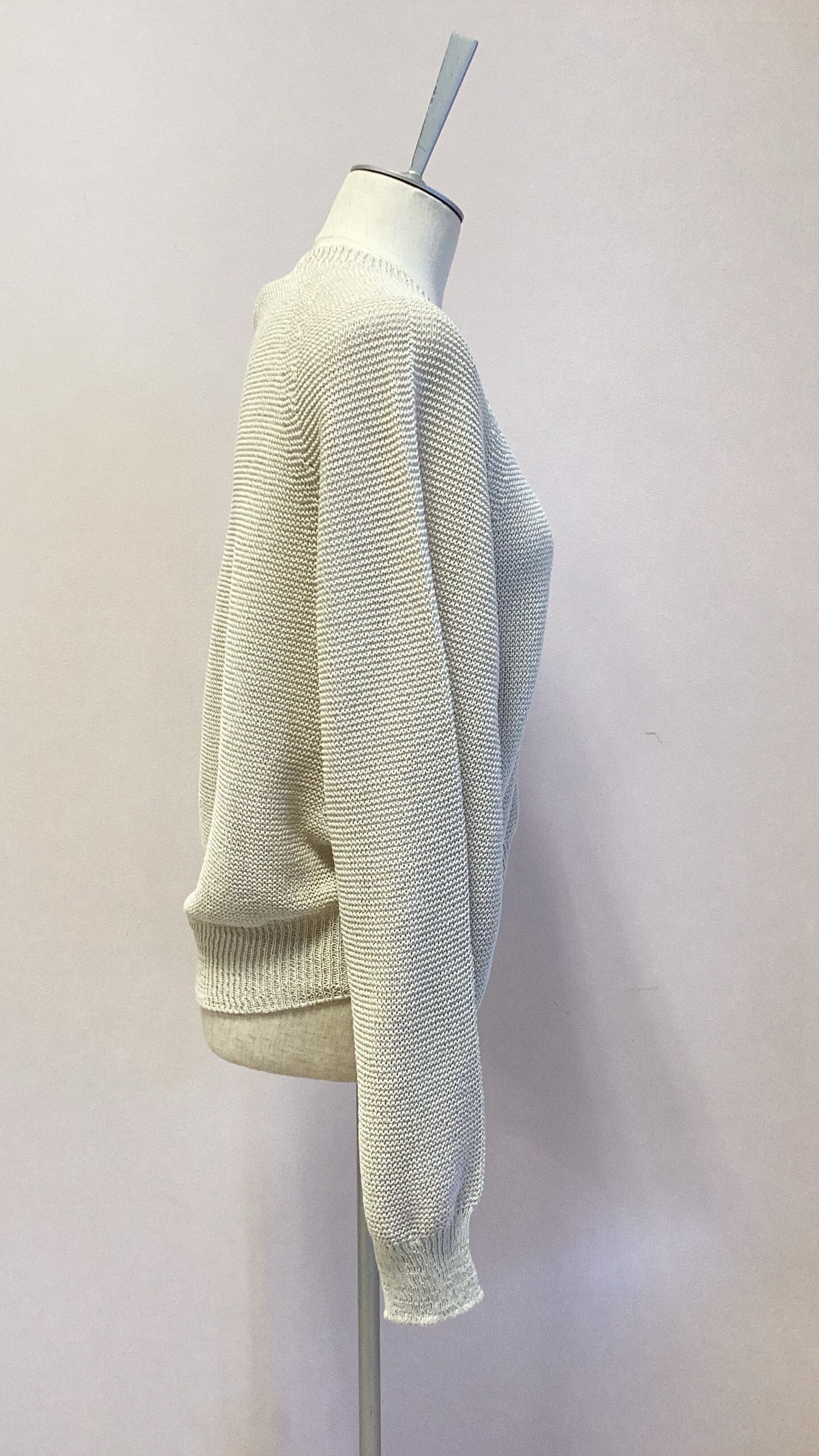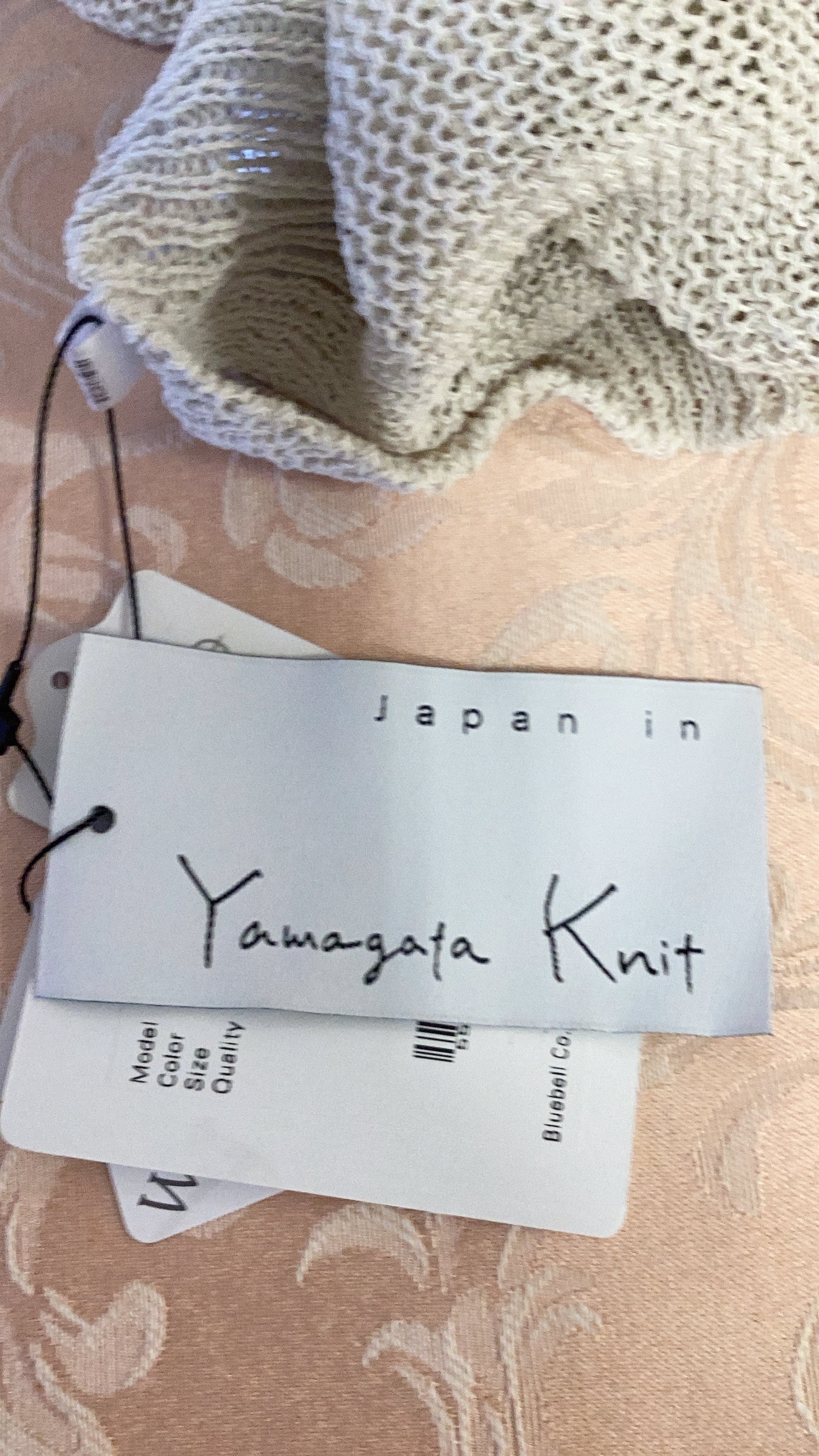 2025秋冬 QTUME SHION 和紙混ドライタッチ ホールガーメントカーディガン No.552-25518 アイボリー レッド クチューム 9号 Yamagata Knit 山形ニット