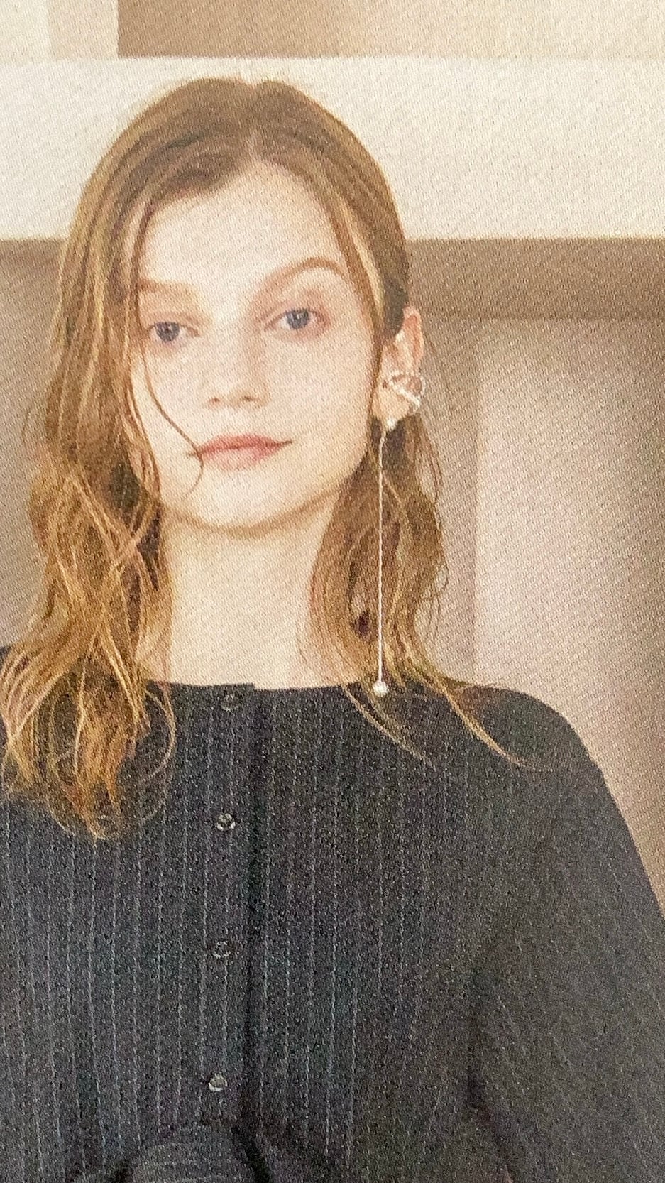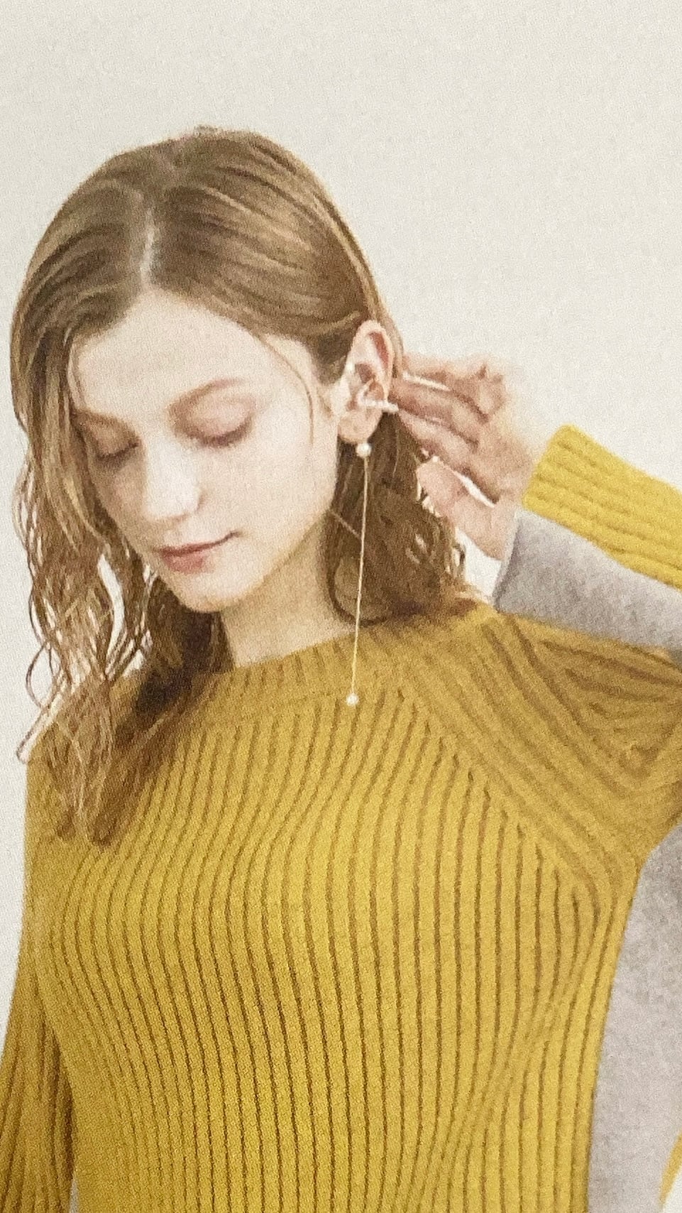 大きめのパールと長いチェーンが目を引くイヤーフックです。ピアスホールガなくても楽しめます。