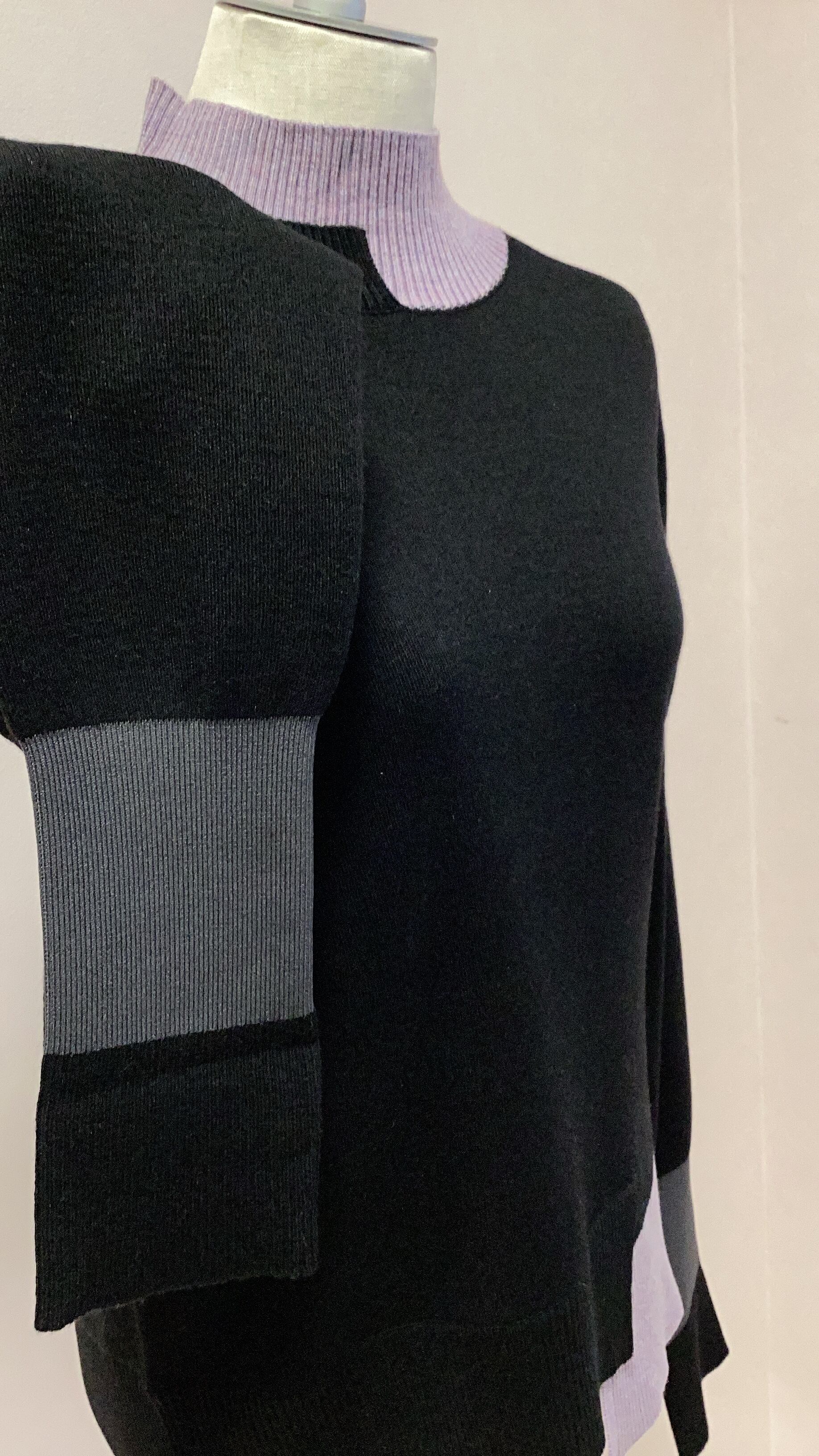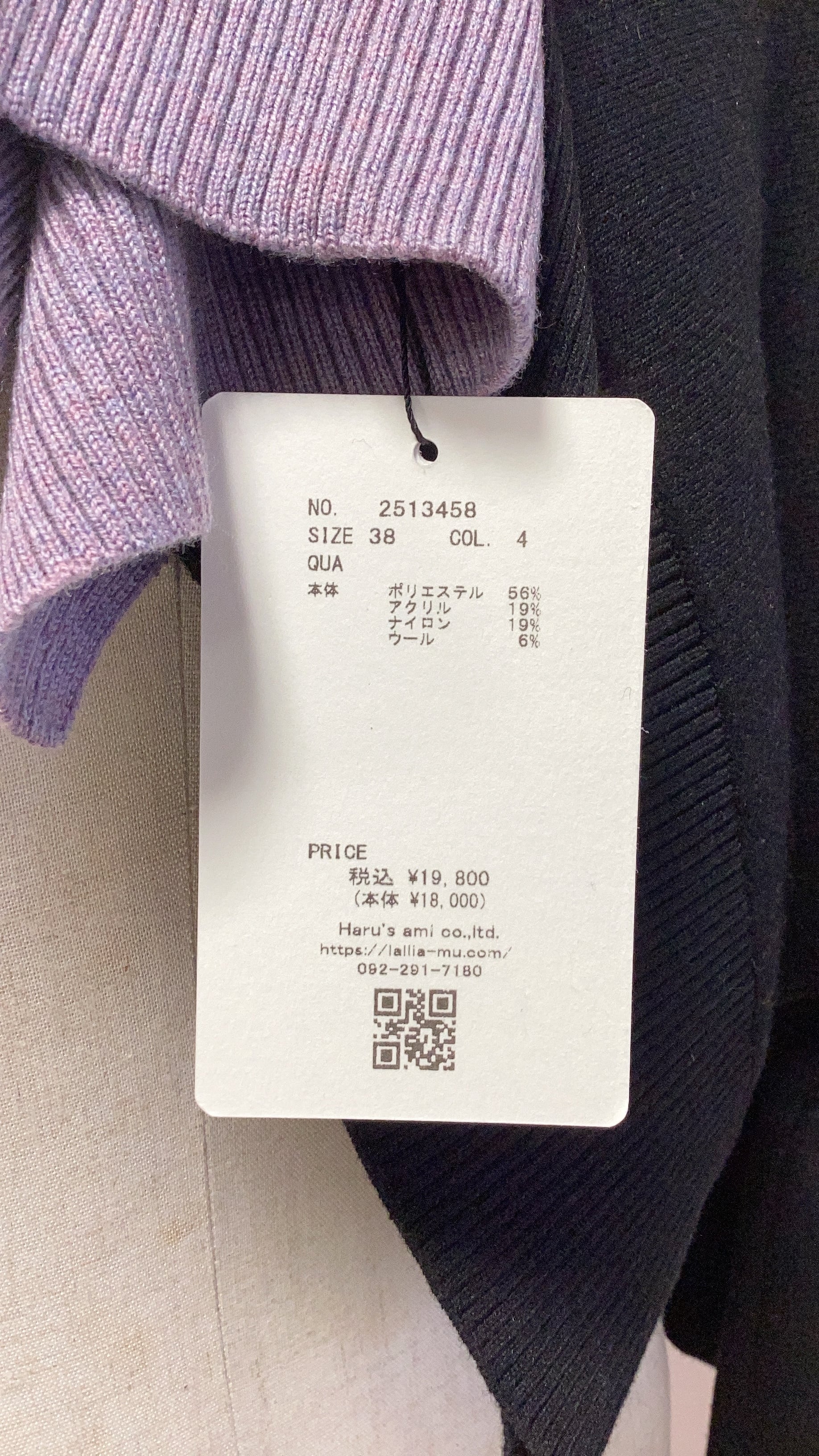 2025秋冬 Lallia Mu トリコロールハイネックニット No.2513458 ブルー ブラック ライトグレー フリーサイズ ラリアムー