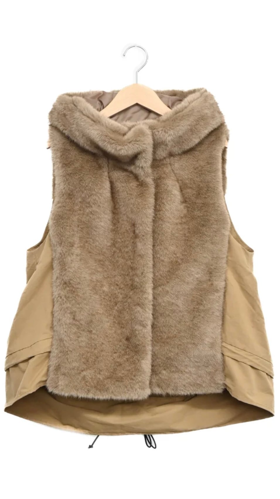 2025秋冬 trois エコファー フーテッドジレ T256-83045 フリーサイズ 9号 トロワ ベージュ ライトベージュ