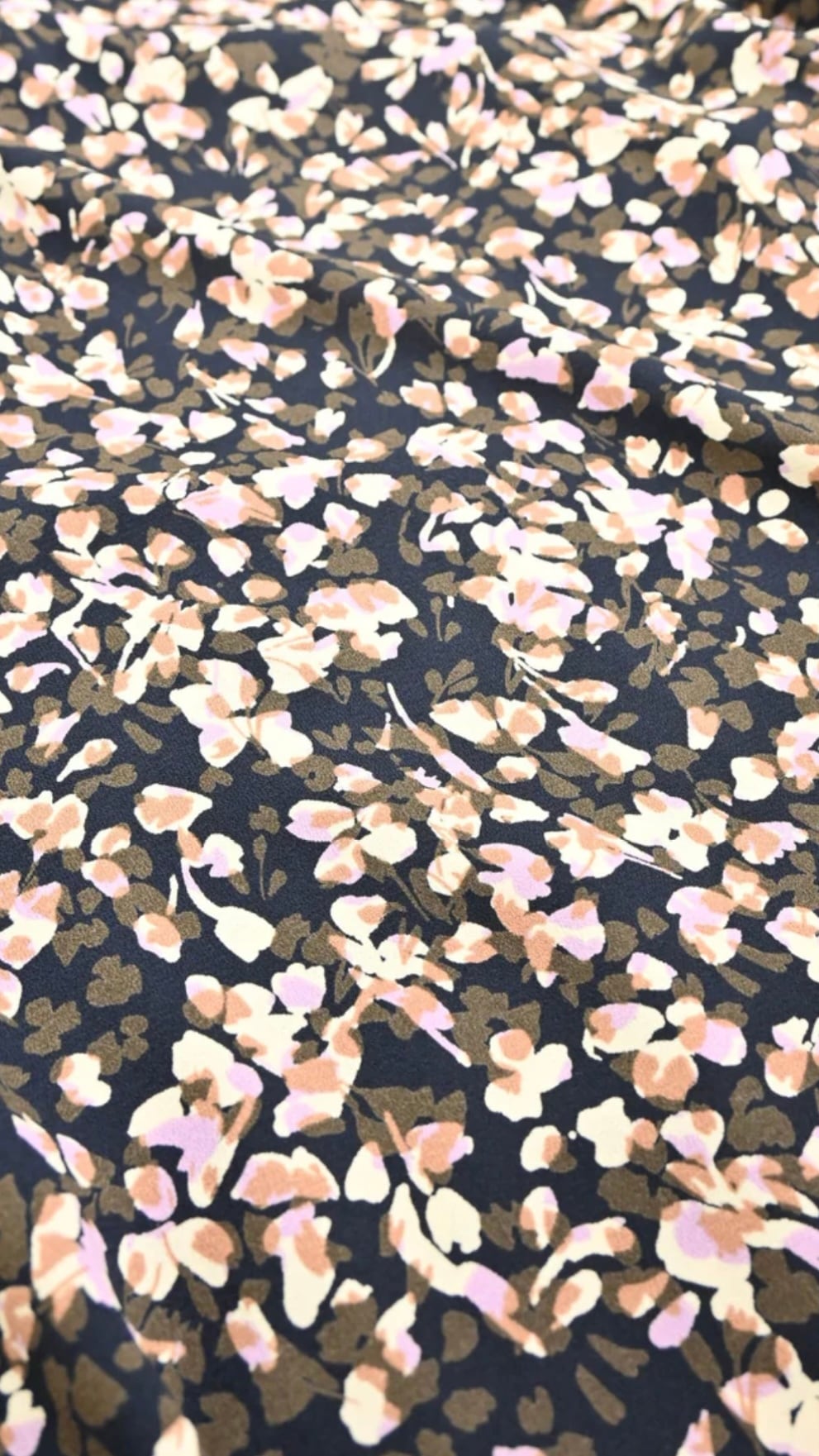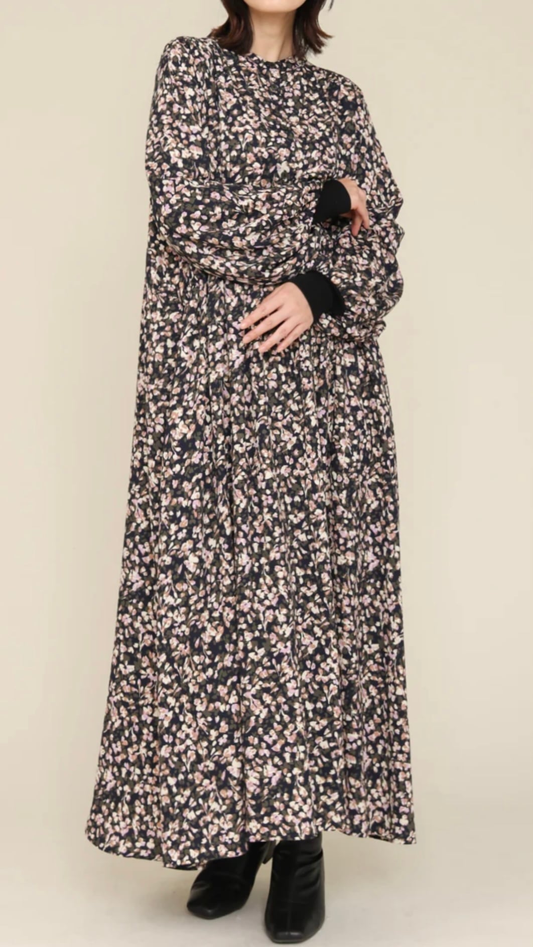 2025秋冬 trois 花柄ギャザーワンピース T256-83042 ブラックフラワー フリーサイズ 9号 トロワ