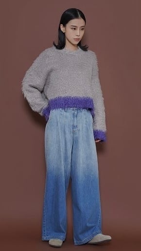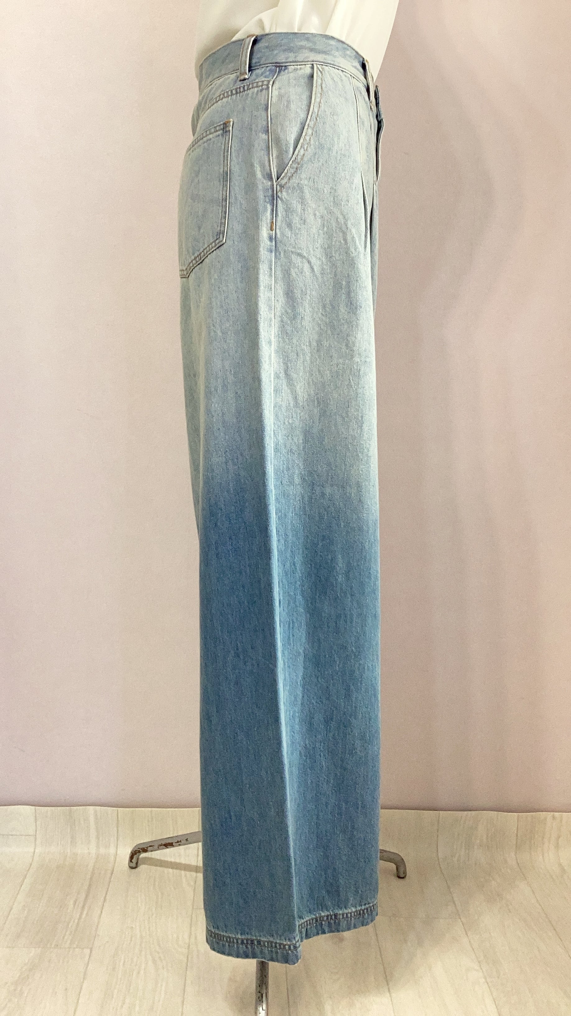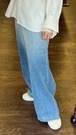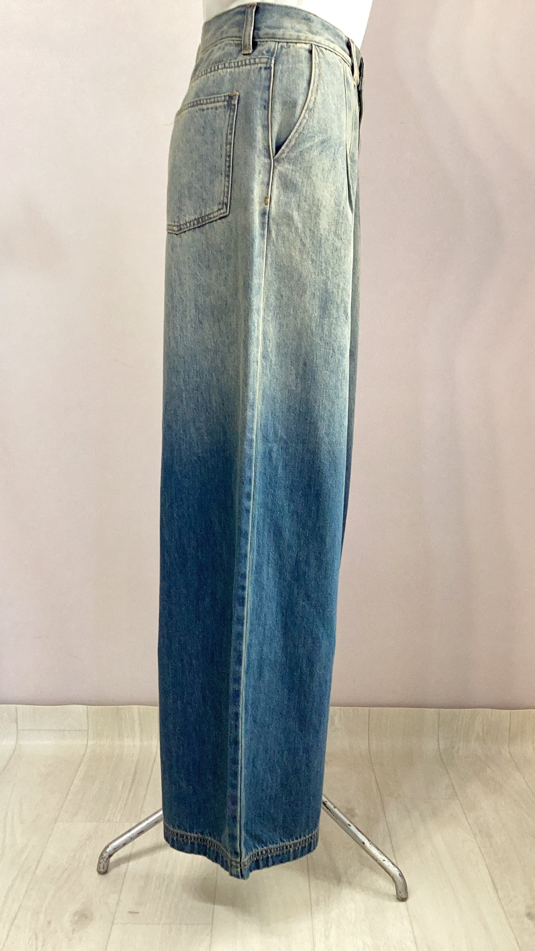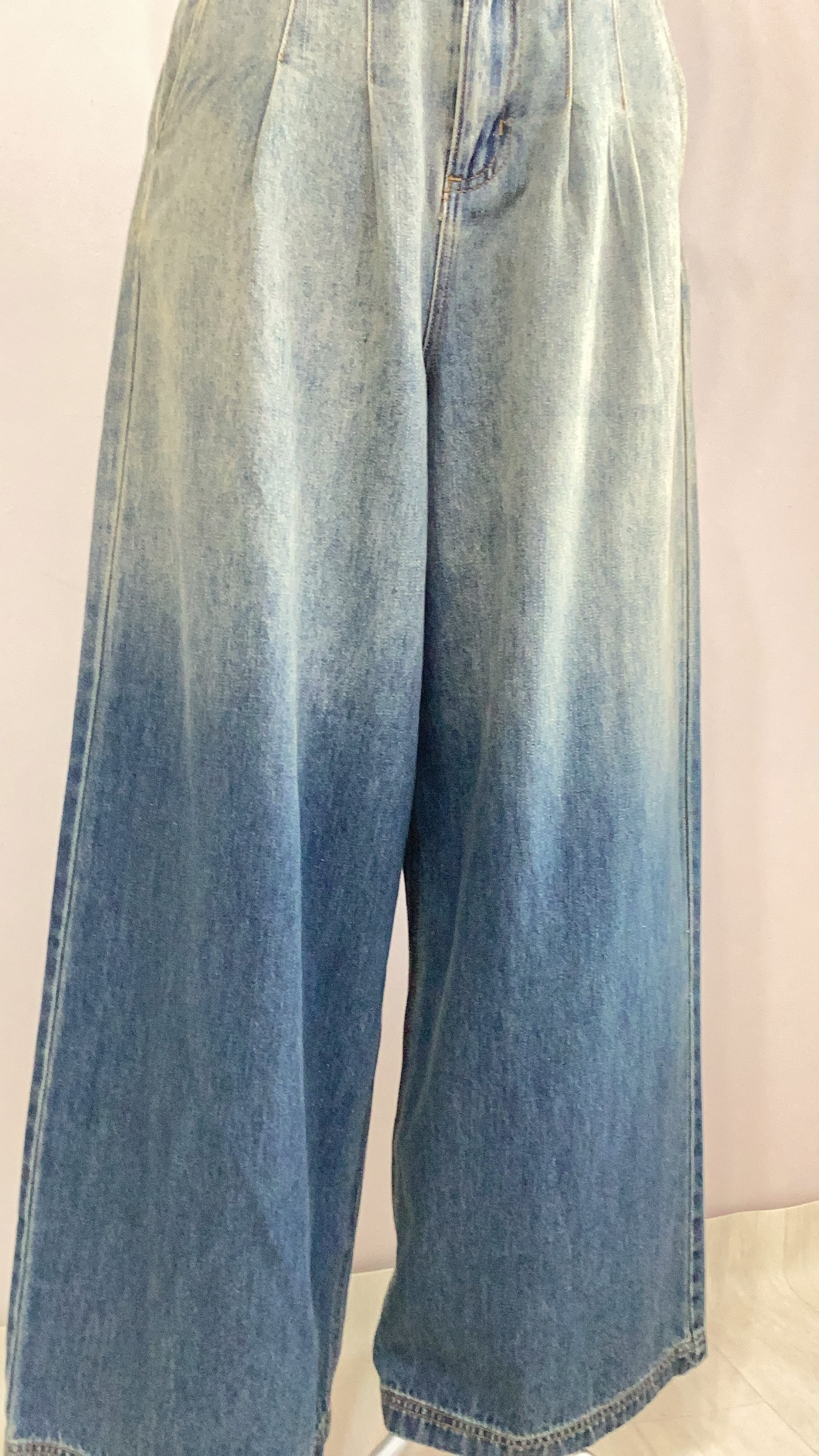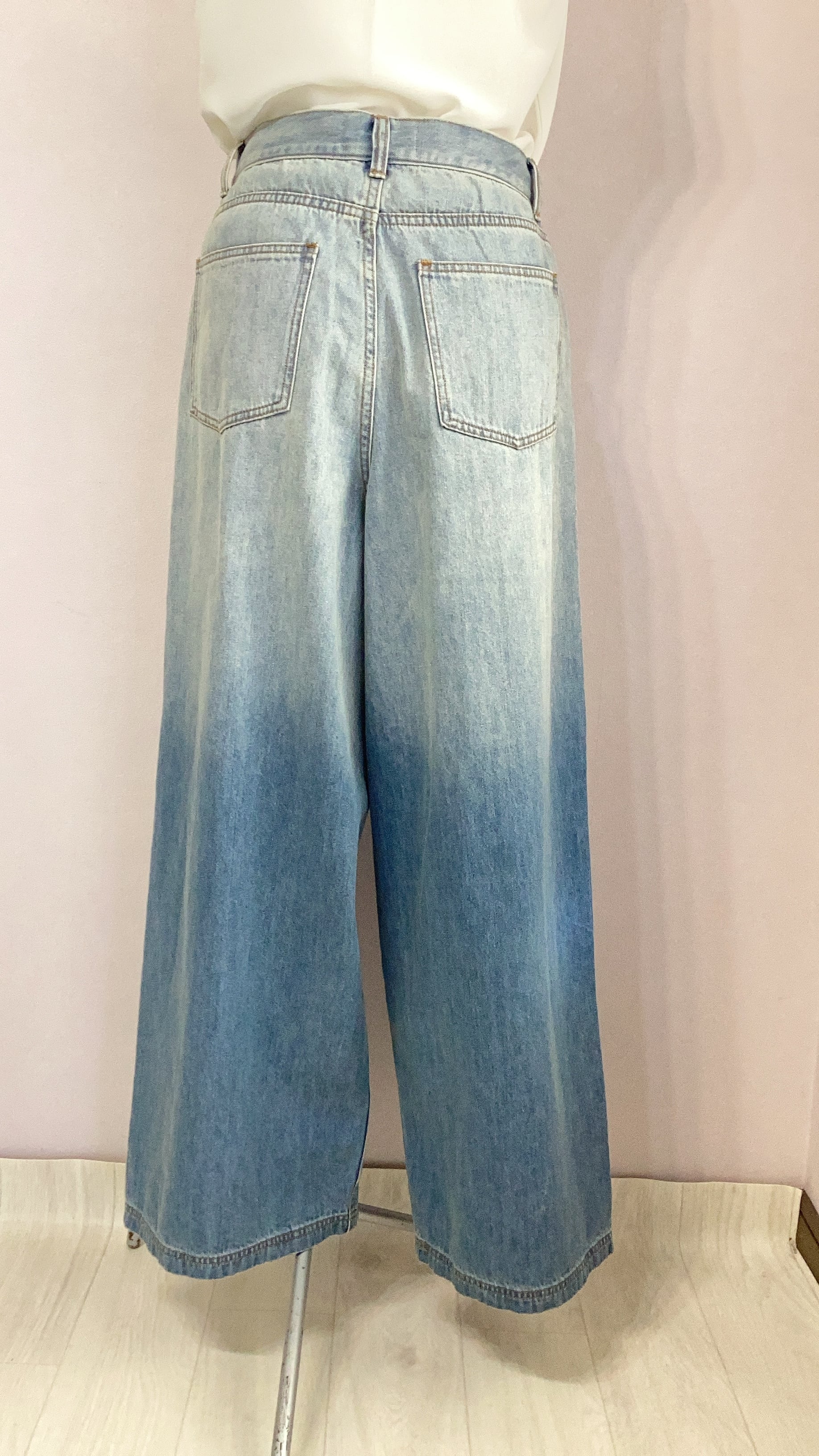 裾にかけてグラデーションになったデニムワイドパンツです。ウエストタックでインしてもすっきり見えます。