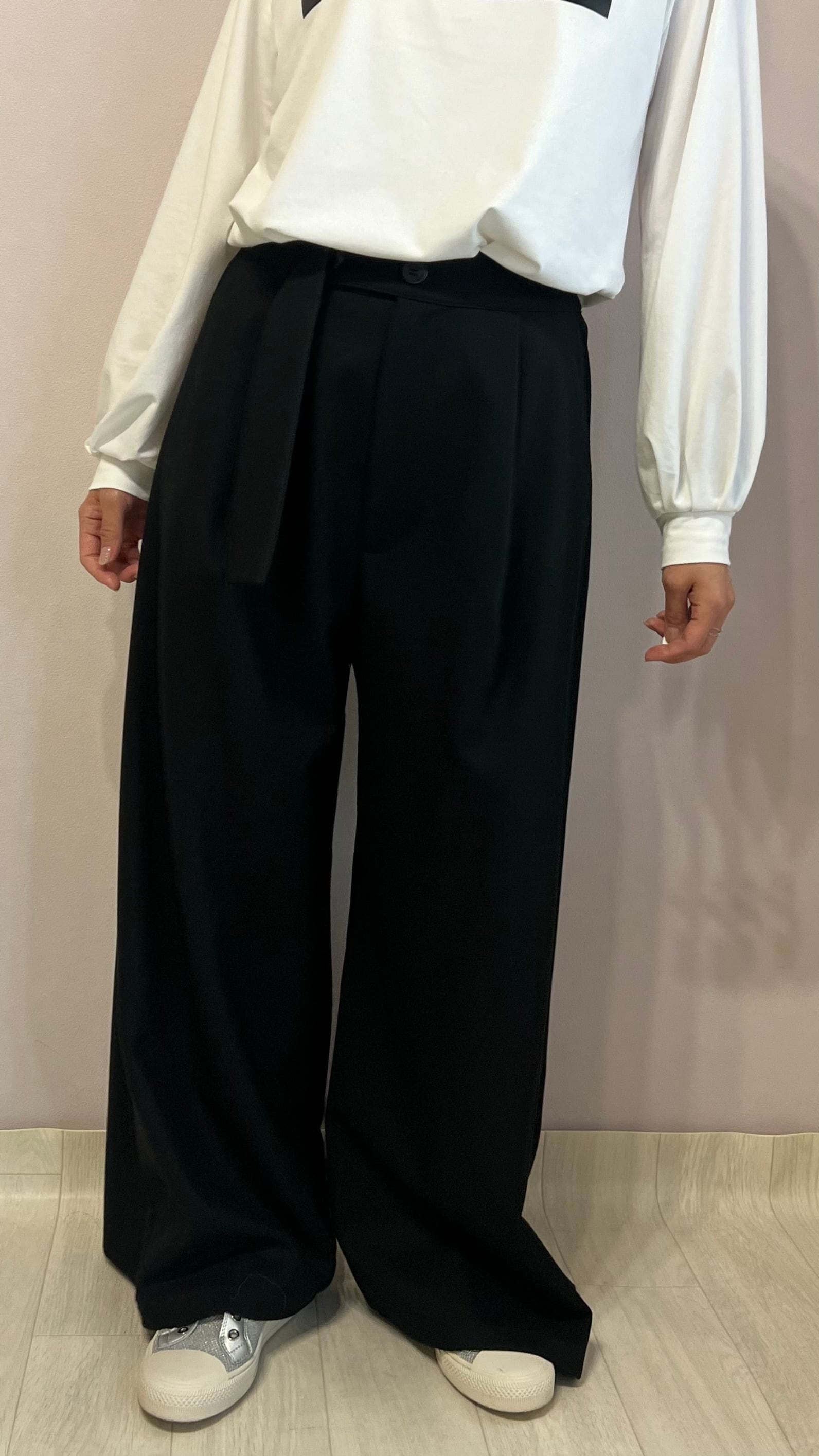 CYAN TOKYO オーバーベルトフラノワイドパンツ No.504386 ブラック ブラウン チャコールグレー 7号 9号 シアン