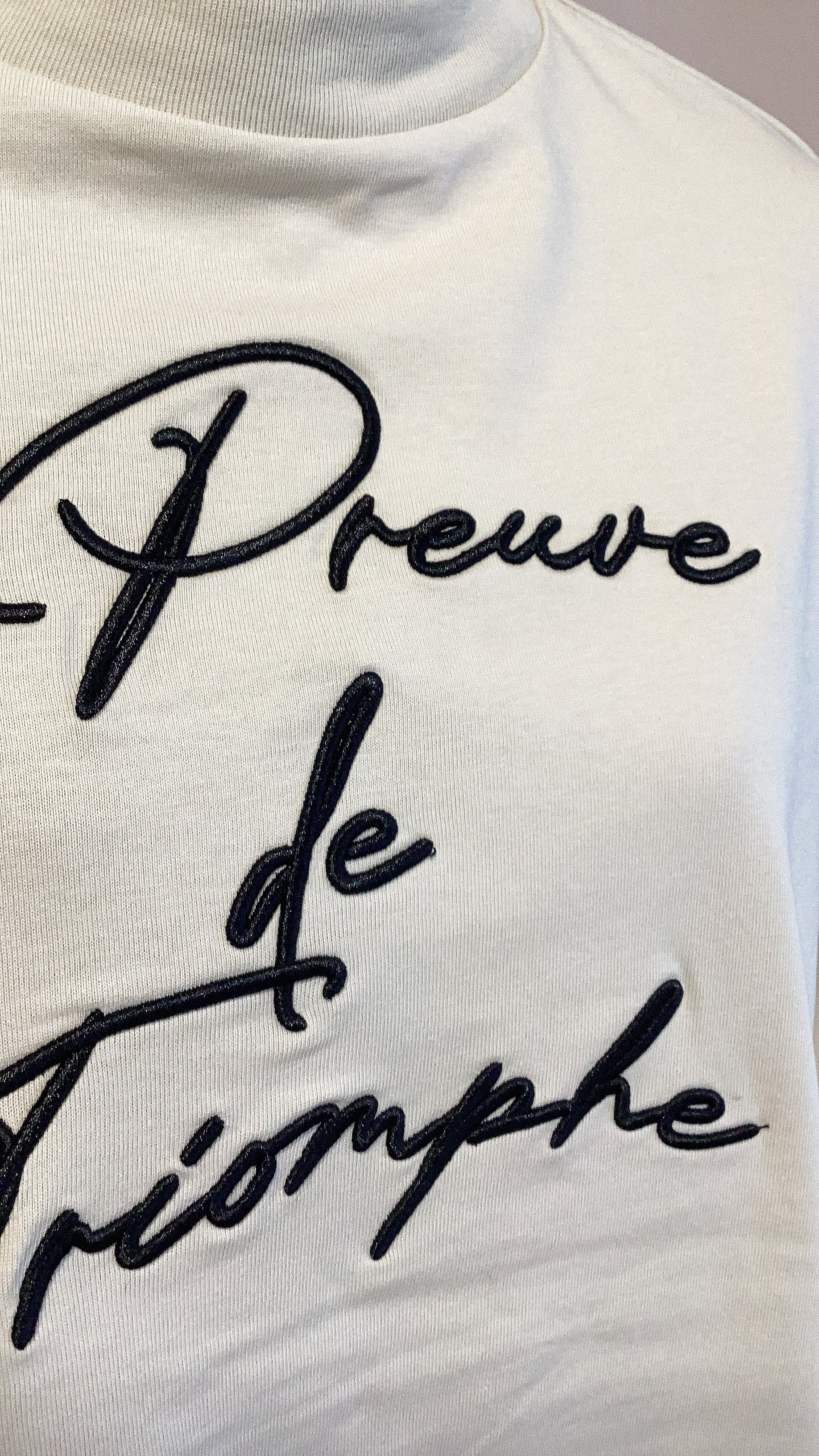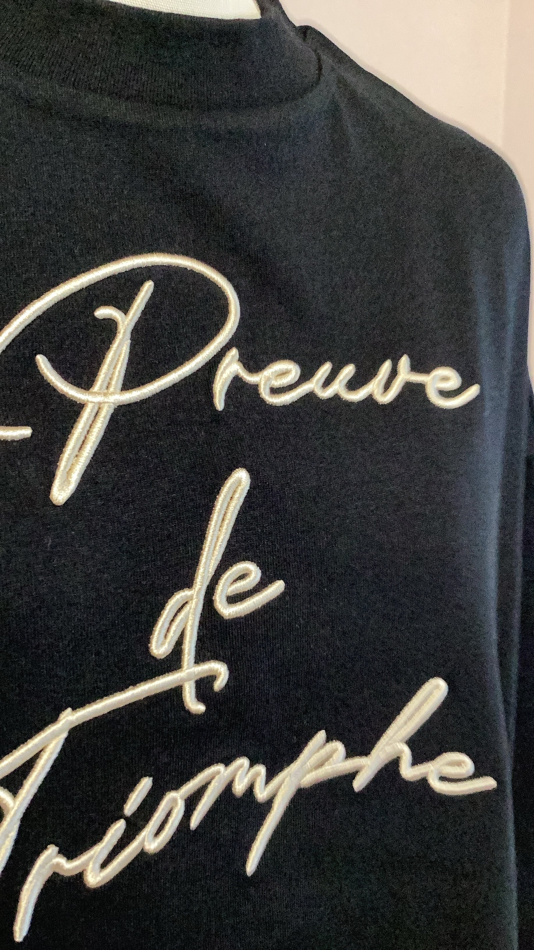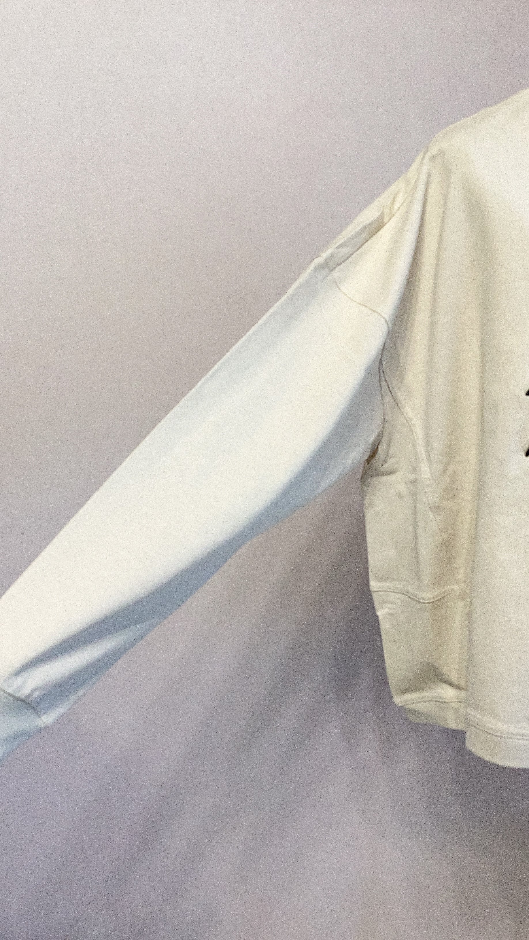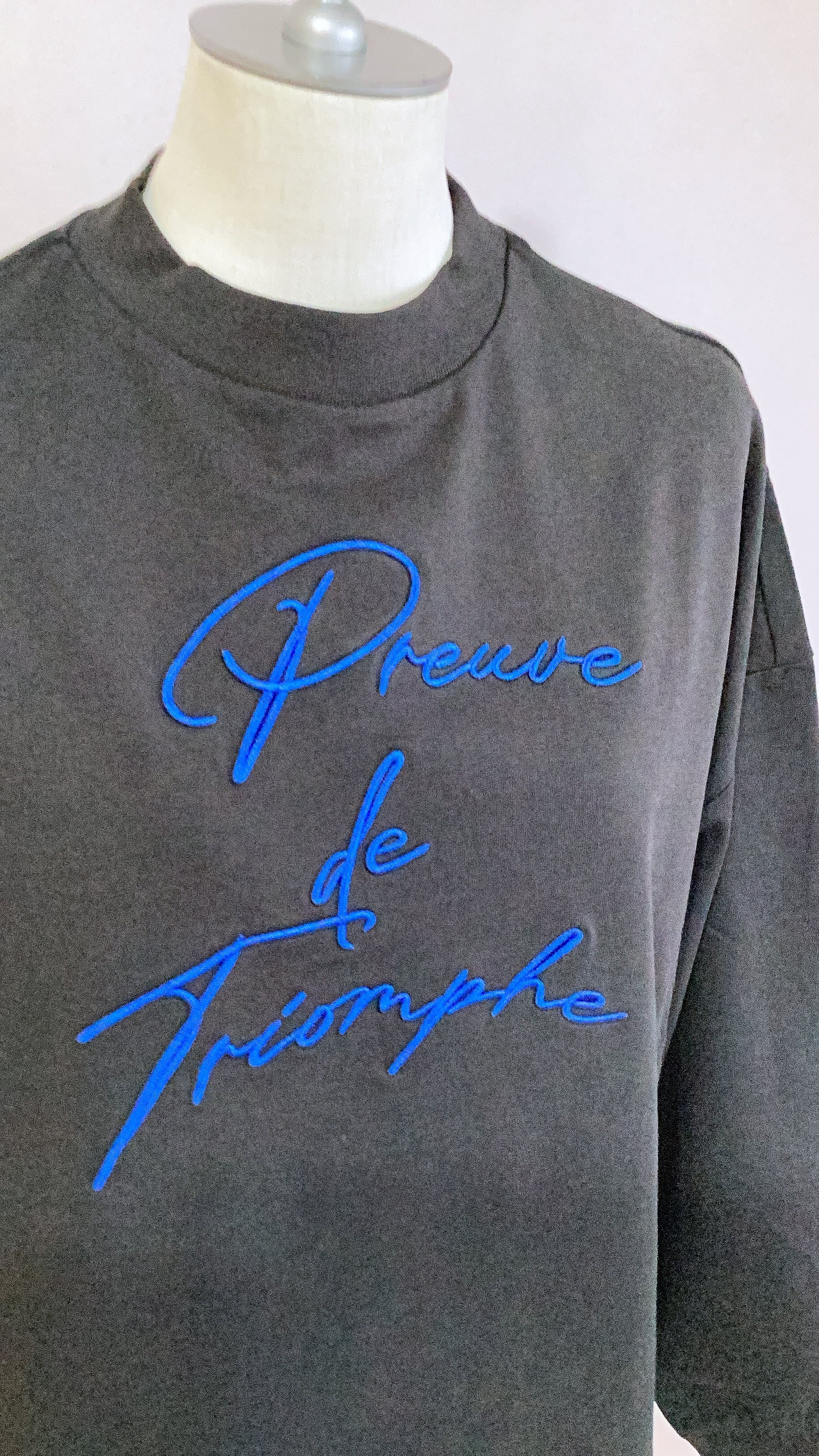 売れ筋の立体刺繍の秋冬バージョンのロングTシャツ。ゆったりとした切替デザイン。1枚でも、アウターを羽織ってもちょうど良い生地感です。