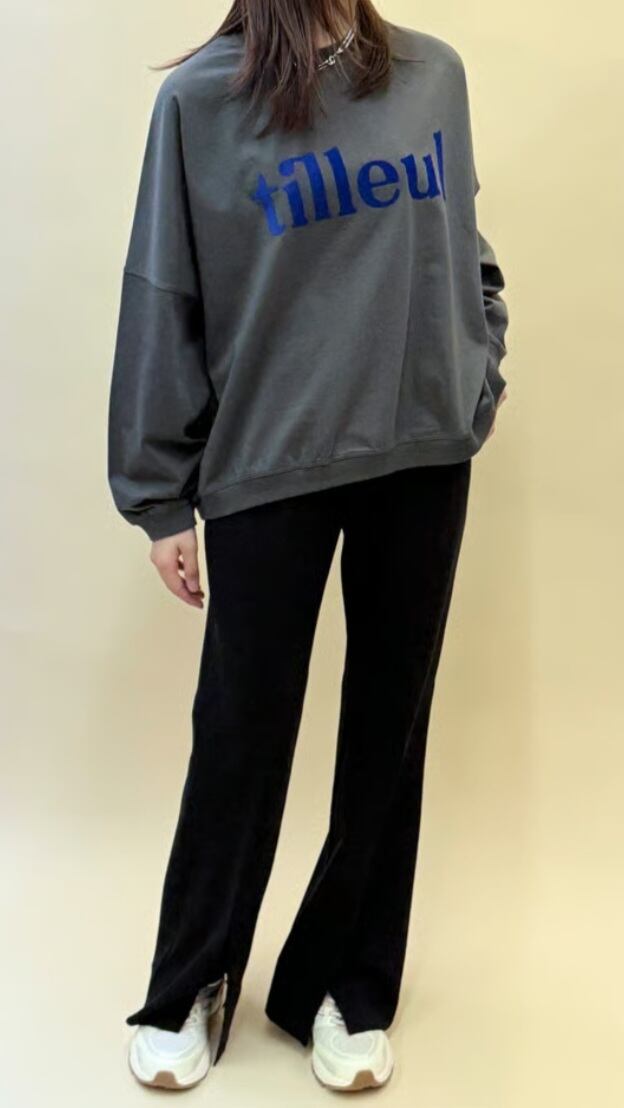 MARIE D‘OR ロゴフロッキープリント オーバーサイズ ロングスリーブTシャツ No.21246 チャコール×ネイビー 9号 フリーサイズ マリードール