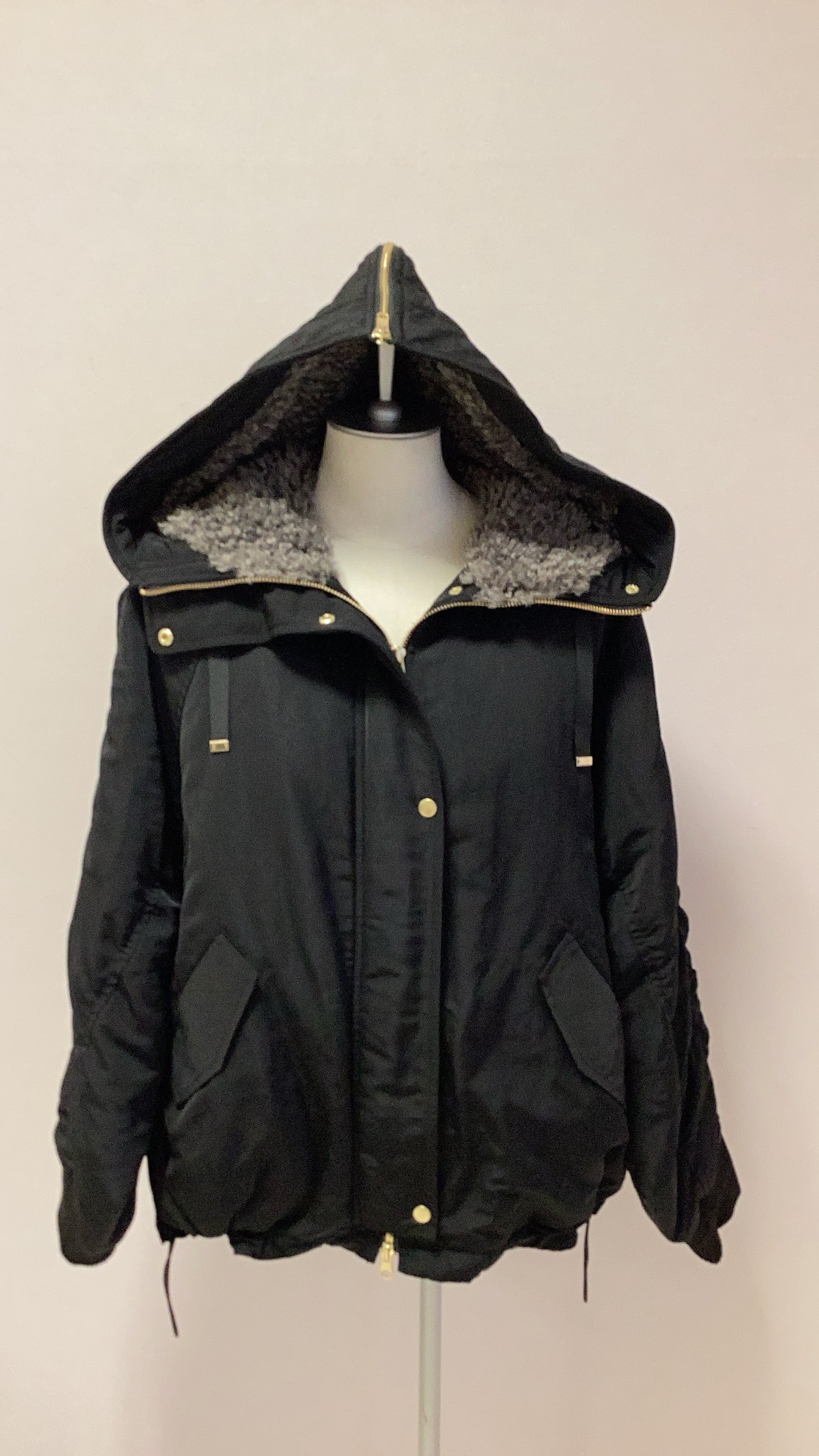 2025秋冬 trois カーリーボア×ポリツイル フーディーブルゾン T256-83051 フリーサイズ 9号 トロワ ベージュ ライトベージュ
