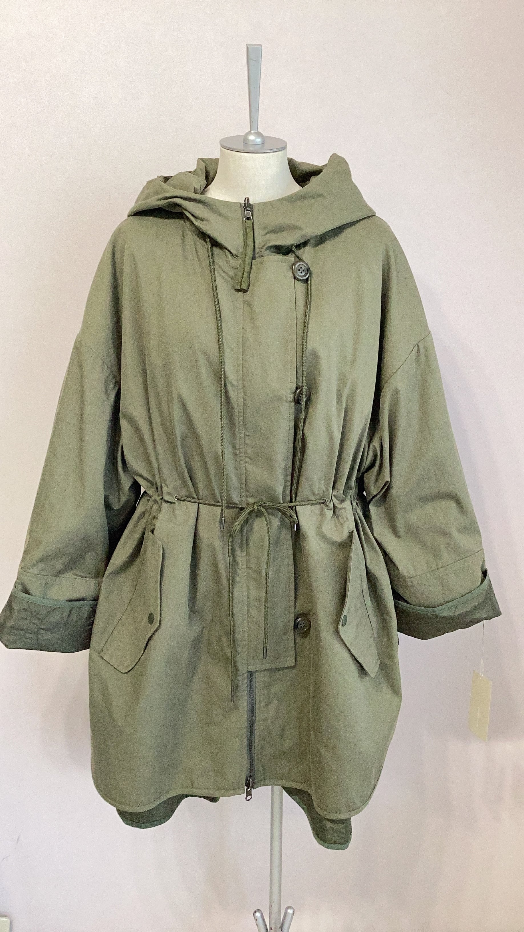袖口広めのトレンドデザイン。ウエストはシルエット調整できます。袖、裾ともにライナーが長めなのもポイント。