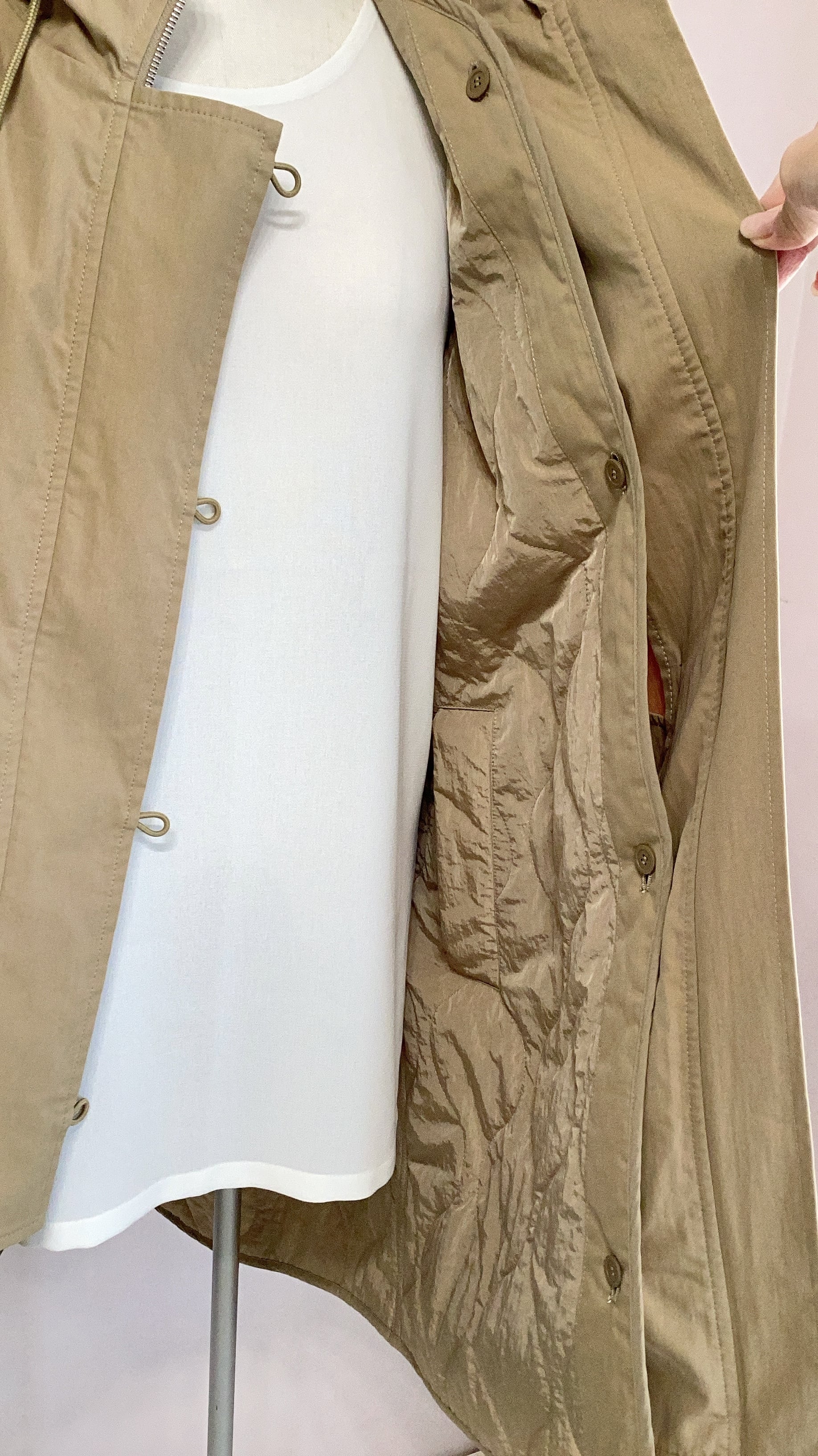 ライナー付きコットンロングコート。キルトのライナーは取り外してコートだけでも、ライナー単体でも着用できます。