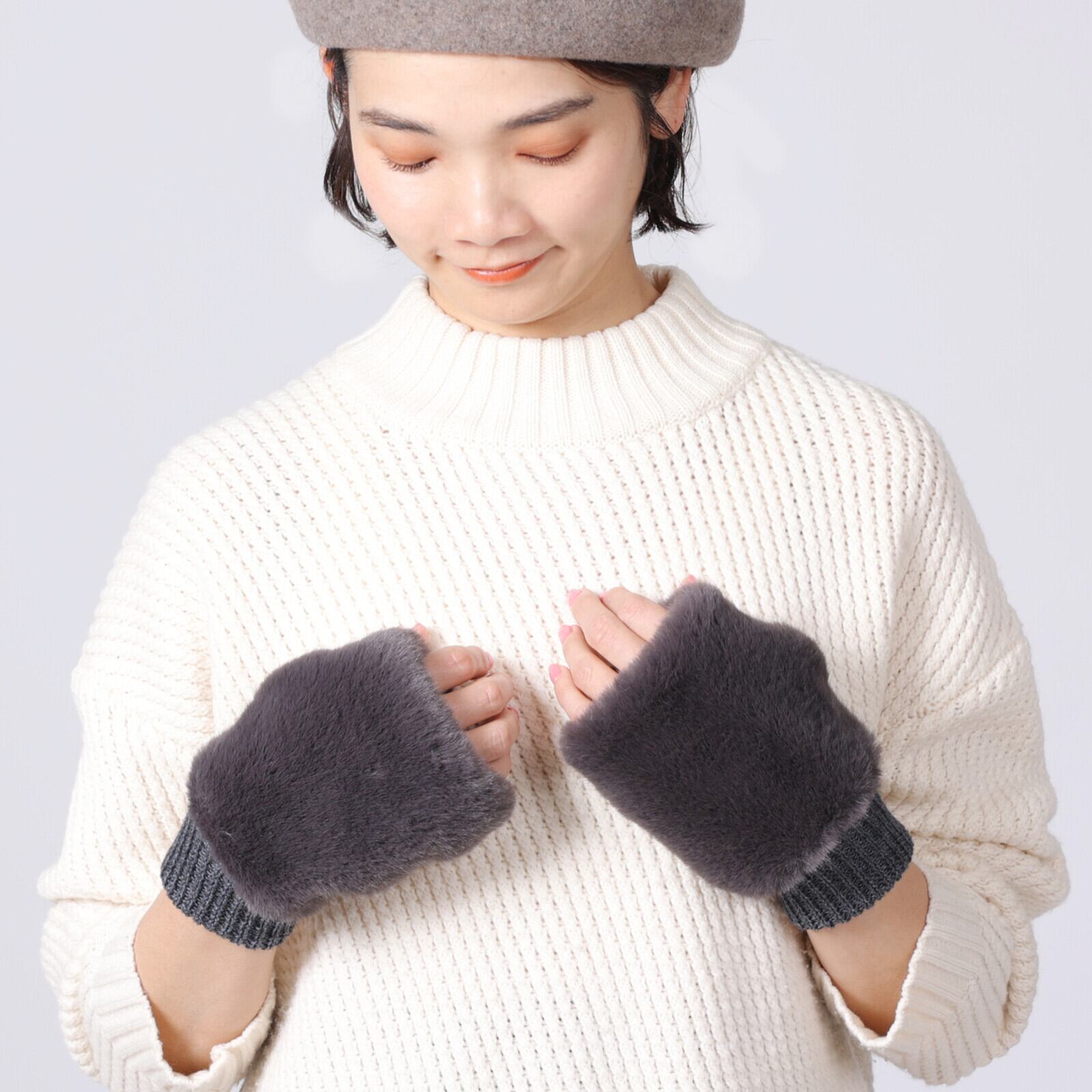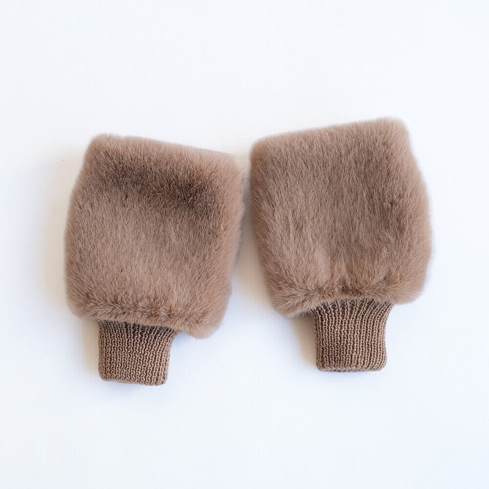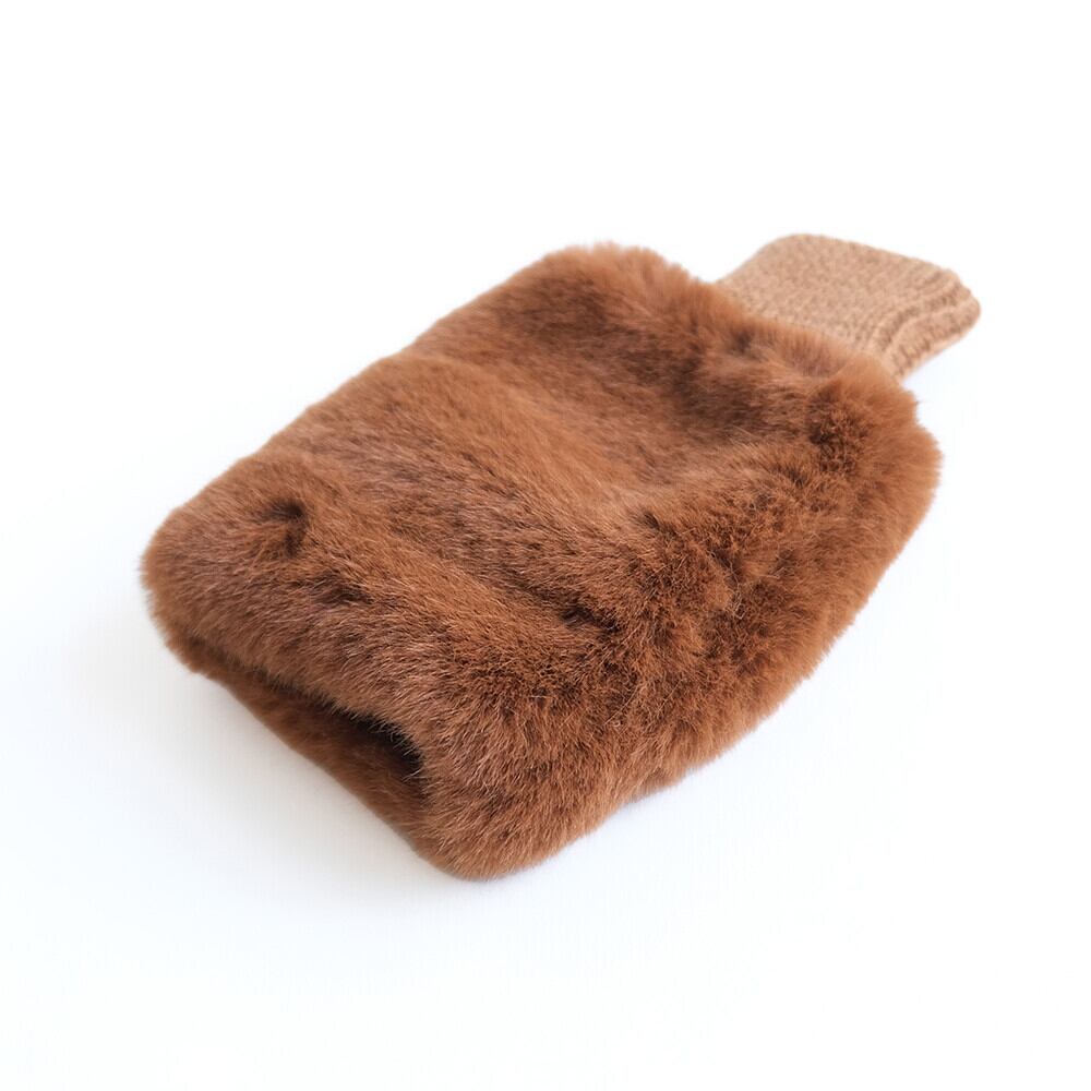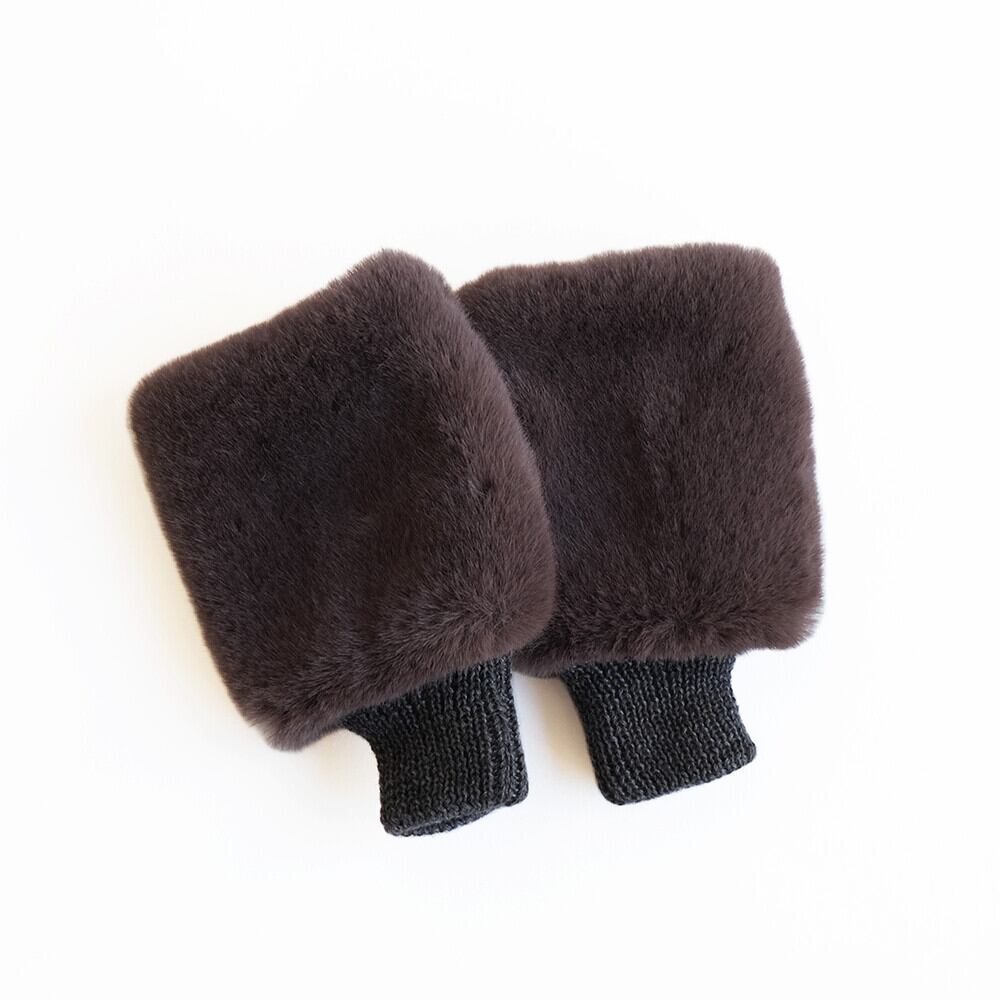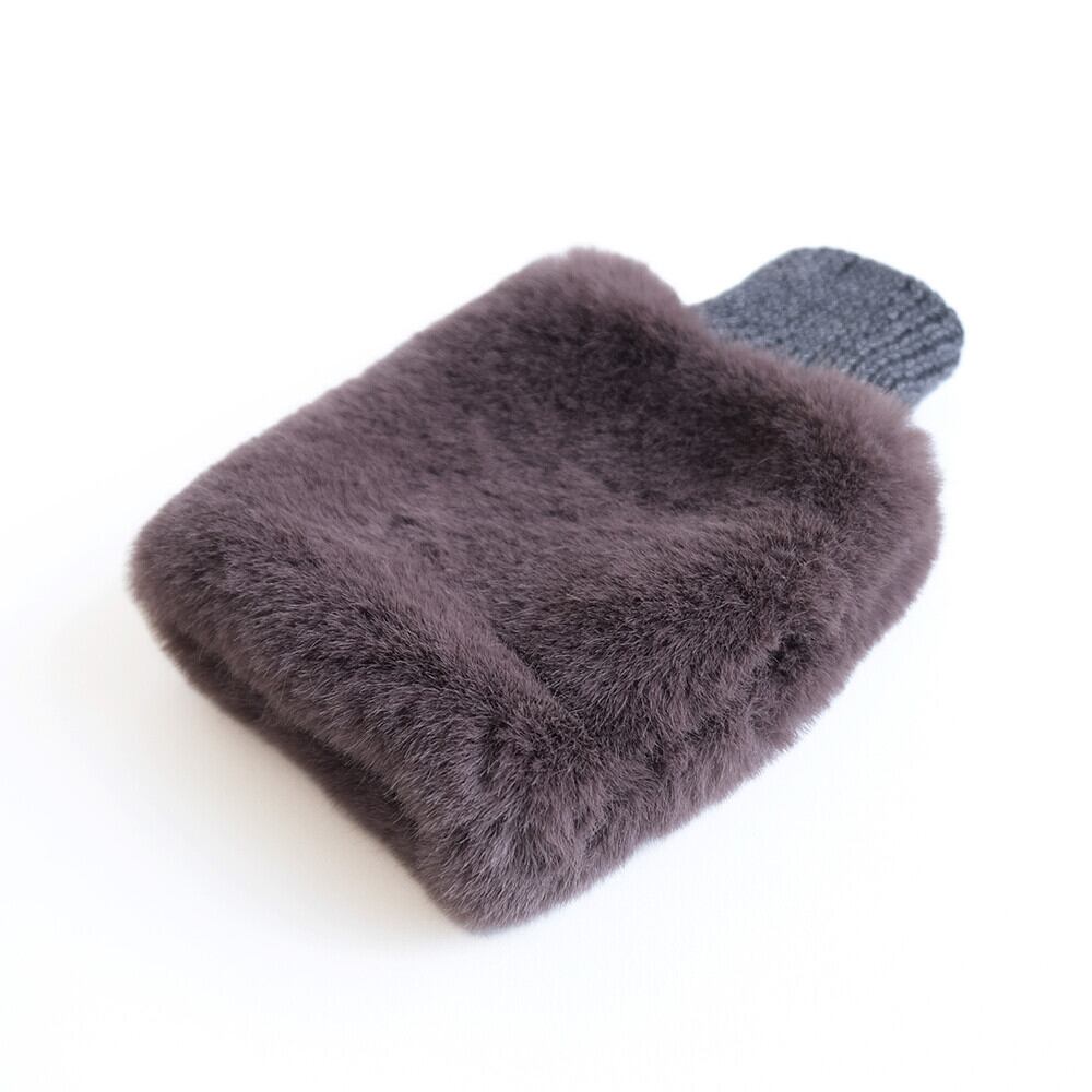 上質でなめらかなファーと柔らかく編み立てたニット素材のリバーシブル仕立て。