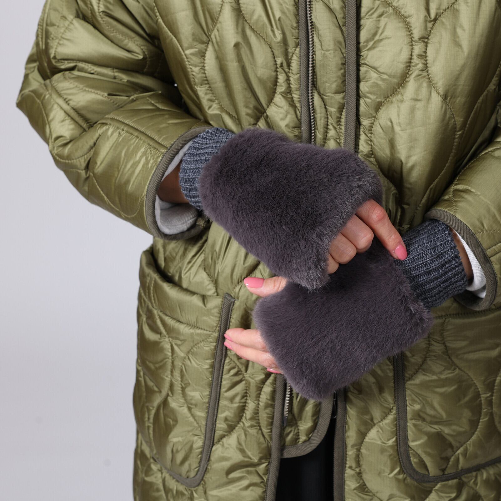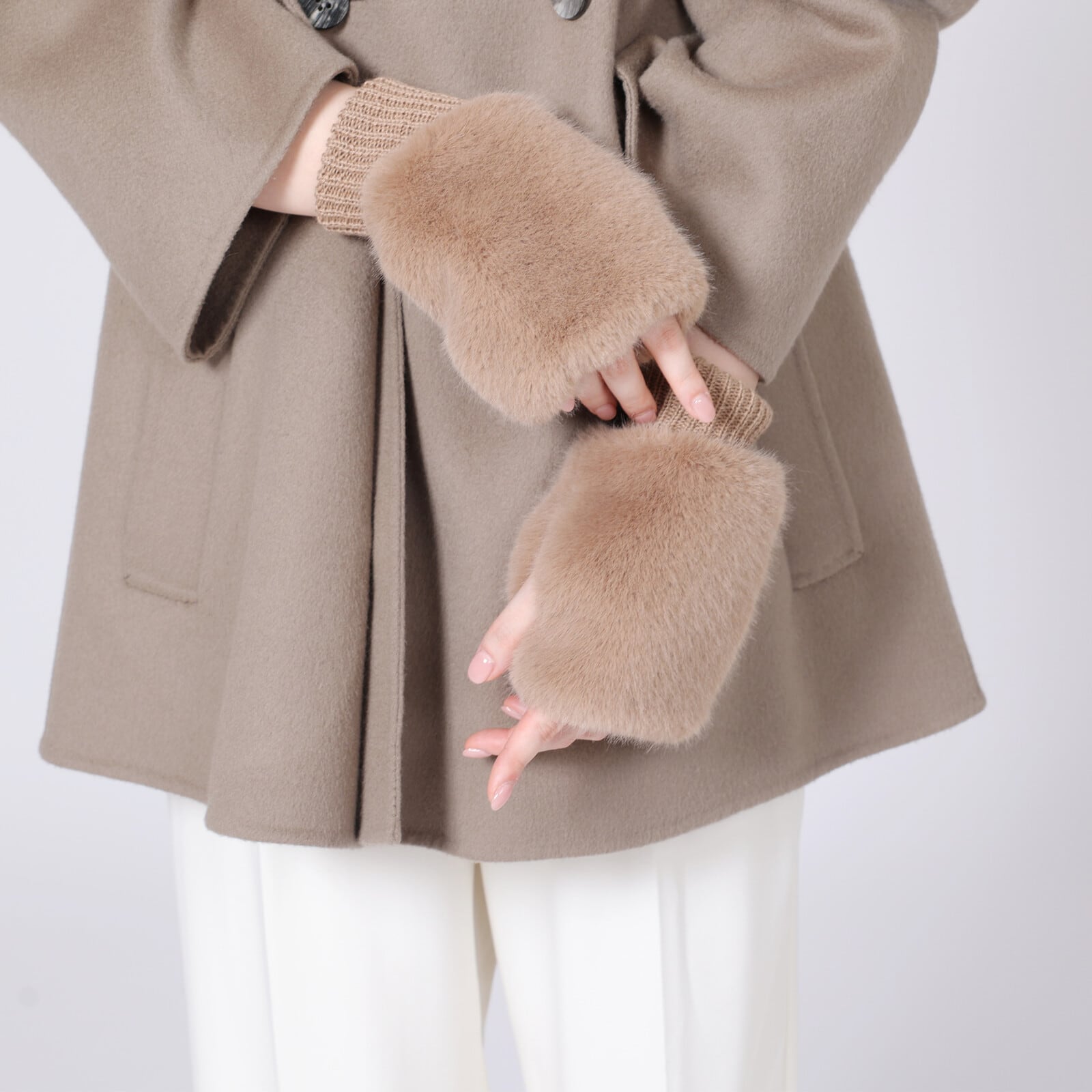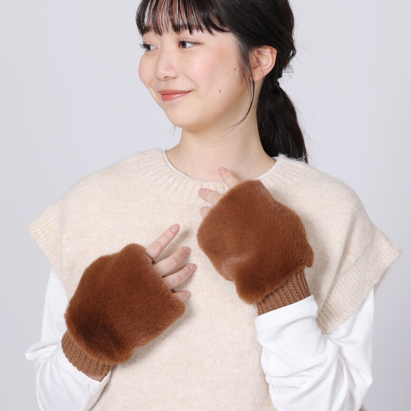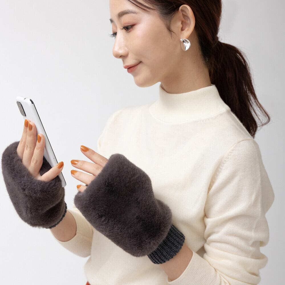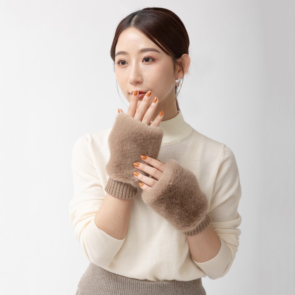 【新入荷】ファーとニットのハンドウォーマー/フェイクファー(3色)☆