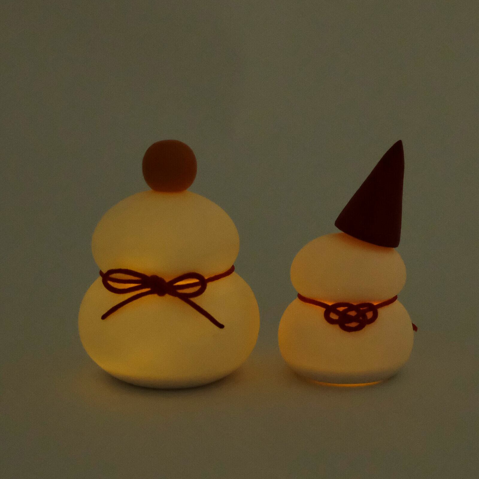 【新入荷】鏡餅のオブジェとしても使える 半磁器のLEDライト(2サイズ)/2way 正月 雪だるま 電池☆