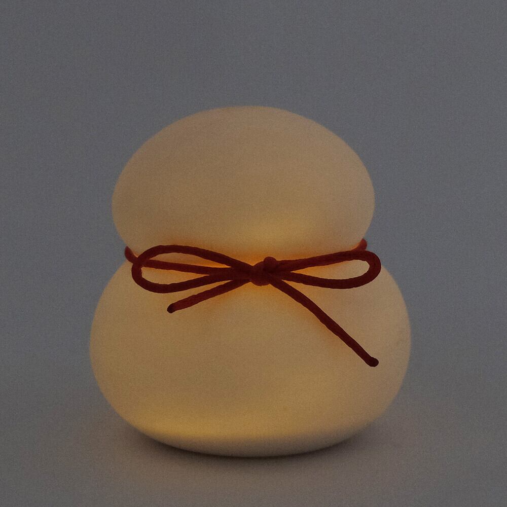 【新入荷】鏡餅のオブジェとしても使える 半磁器のLEDライト(2サイズ)/2way 正月 雪だるま 電池☆