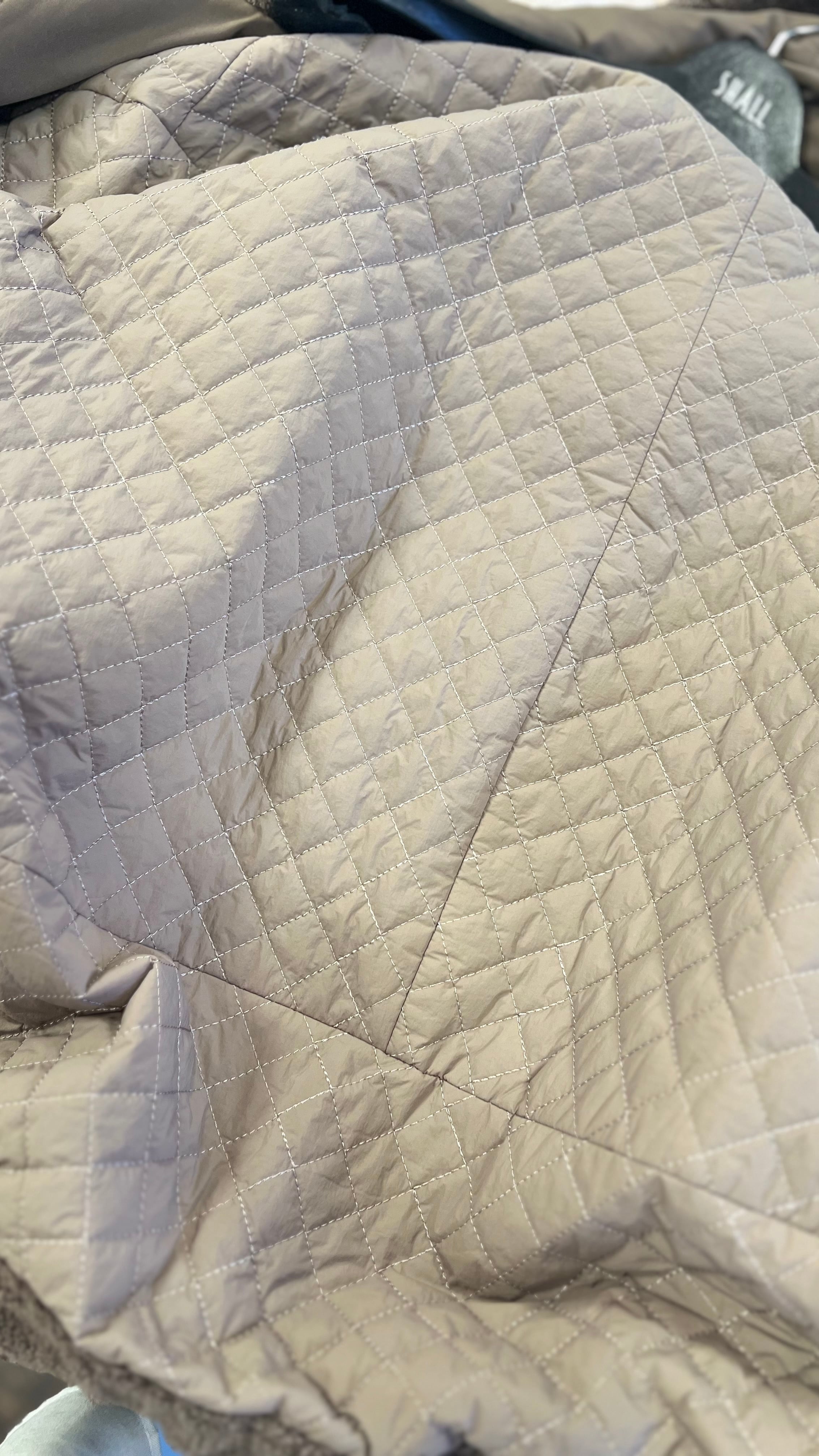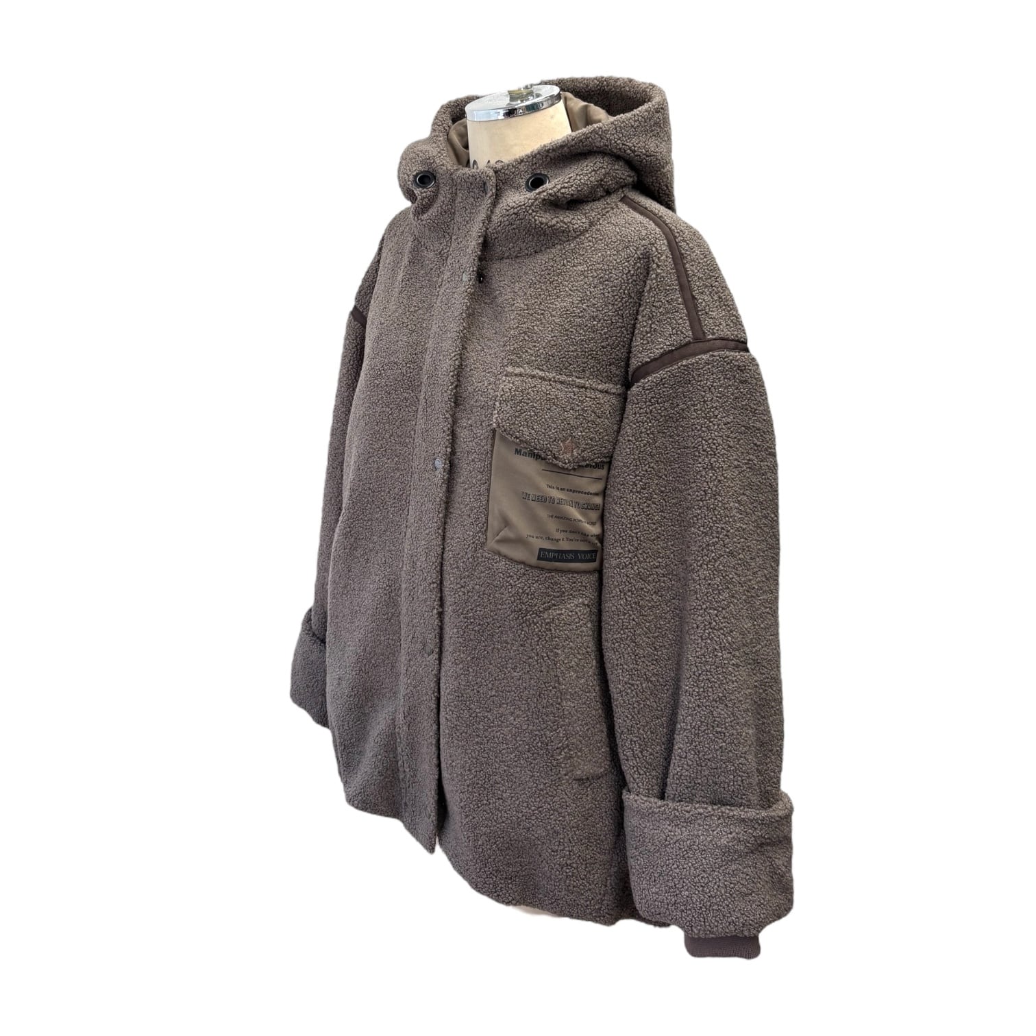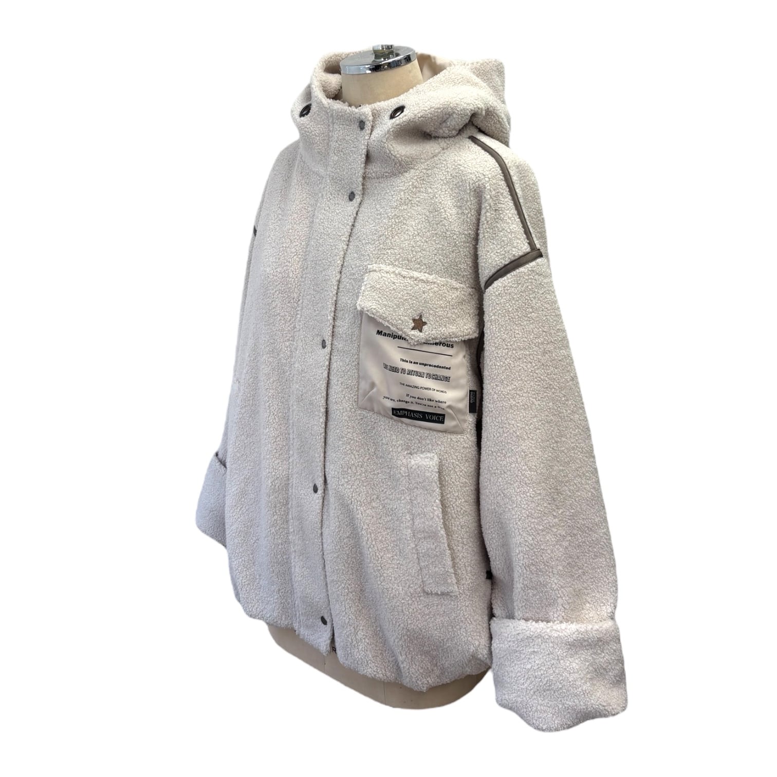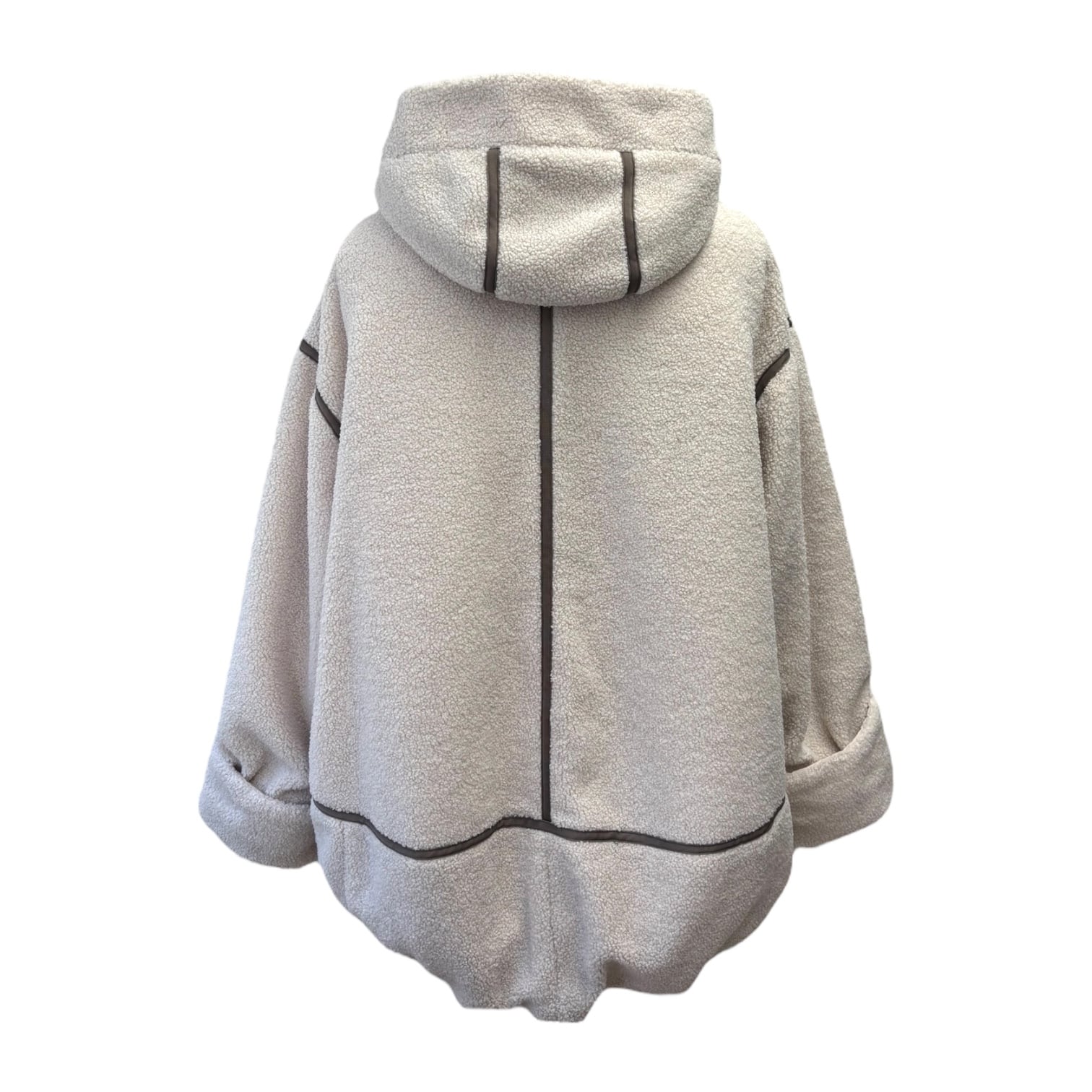 ゆったりしたサイズ感のフード付きボアブルゾン。丈も長めで体型カバーできます。裏地はキルトで暖かく、袖口はリブ仕様です。