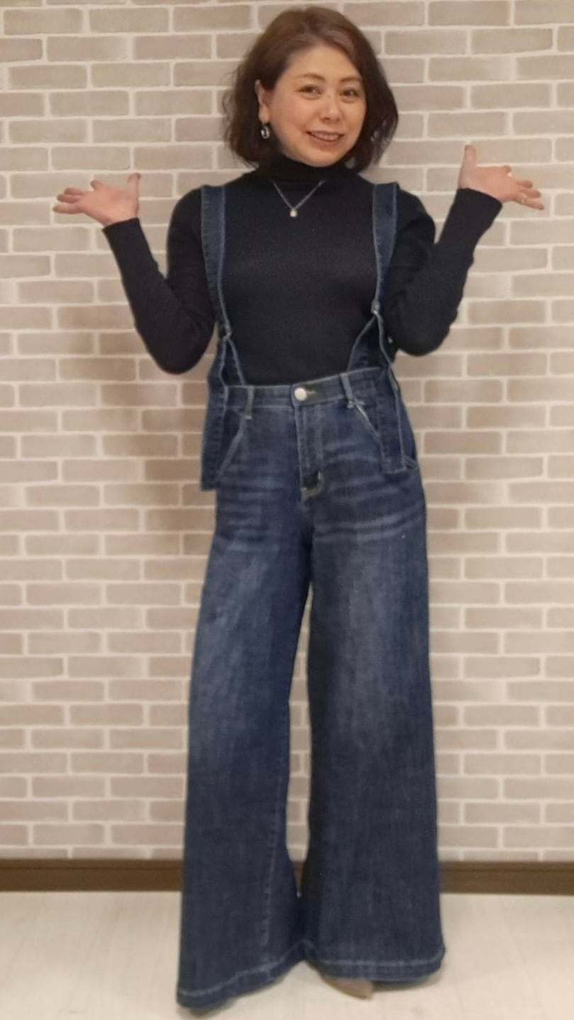 164cm骨格ストレート:Mサイズ着用(黒トップス)