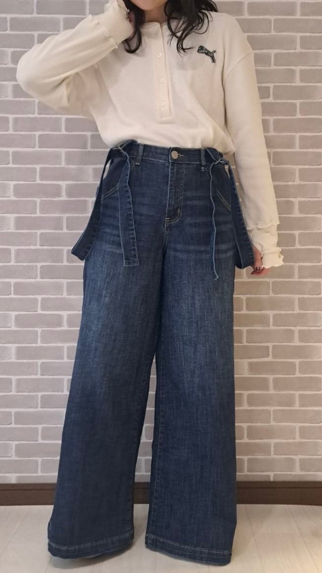 伸びやかなストレッチデニムに、ウエスト部分は幅広ゴムでフィット感抜群。