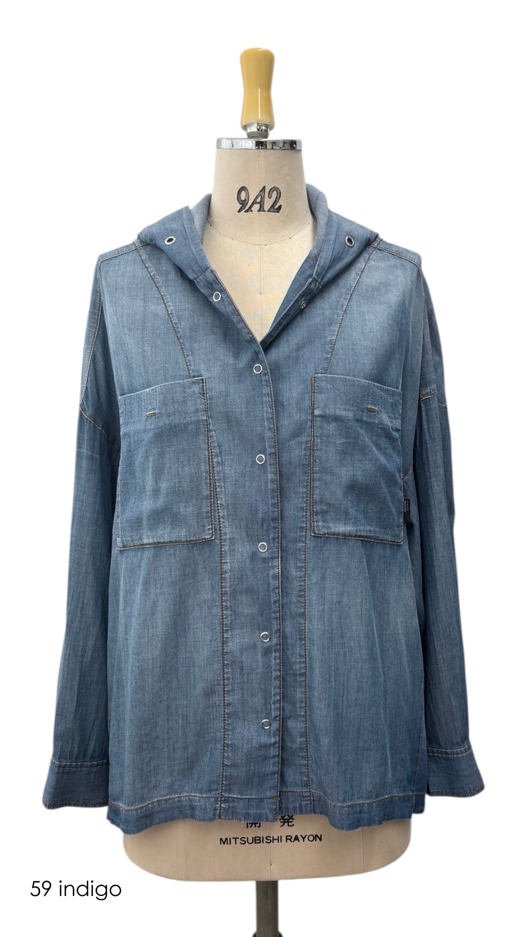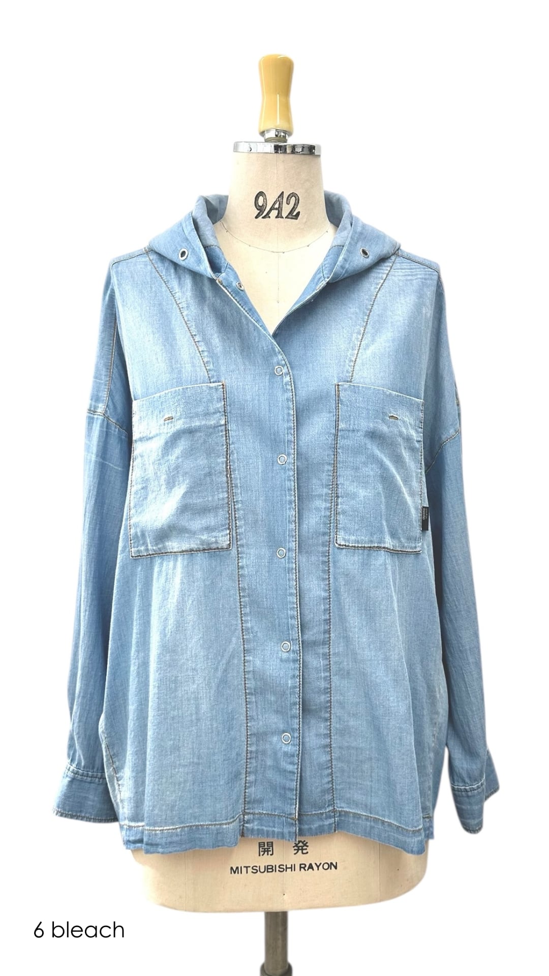 3月予約 ayane シアーデニムフーディーシャツ No.816302 ブリーチ インディゴ 9号 Mサイズ アヤン セットアップ対応