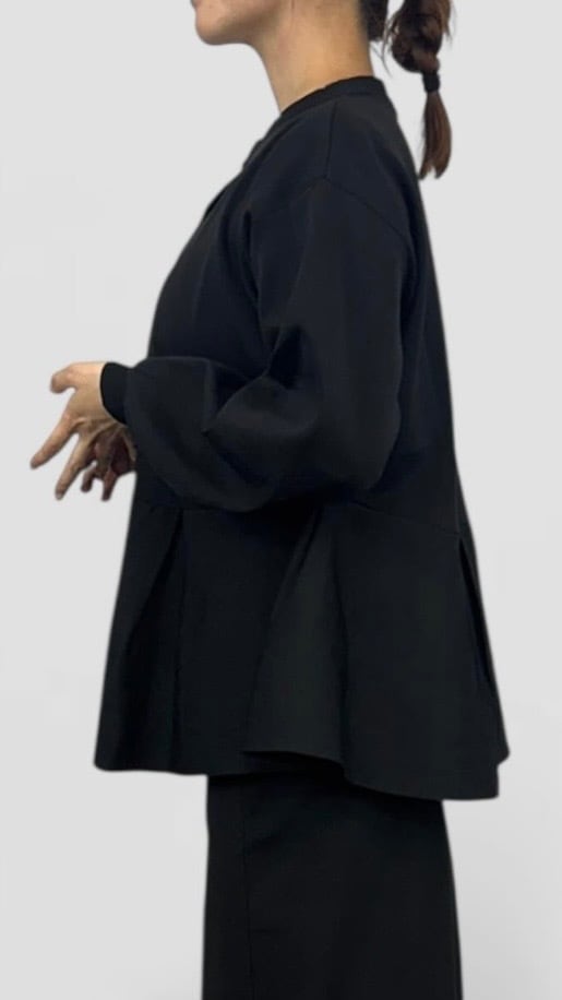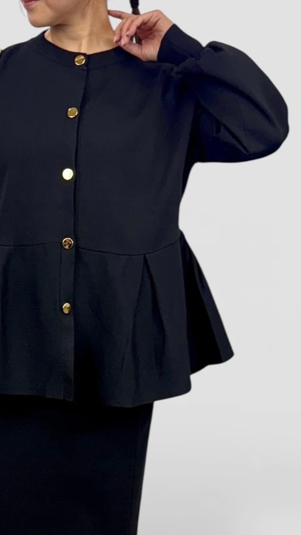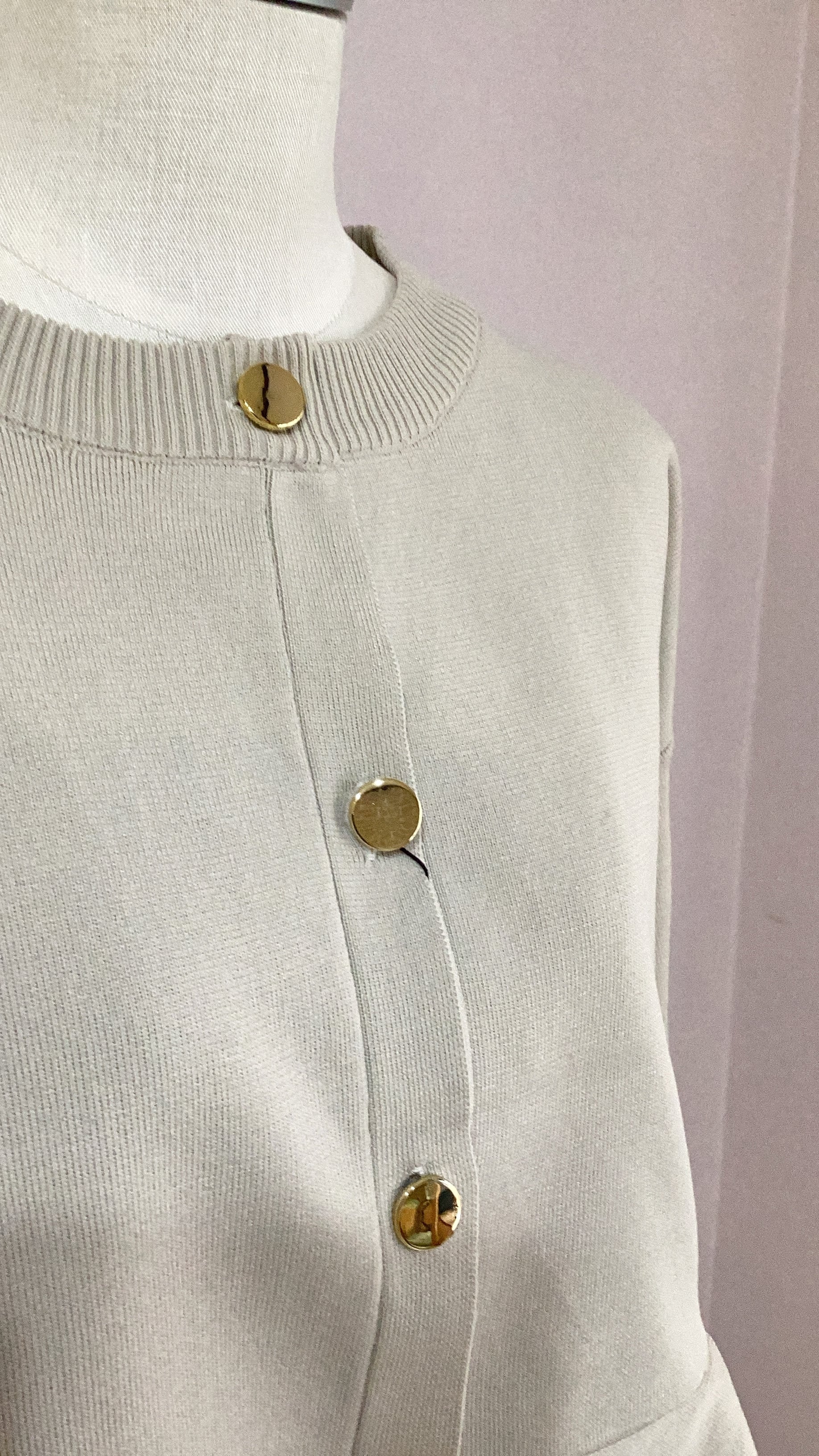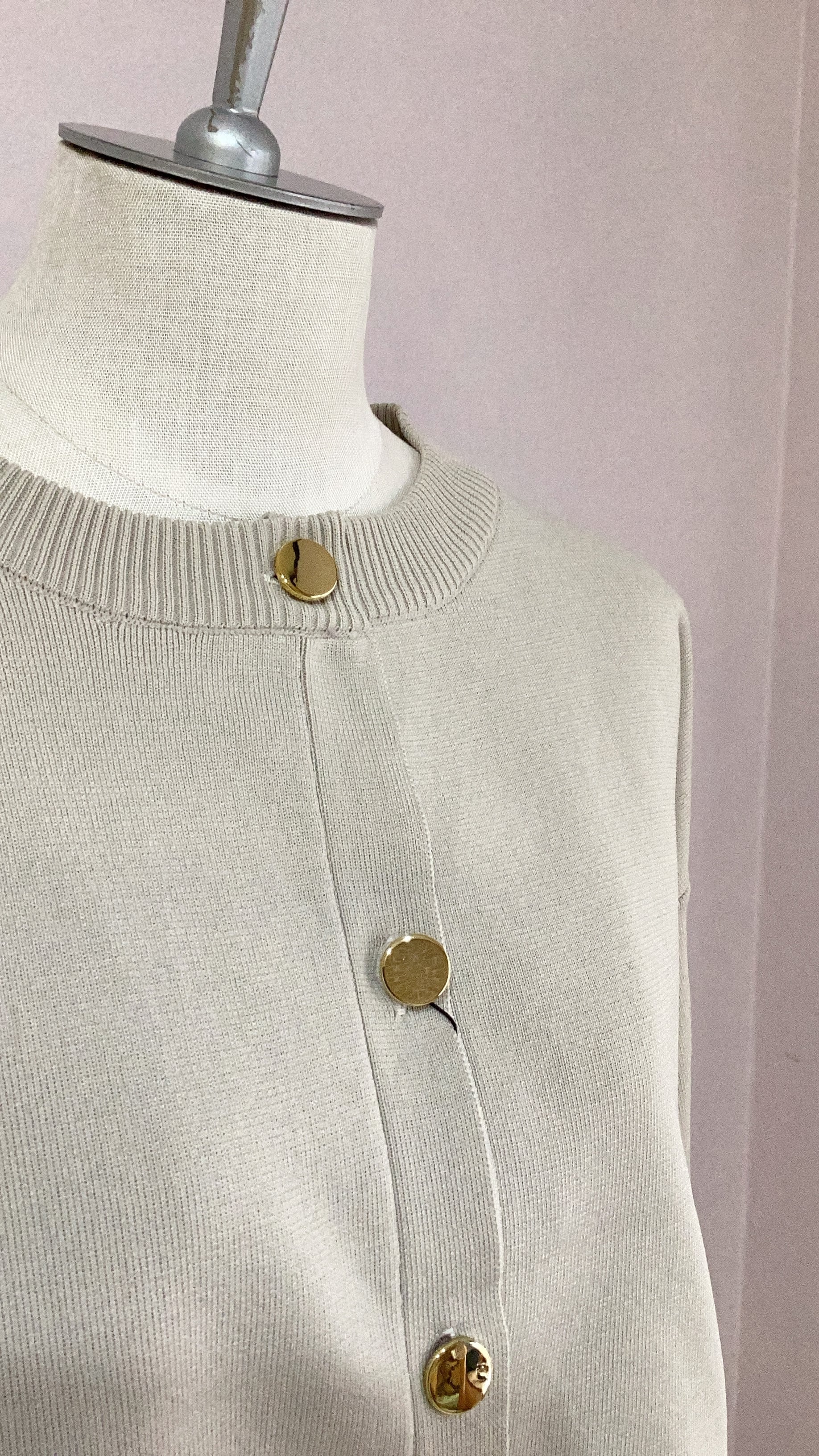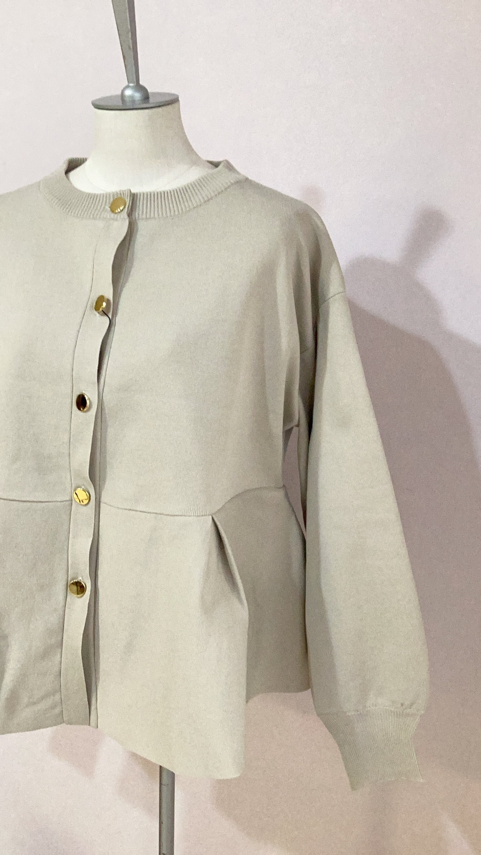 ボタンはメタルゴールドなので華やかで、カーディガンとしてもトップスとしても活躍する1枚。
