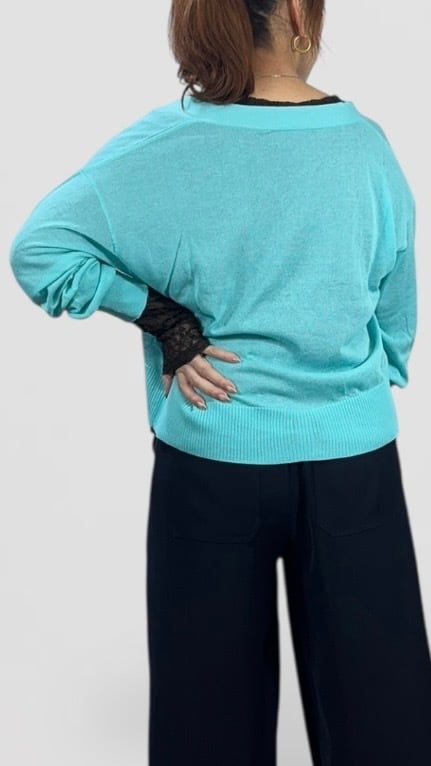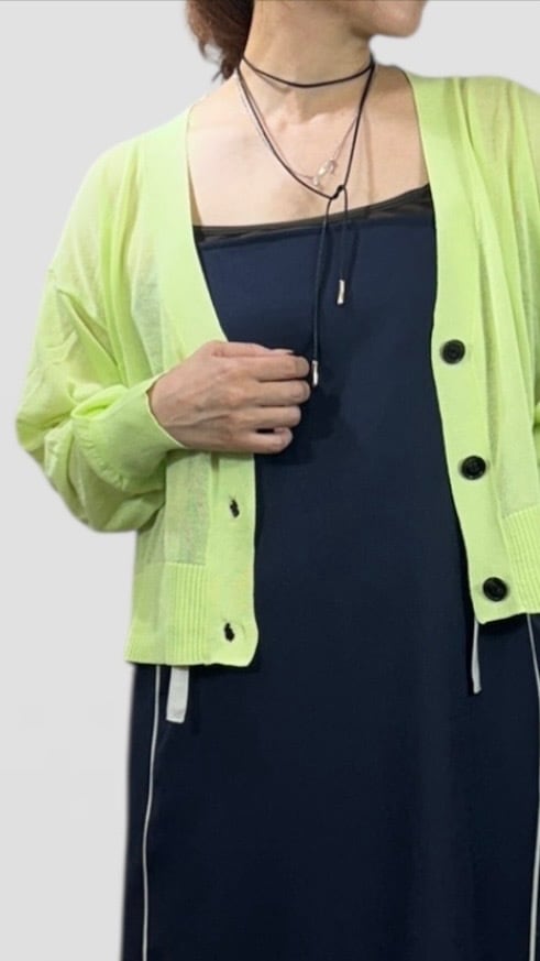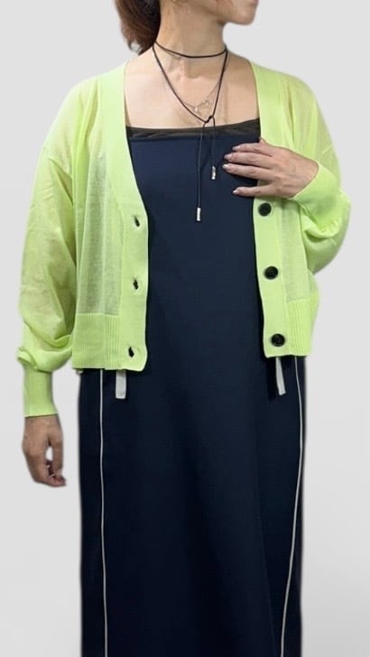 QTUME シアーニットクロップドカーディガン No.612-25066 ライムグリーン サックス ピンク クチューム 9号