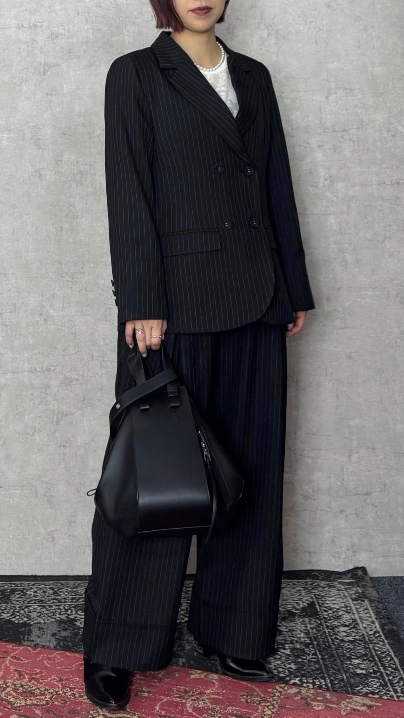 フロントタックで幅広い折り返しが特徴のワイドパンツ。オケージョンにもおすすめです。