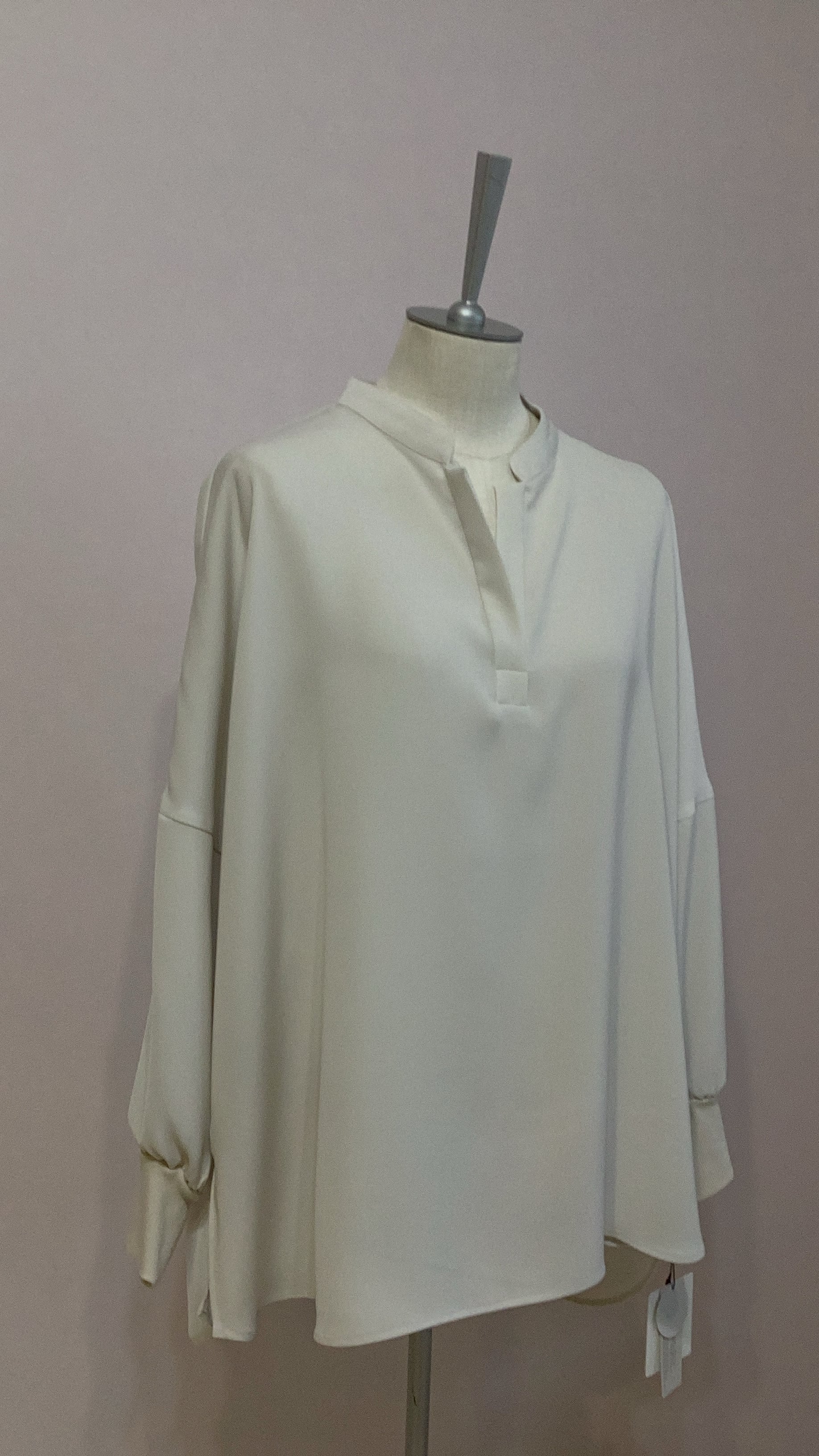 QTUME MI-LIONE サテン リラクシースキッパープラウス No. 610-25057 ネイビー アイボリー クチューム 9号