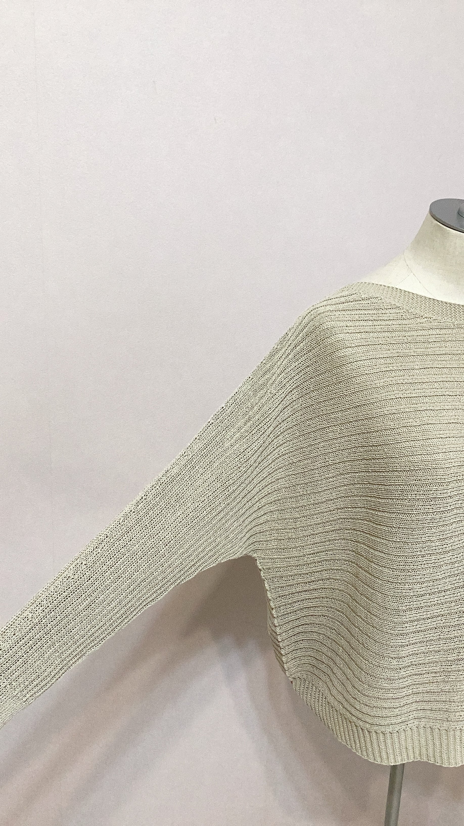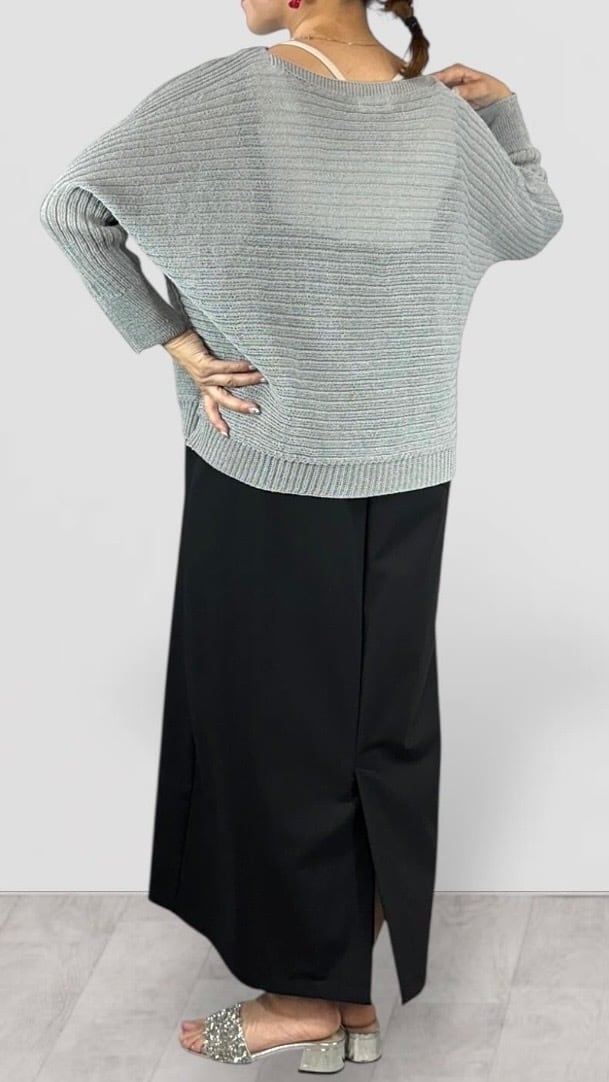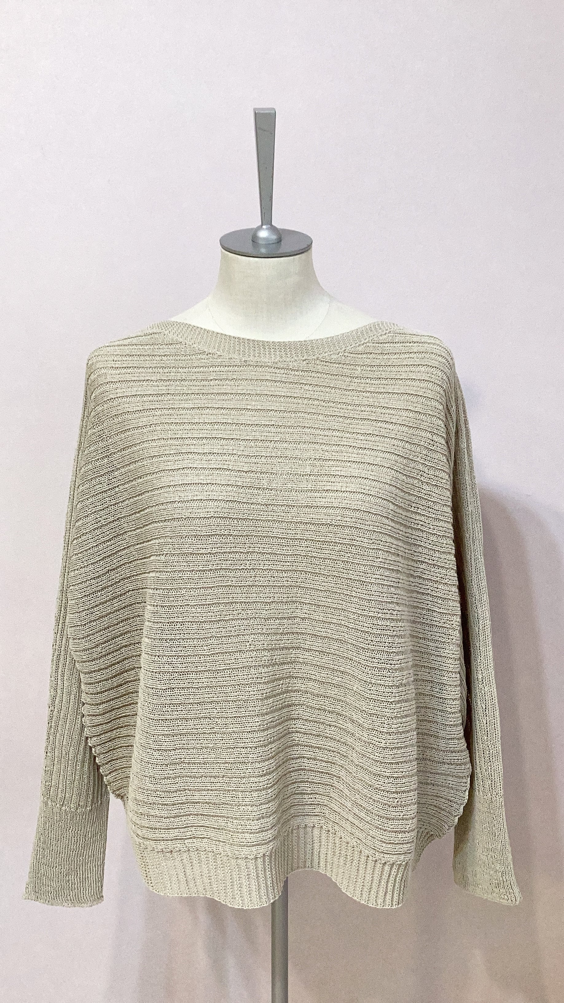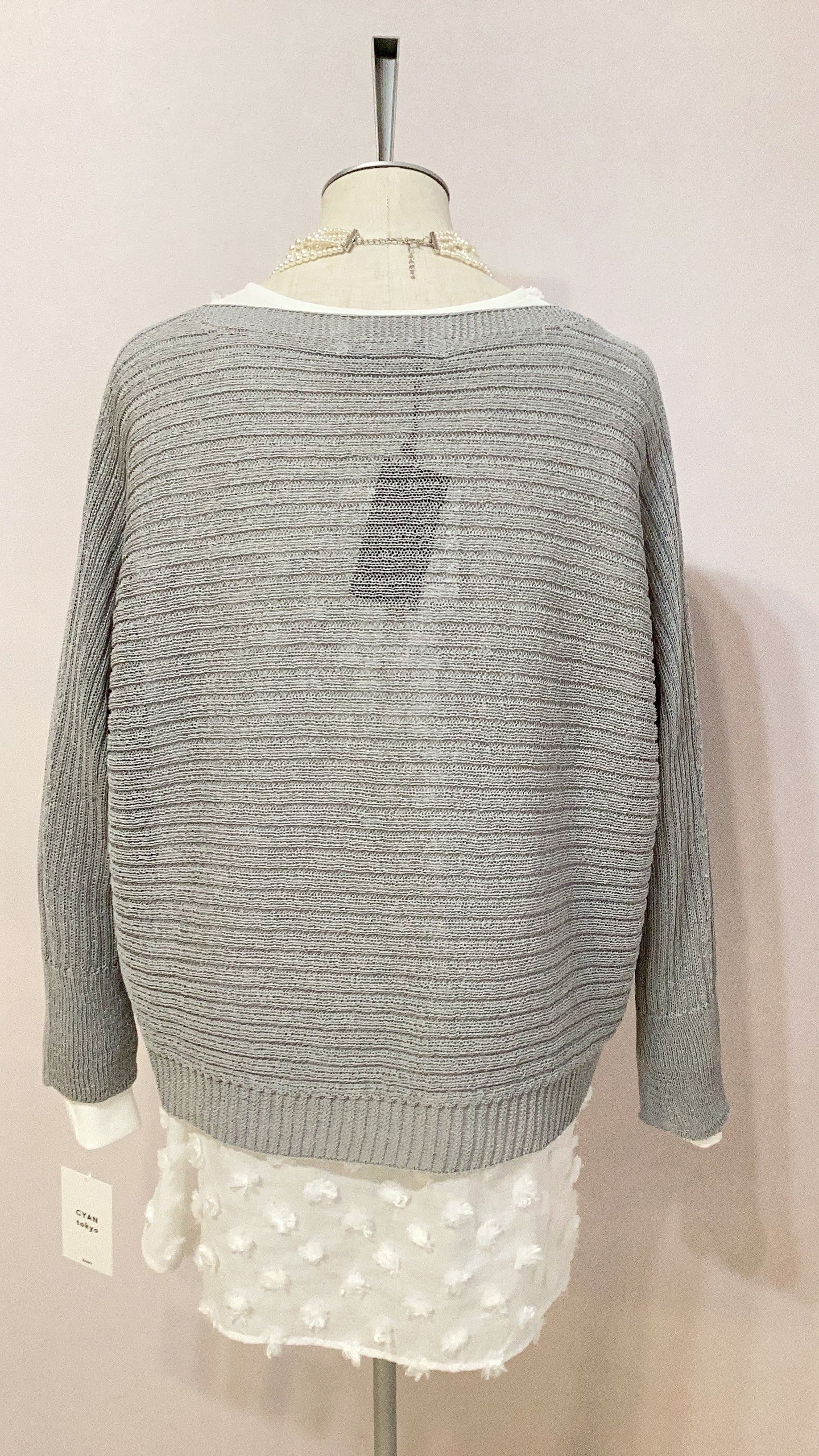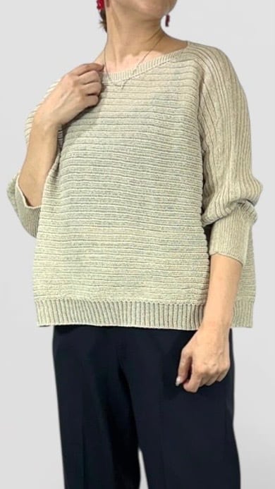 QTUME 「Yamagata Knit」 SHION和紙混 ドライタッチ ドルマントップス No.612-25029 アイボリー ベージュ グレー クチューム