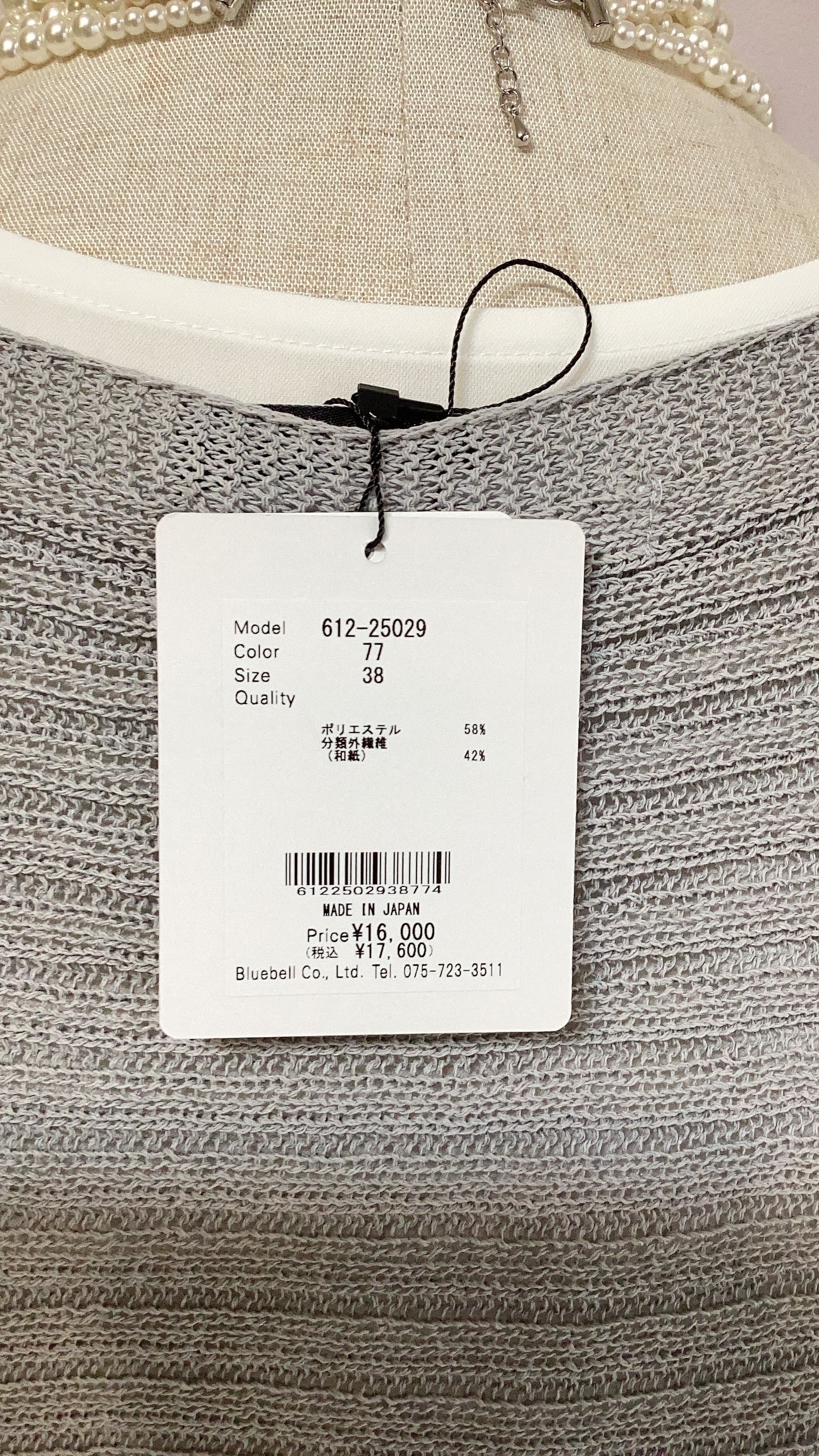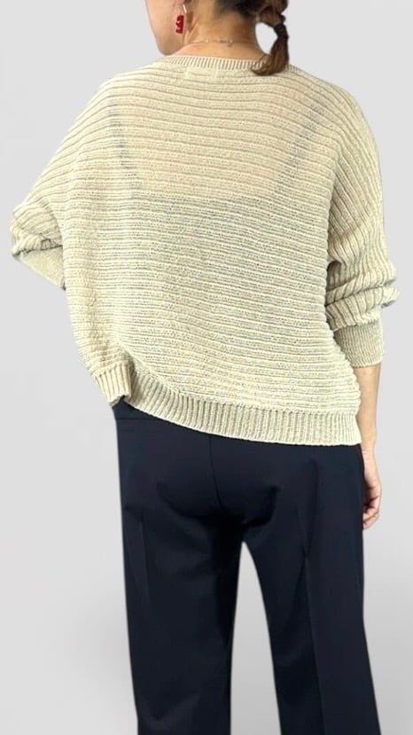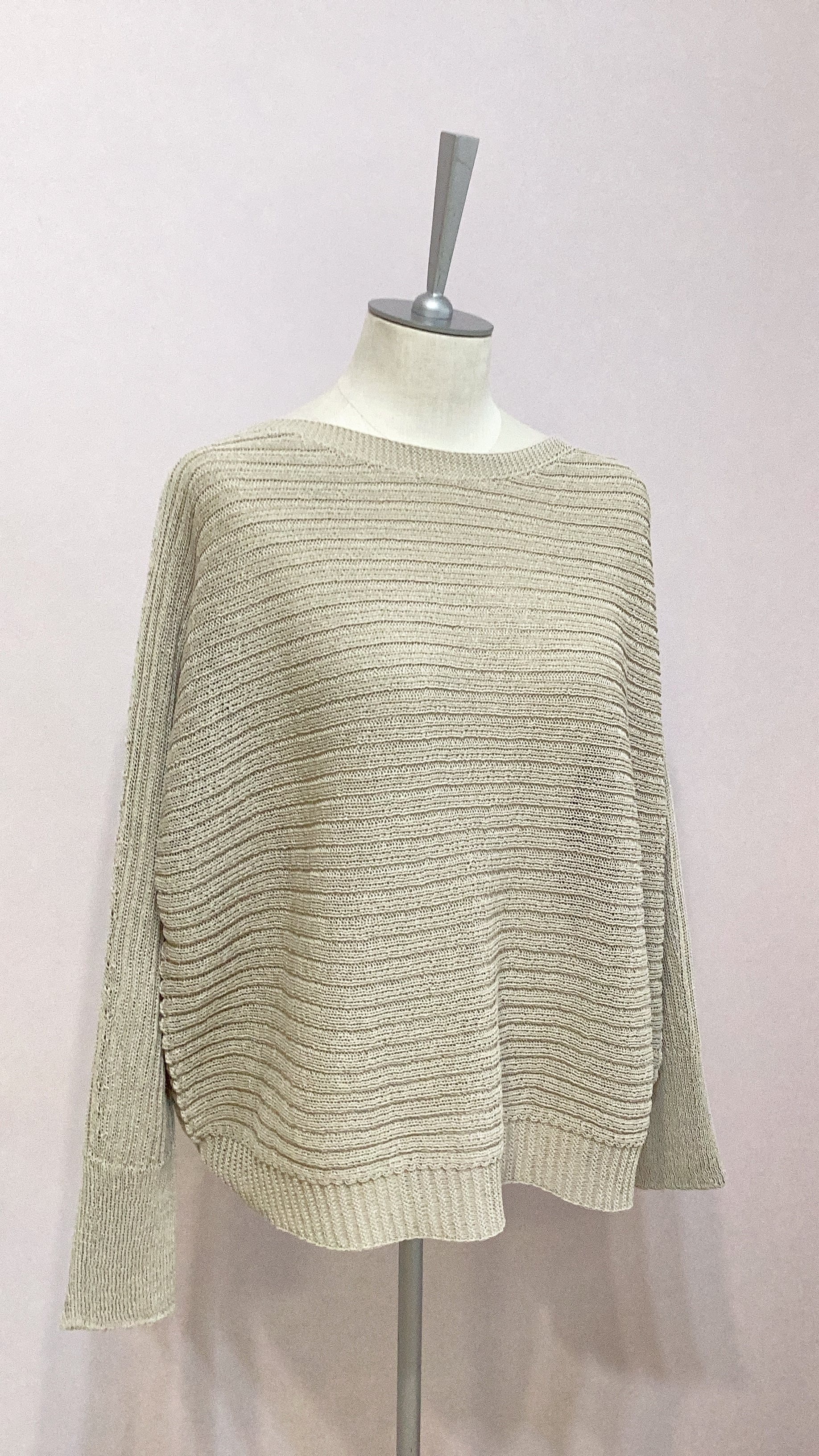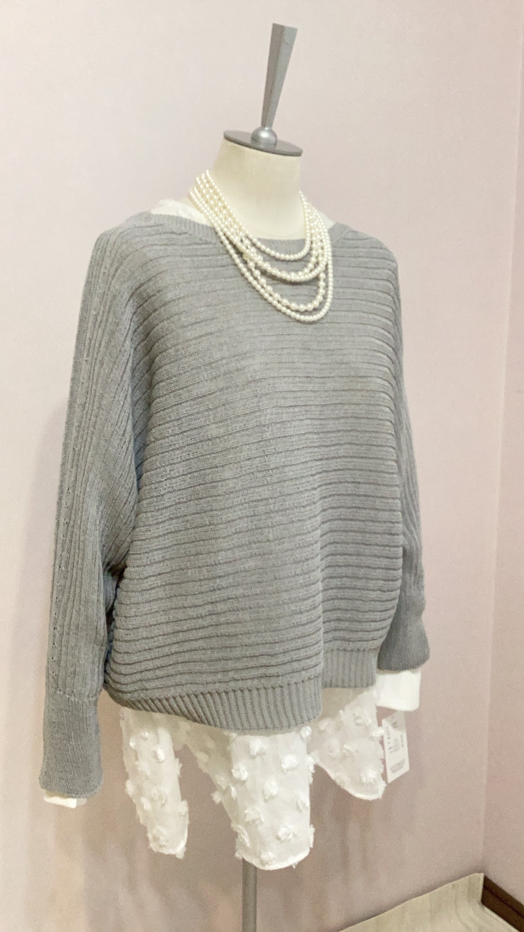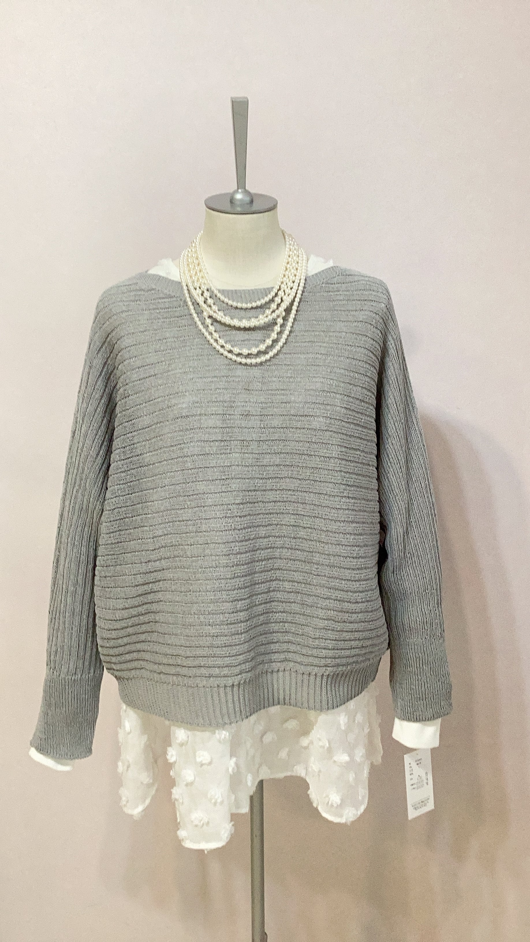QTUME 「Yamagata Knit」 SHION和紙混 ドライタッチ ドルマントップス No.612-25029 アイボリー ベージュ グレー クチューム