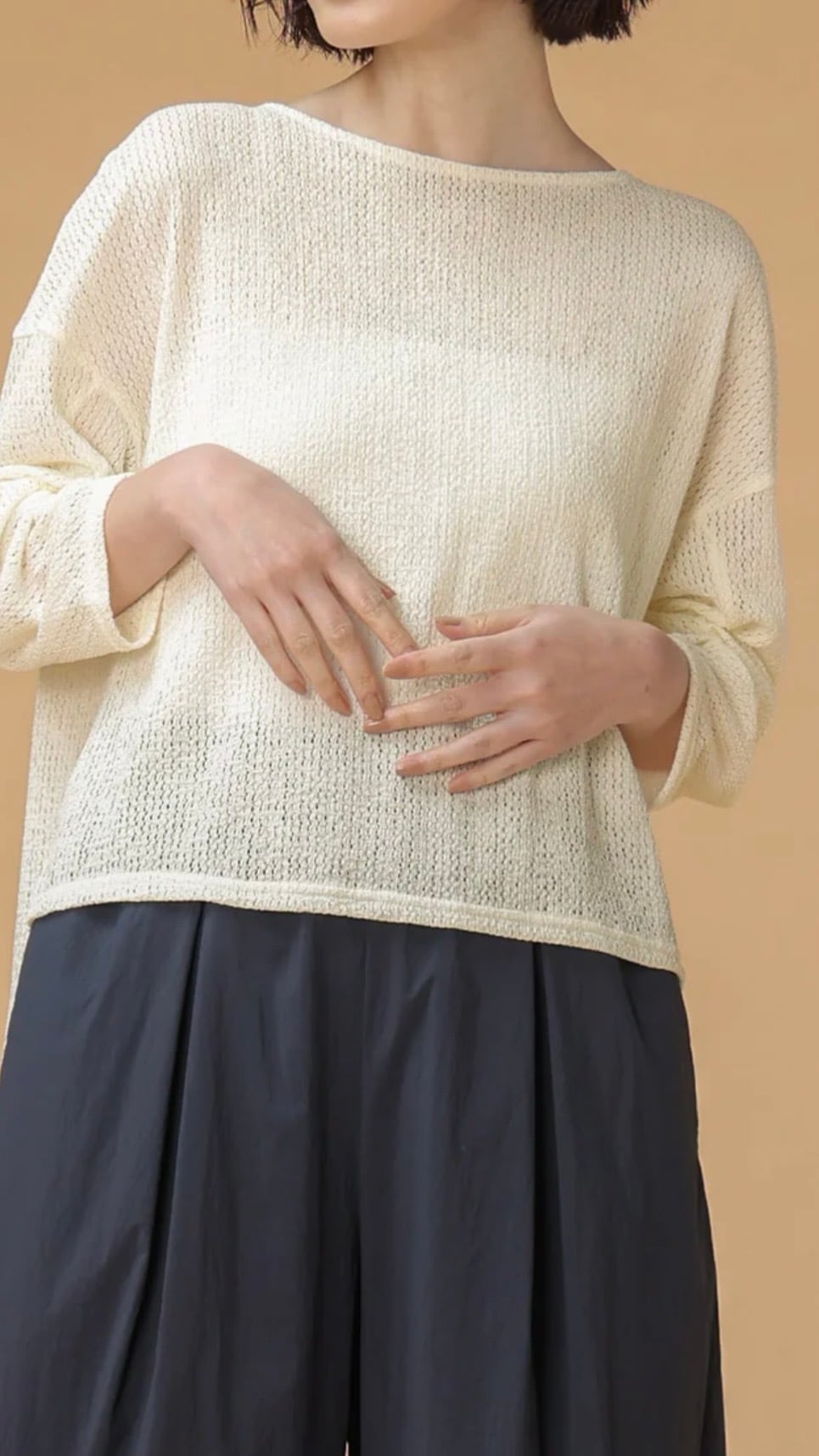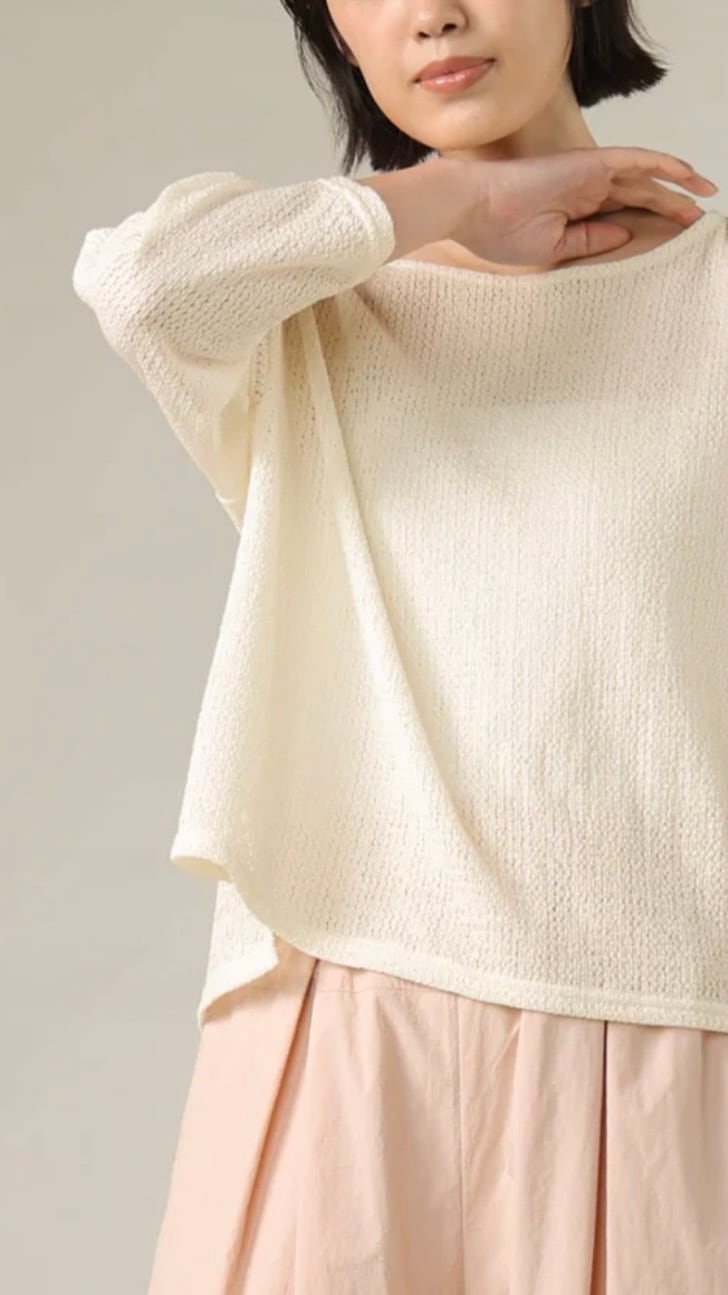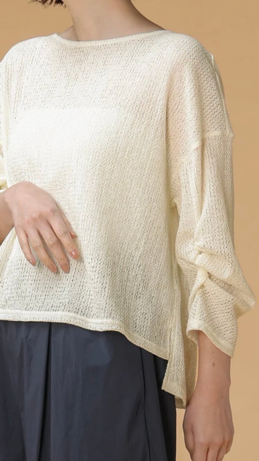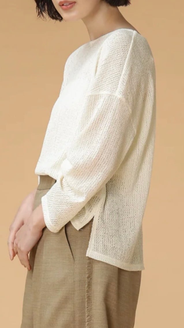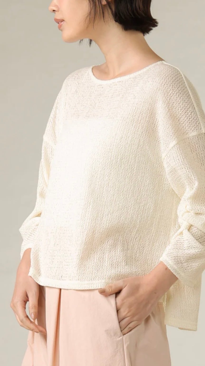 繊細な透け感が魅力のシアーレース素材を使用したプルオーバー。軽やかで柔らかな風合いが、春夏のスタイリングに抜け感をプラスしてくれる一枚です。