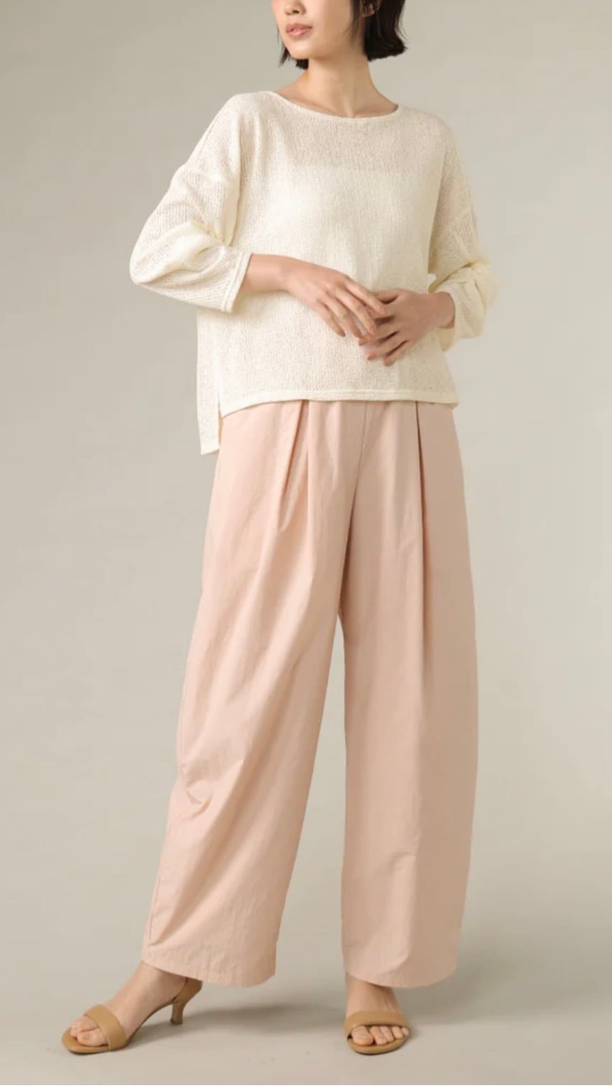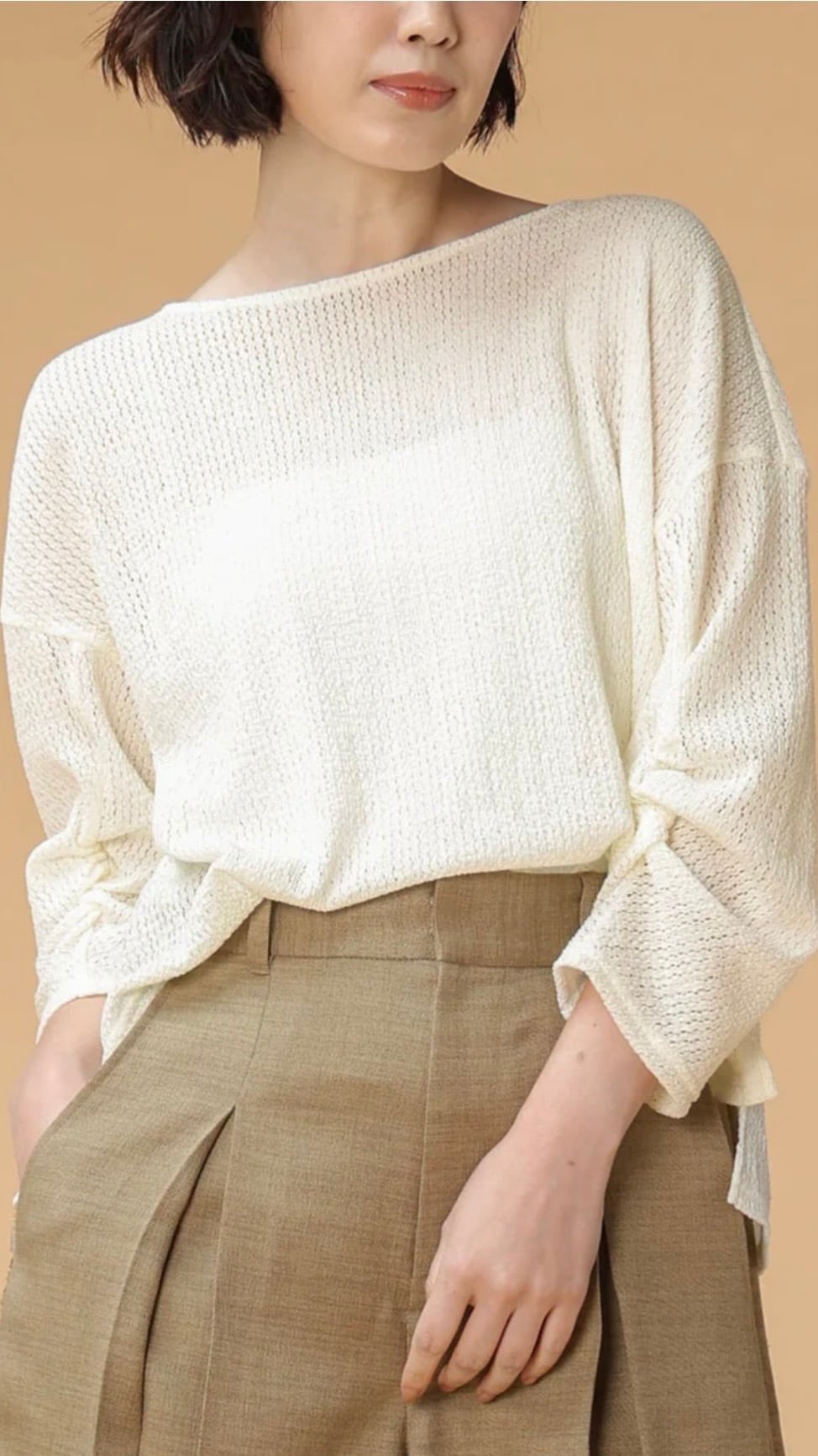 程よくゆとりのあるシルエットでリラックス感がありながら、コンパクトすぎないバランスで様々なボトムと合わせやすいデザイン。裾のギャザー風デザインがアクセントになり、シンプルながらも表情のある仕上がりになっています。