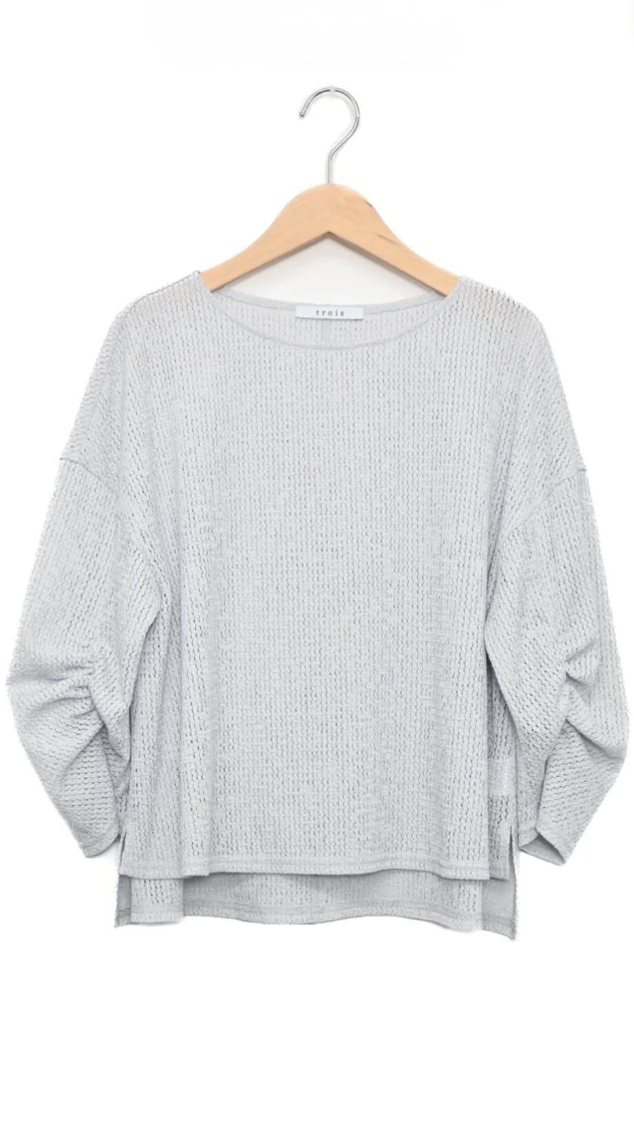 trois チャームシアーレース プルオーバー T261-82050 ホワイト ライトグレー トロワ Mサイズ