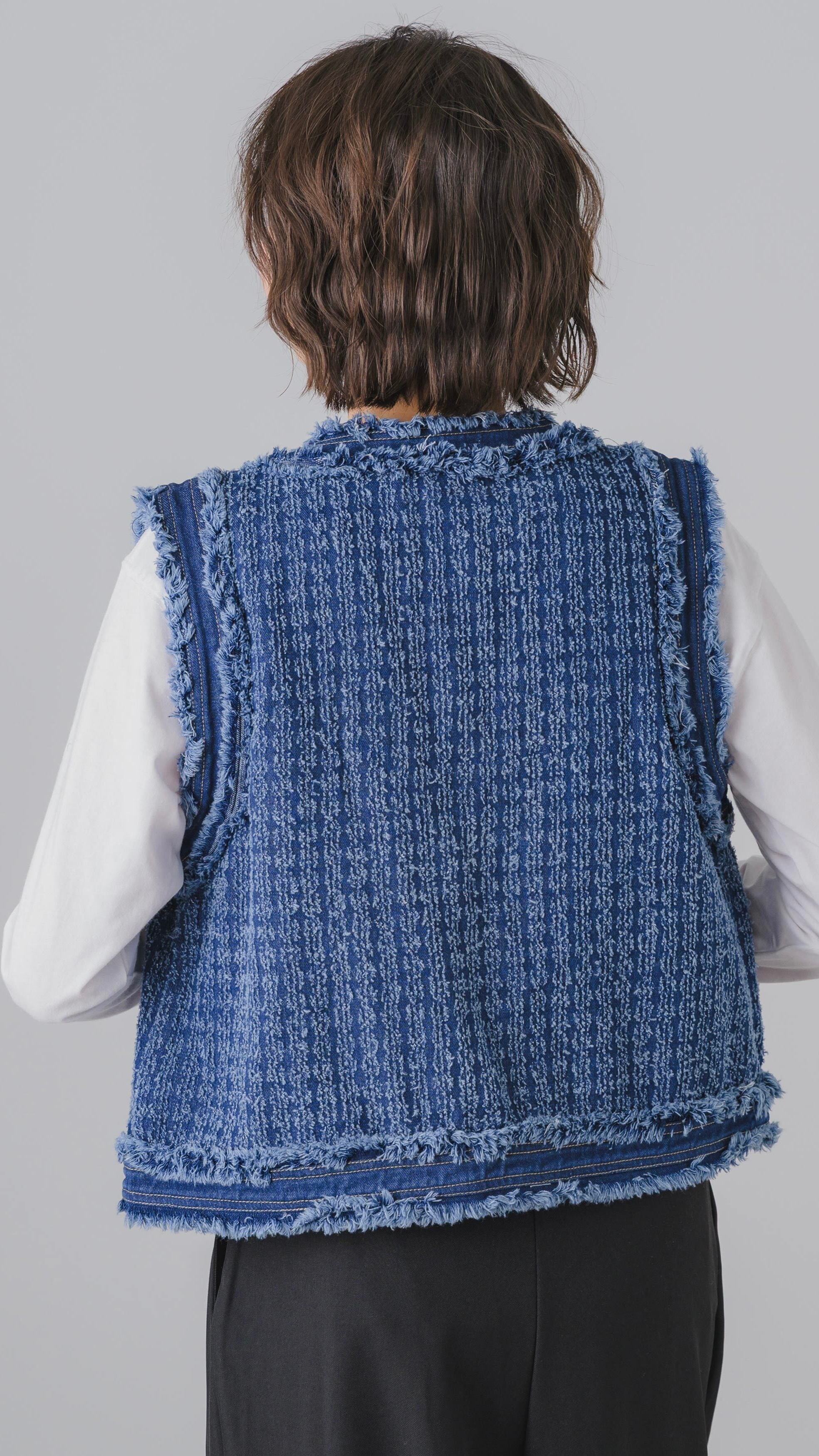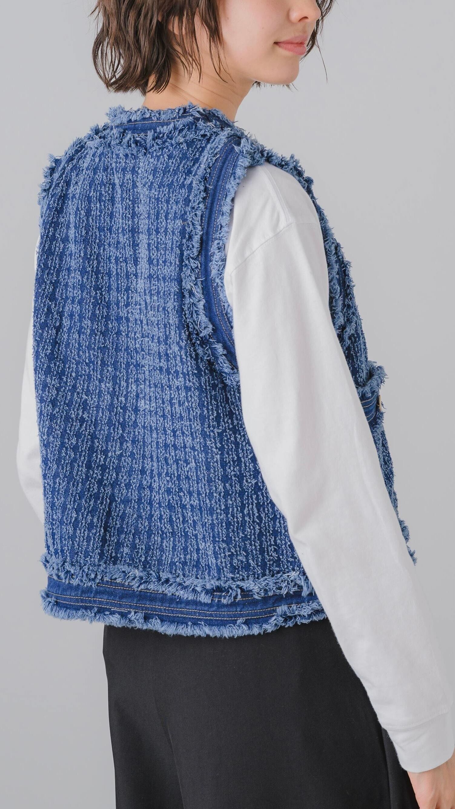 ツイードとデニムを融合させた新しいスタイルが魅力。