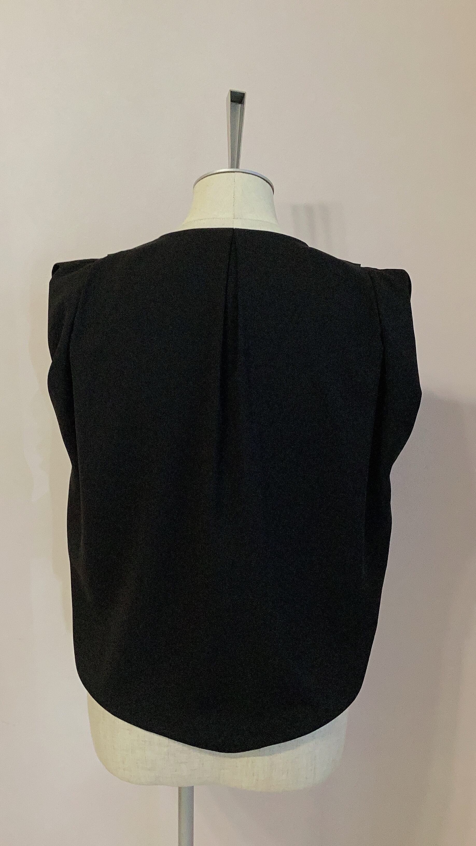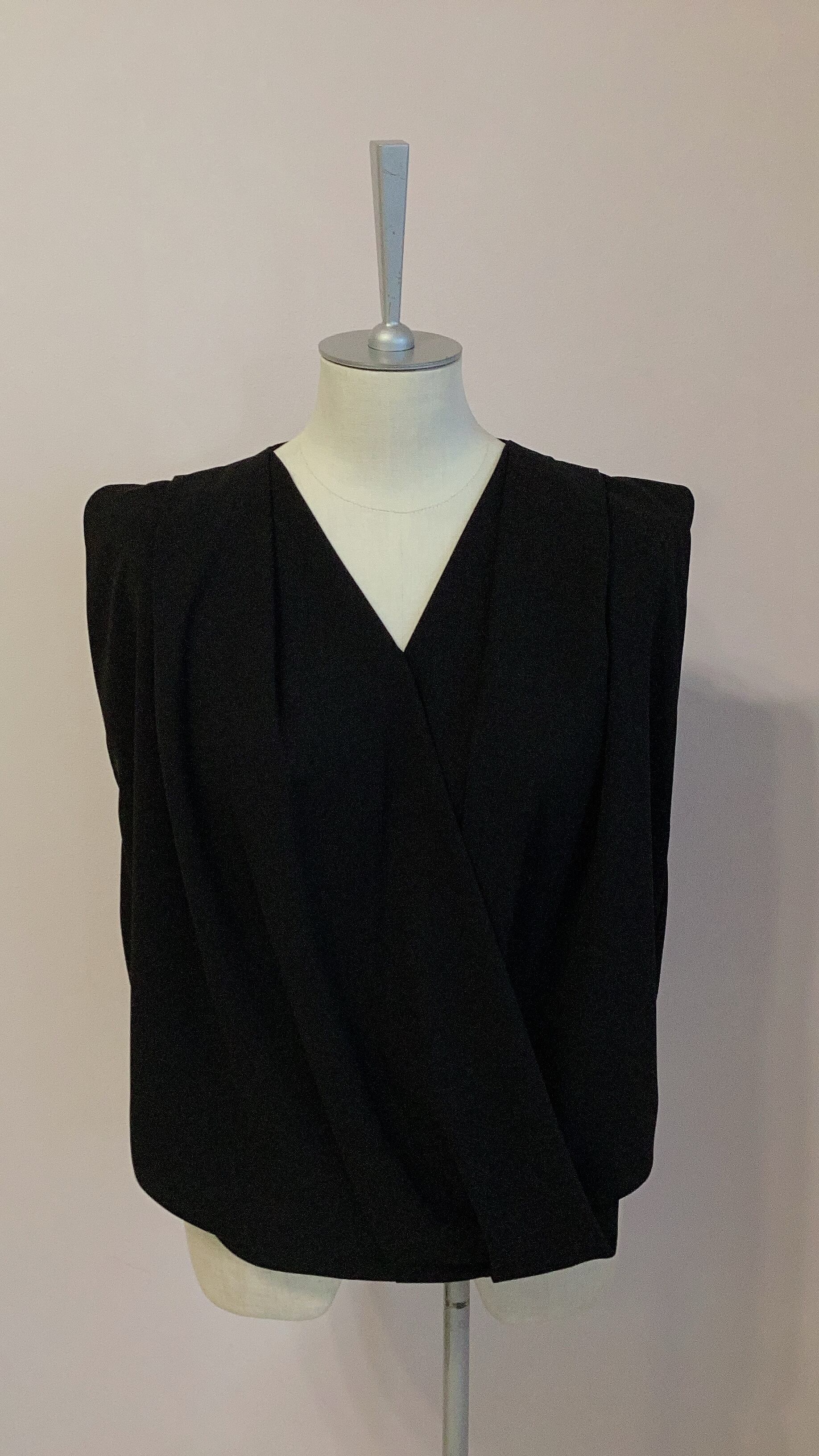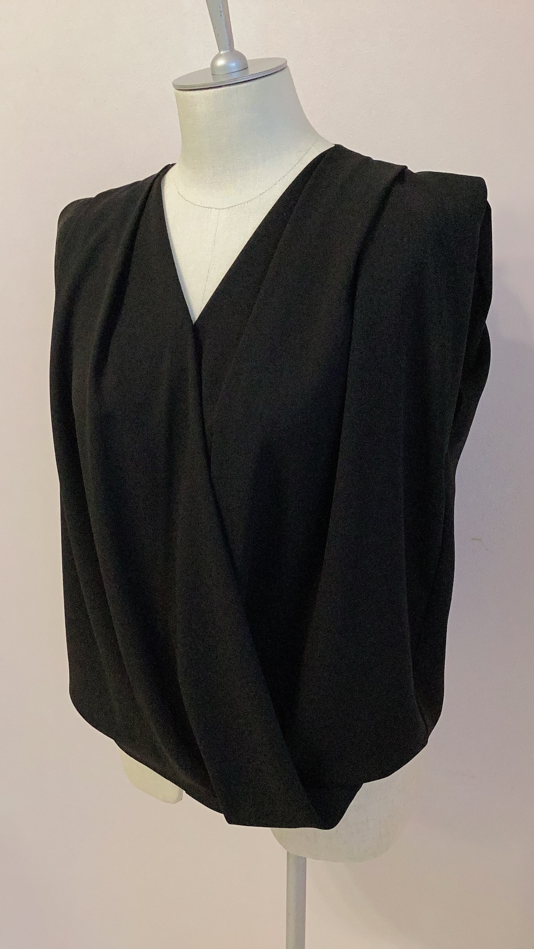 フロントのたっぷりドレープがエレガントなノースリーブのブラウス。ショート丈でバランスが良く、フレアスカートやテーパードパンツと合わせてフェミニンな印象に。
