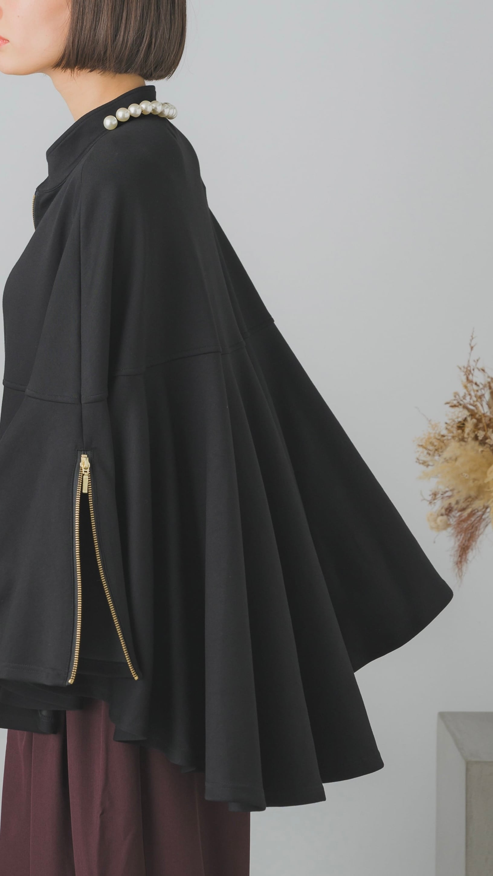 ゆったりとしたシルエットに、適度なフレア感があり、体型カバーもバッチリです。ポンチョのデザインなので、着るだけでおしゃれに決まります。