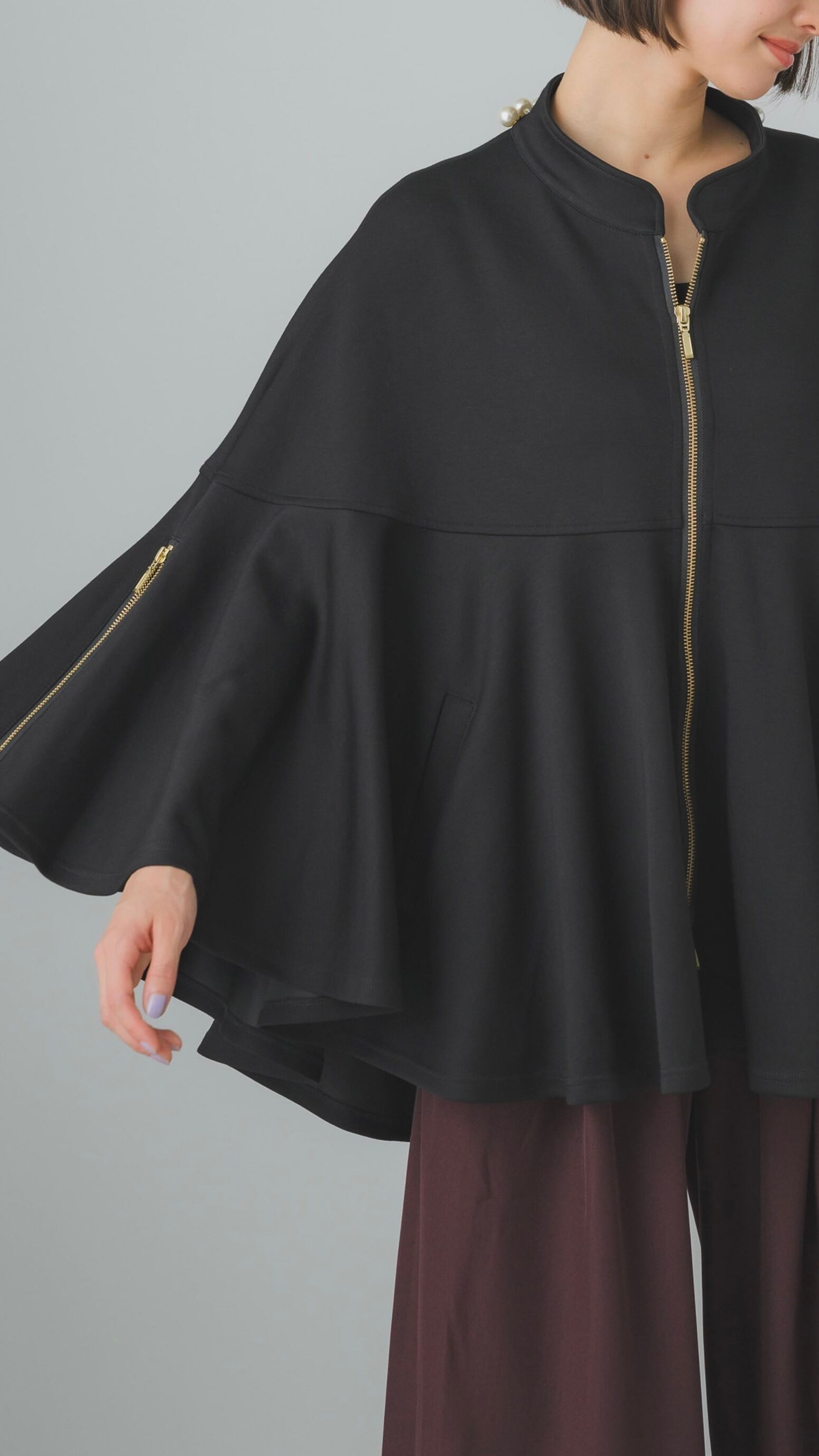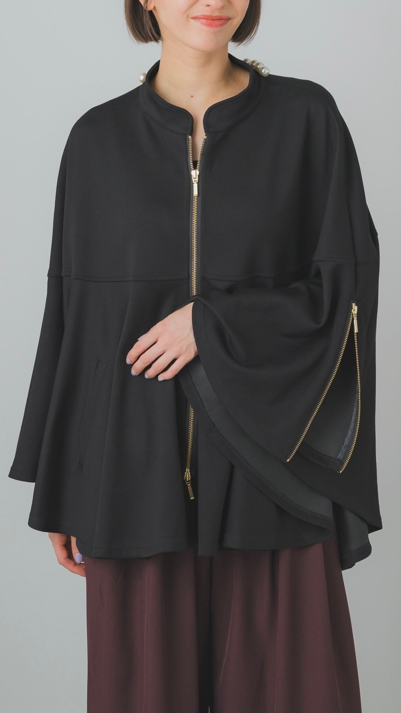 ボンディング素材を使用したフレアポンチョです。