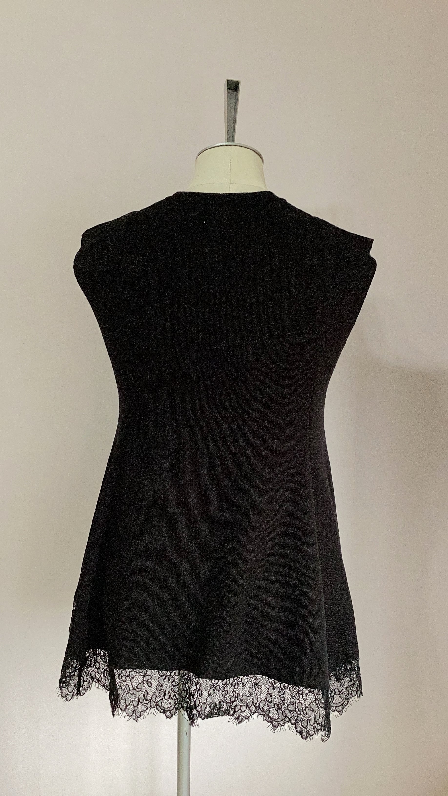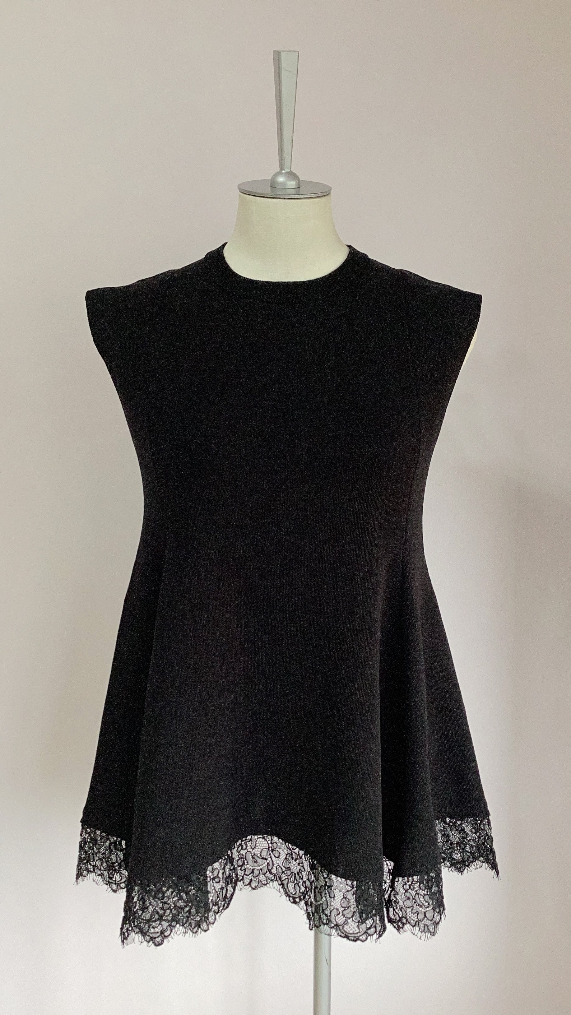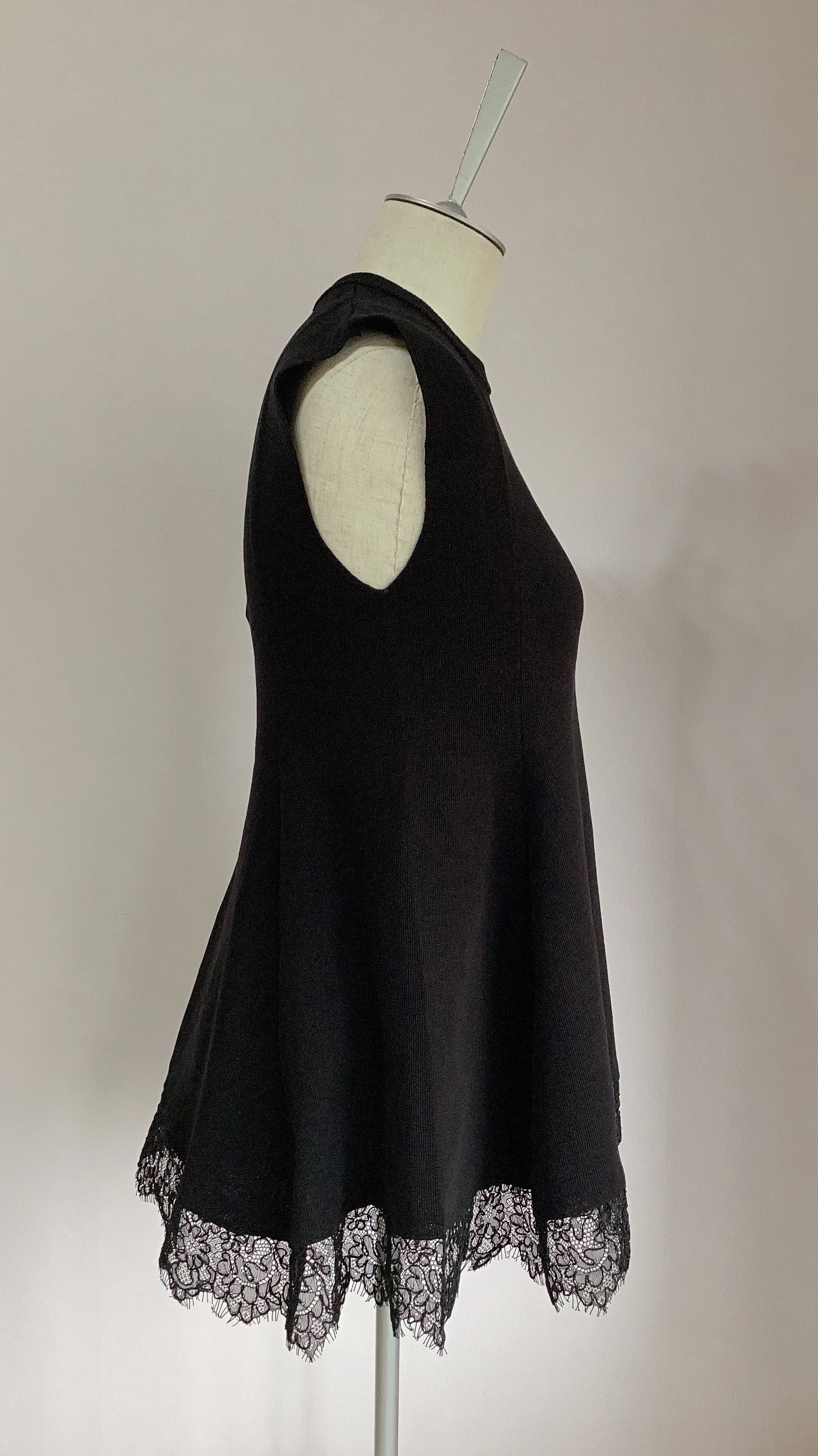 長め丈の上品なヘムレースでインナーとしても活躍しますが、ニットなので1枚でも様になります。
