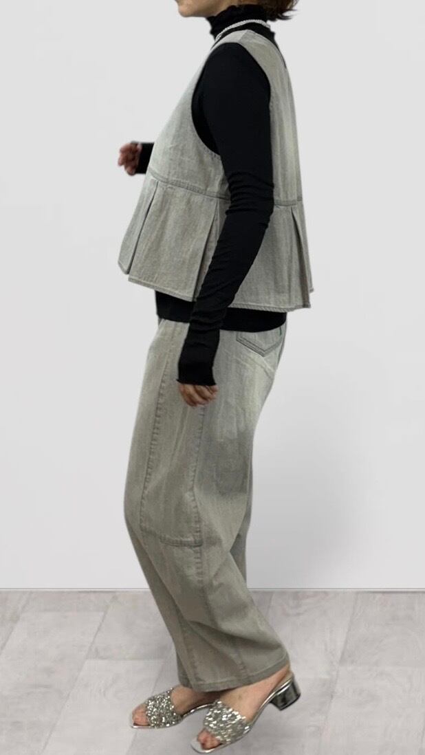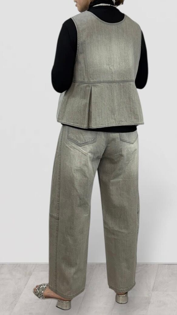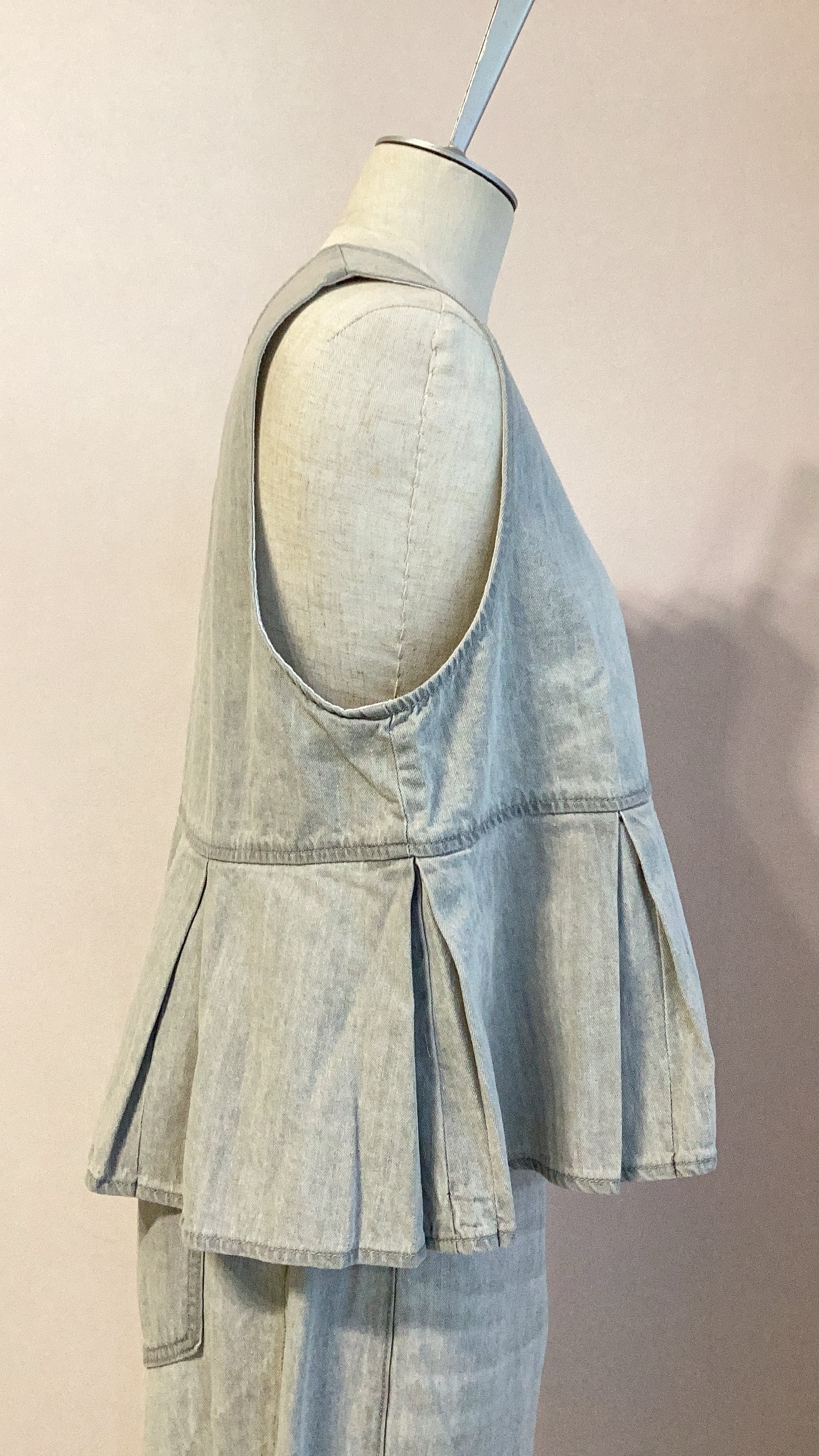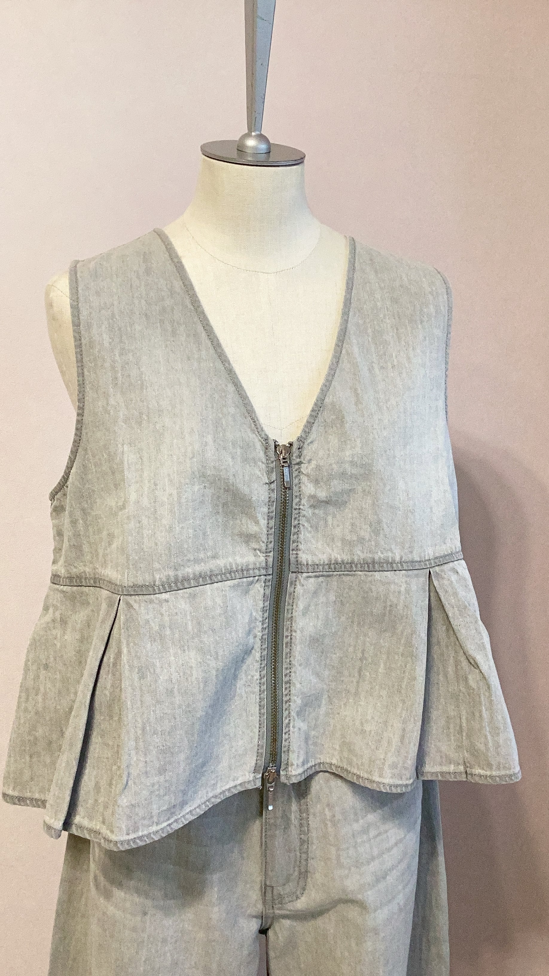 QTUME 8オンスデニム タックペプラムベスト No.612-24001 グレー クチューム