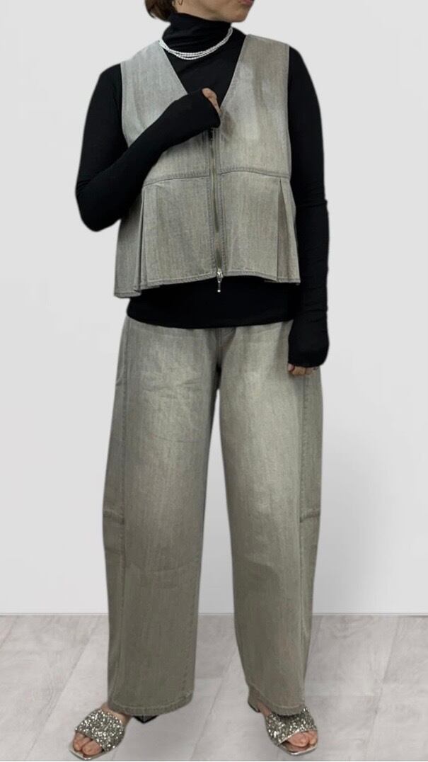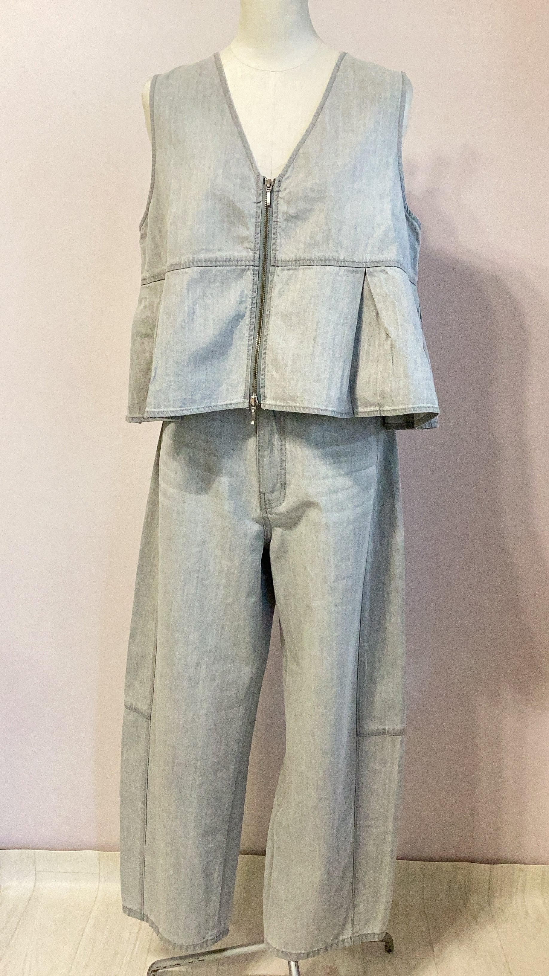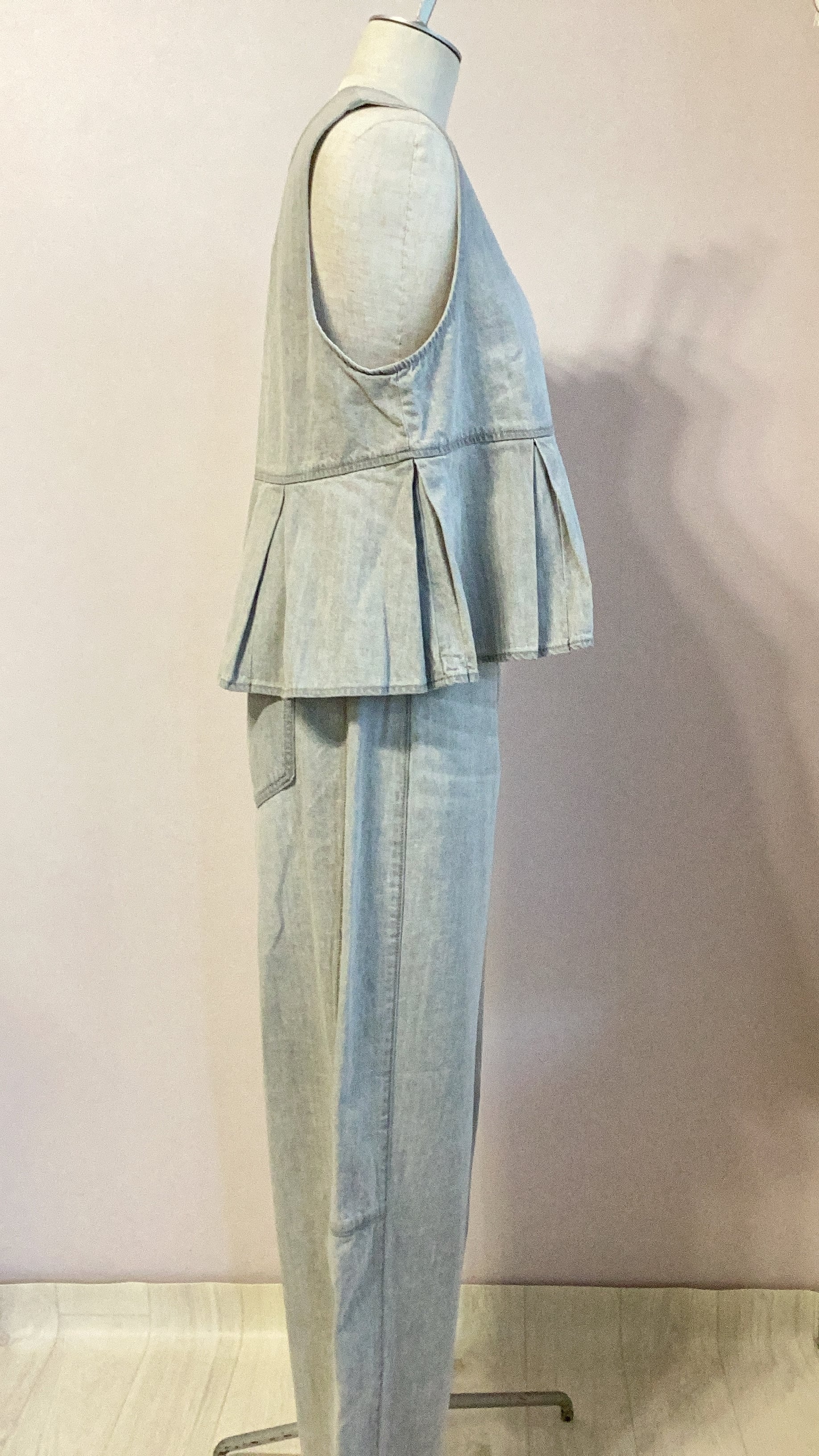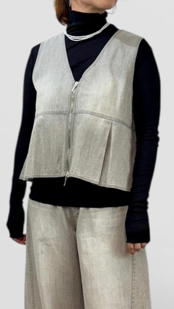 QTUME 8オンスデニム タックペプラムベスト No.612-24001 グレー クチューム