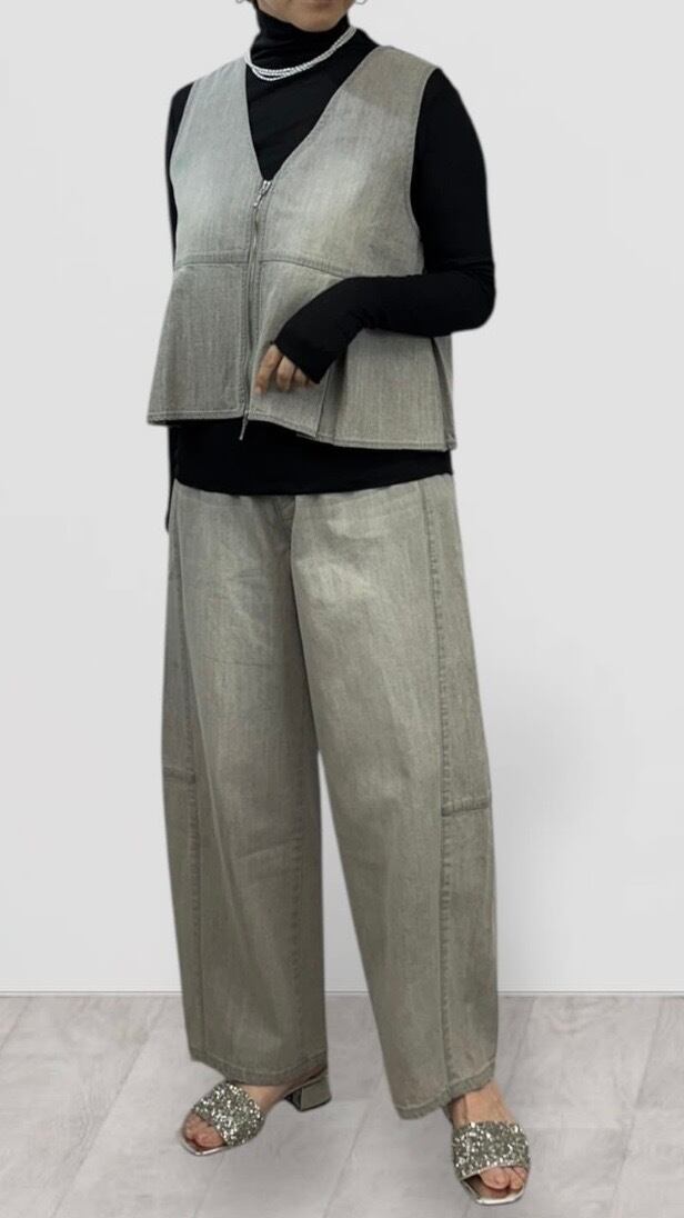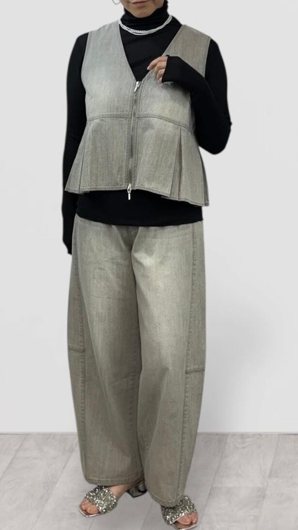 QTUME 8オンスデニム バレルレックパンツ No.612-26002 グレー クチューム