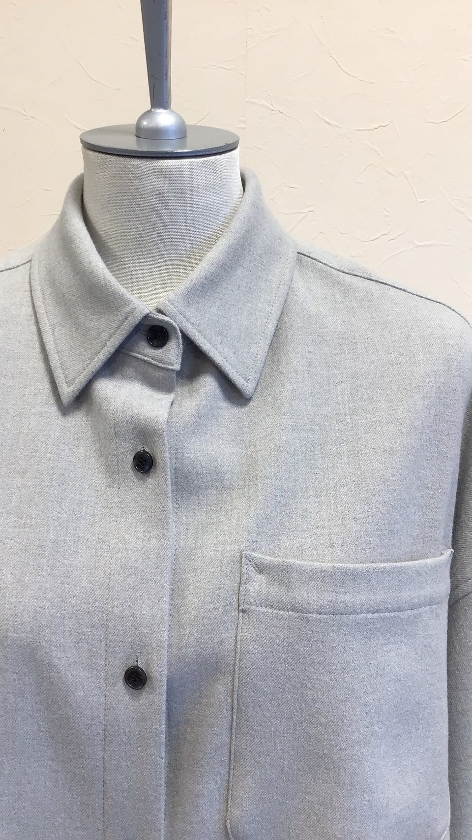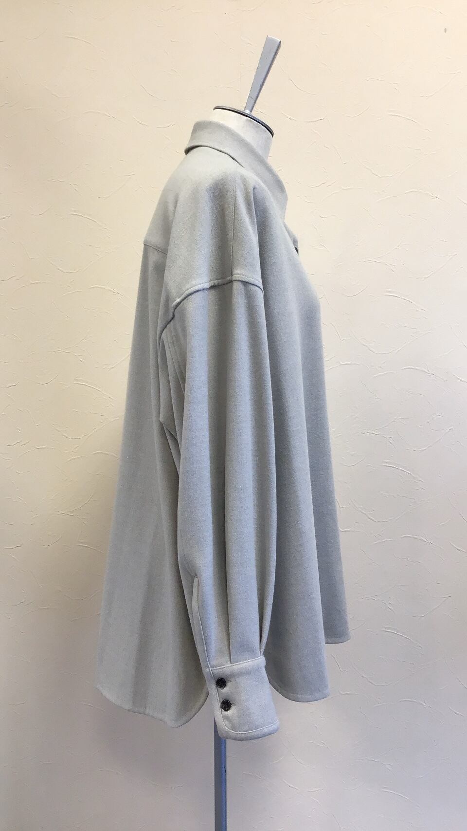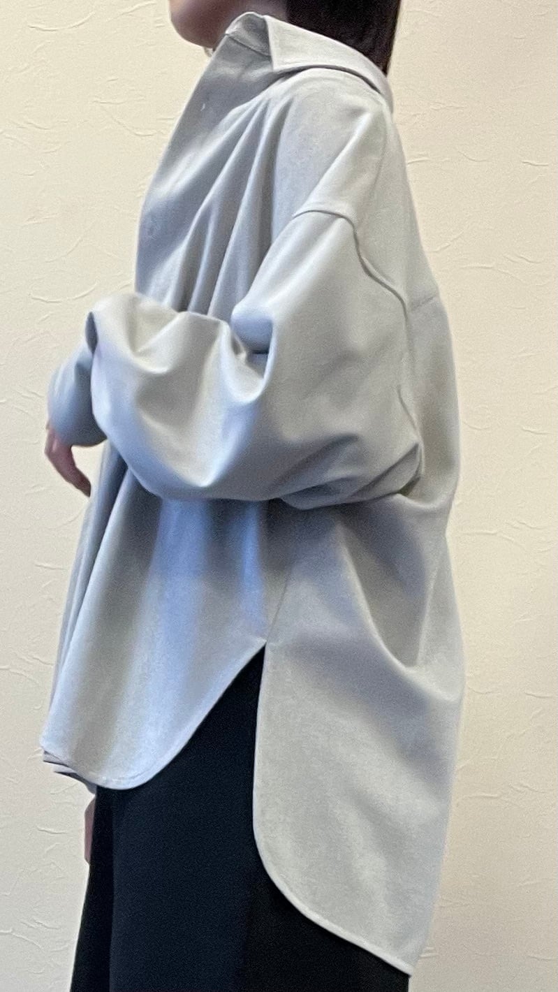 秋冬素材のオーバーサイズシャツ。厚手で温かみがありますが、レーヨン混で柔らかい生地感です。